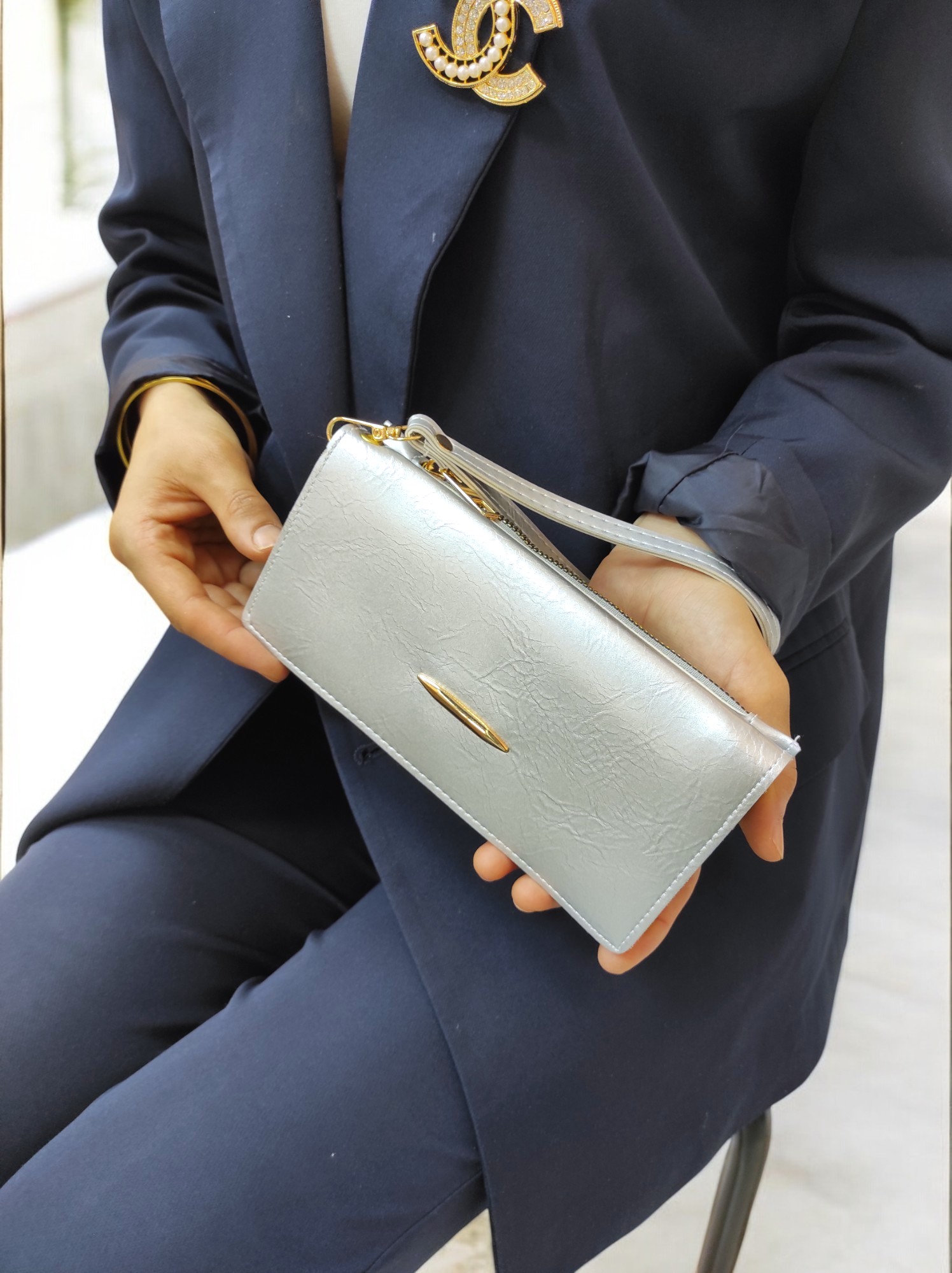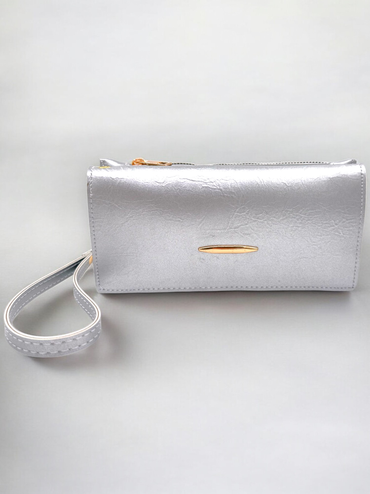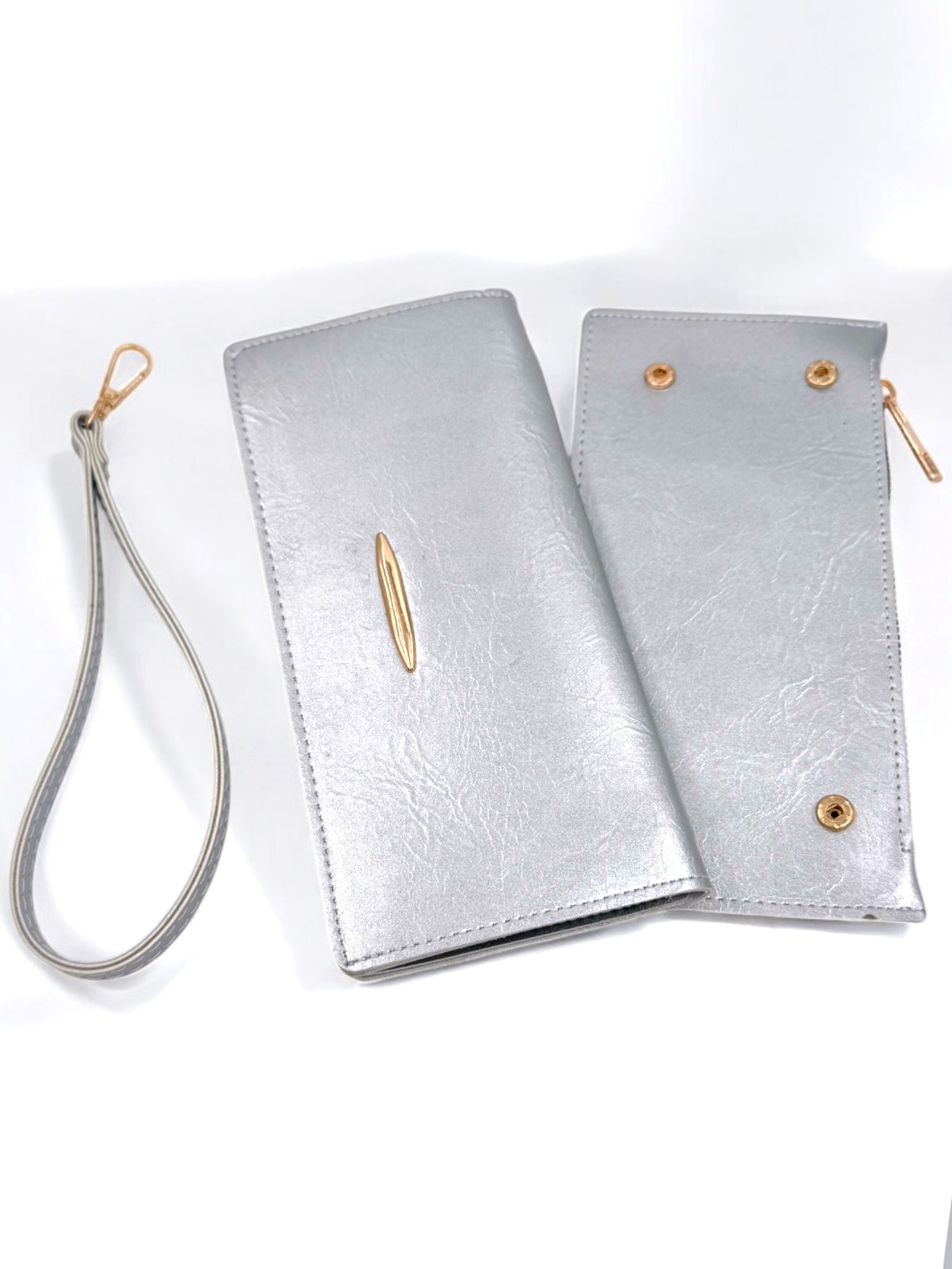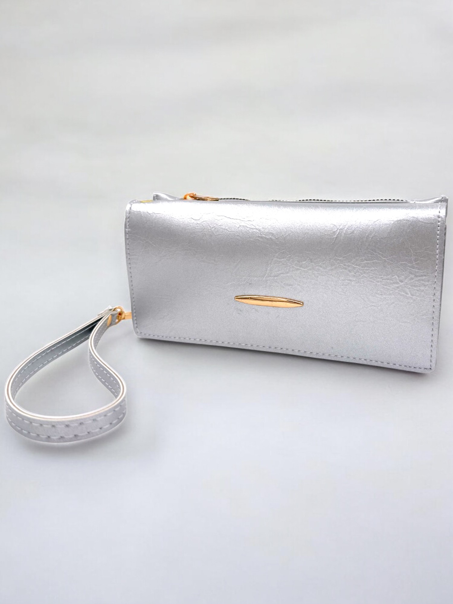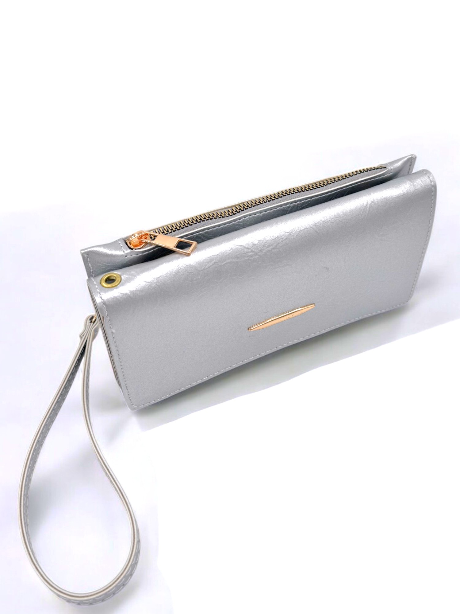 Elden Askılı Fermuar Detaylı Kadın Gri Cüzdan El Çantası