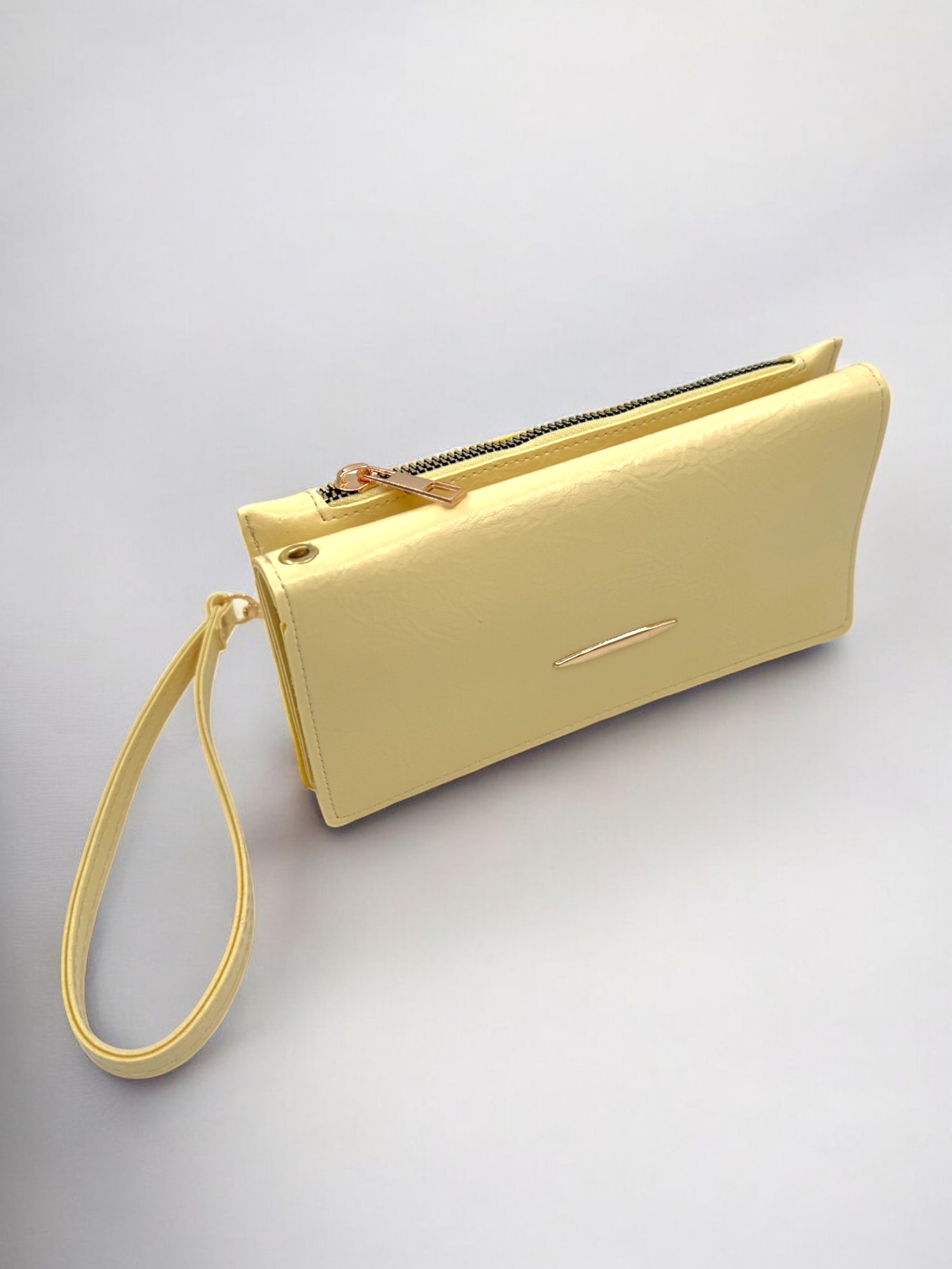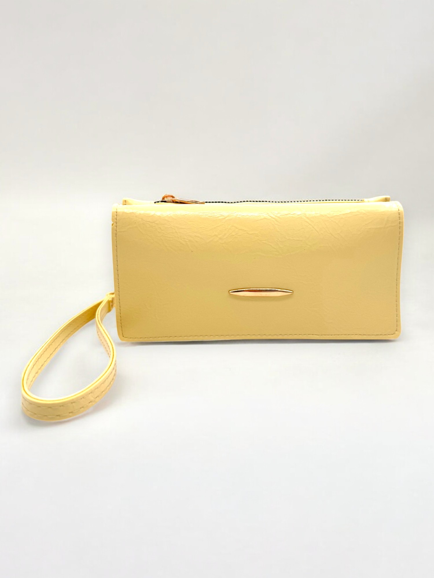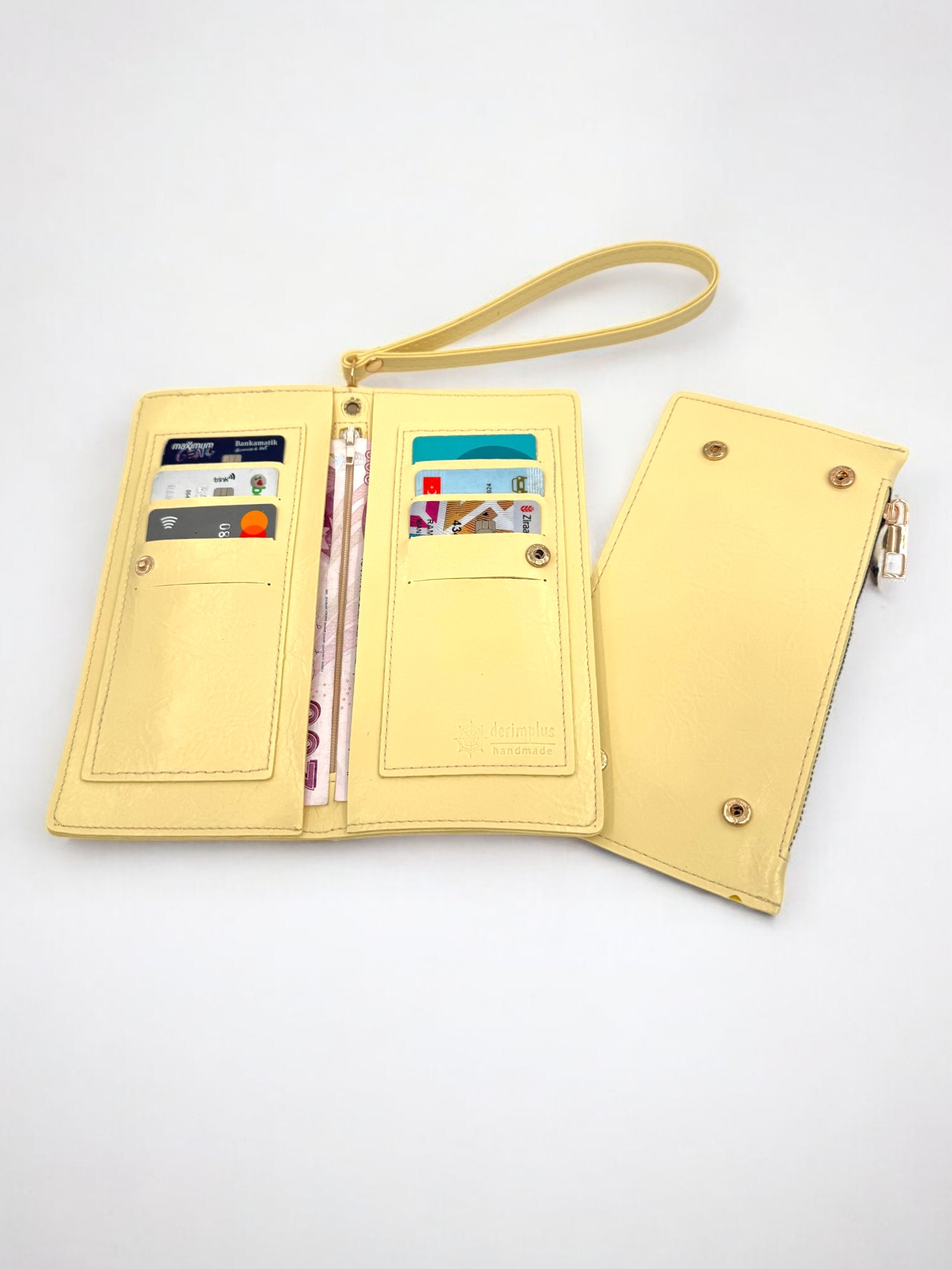 Elden Askılı Fermuar Detaylı Kadın Sarı Cüzdan El Çantası