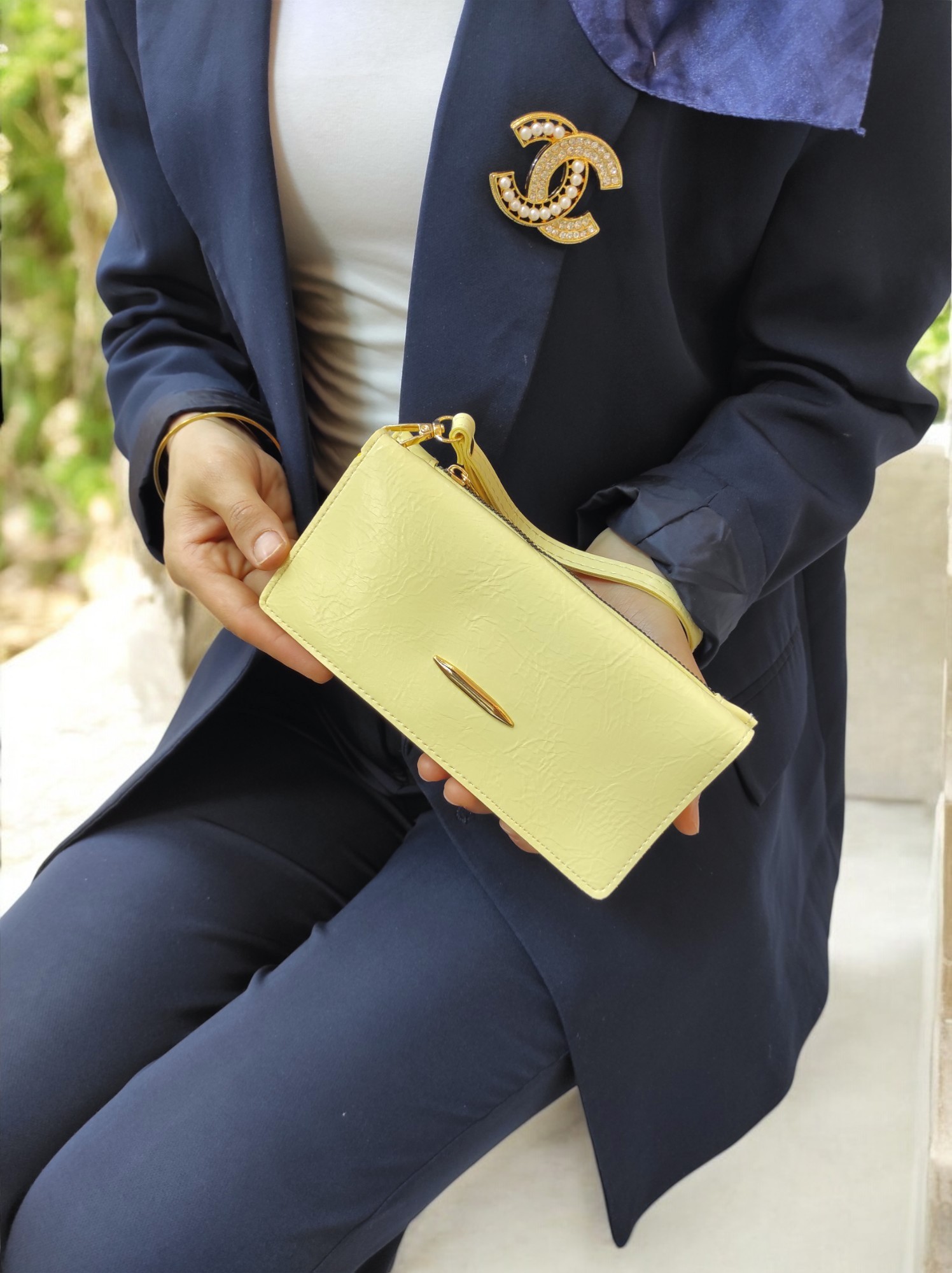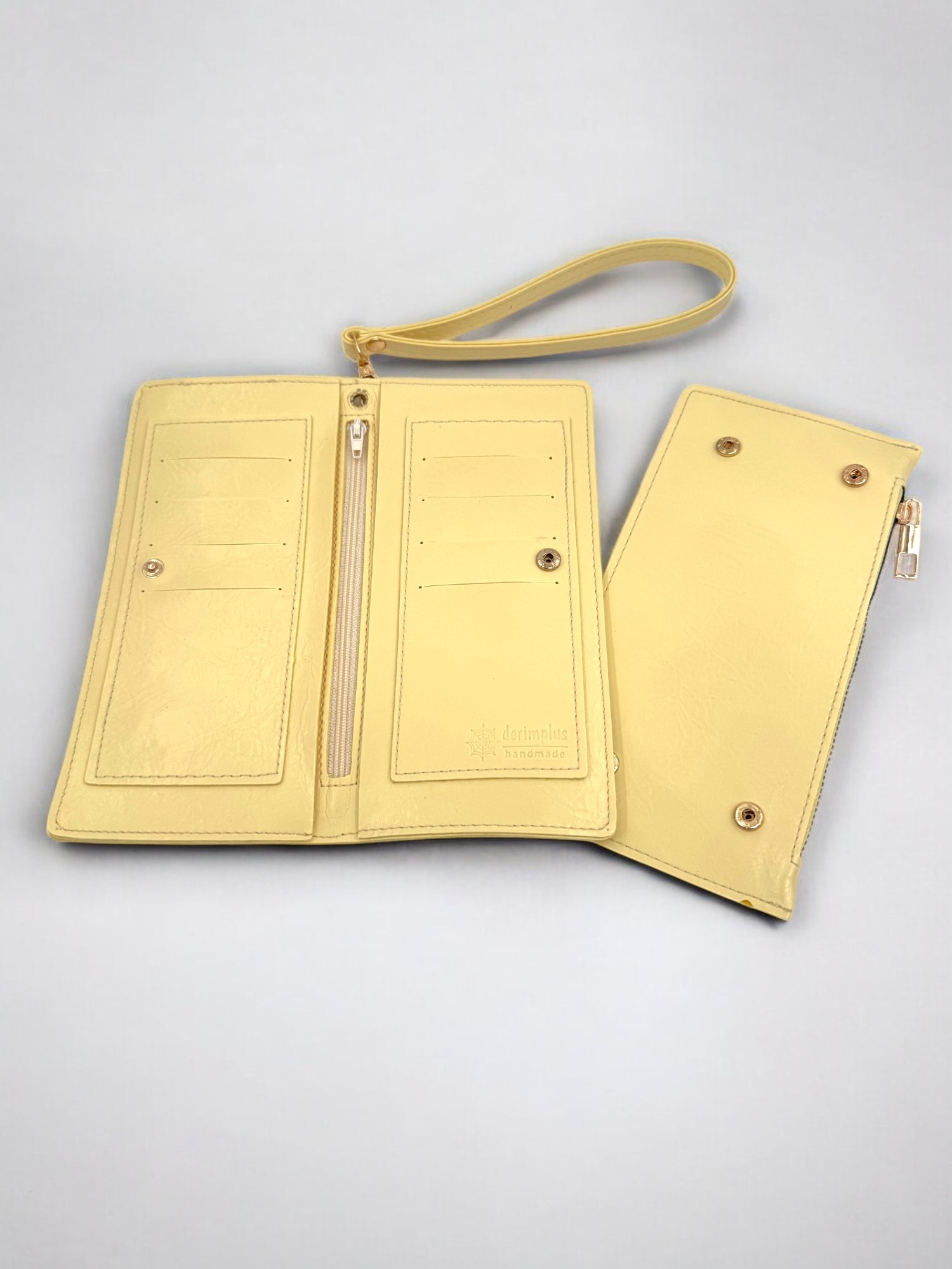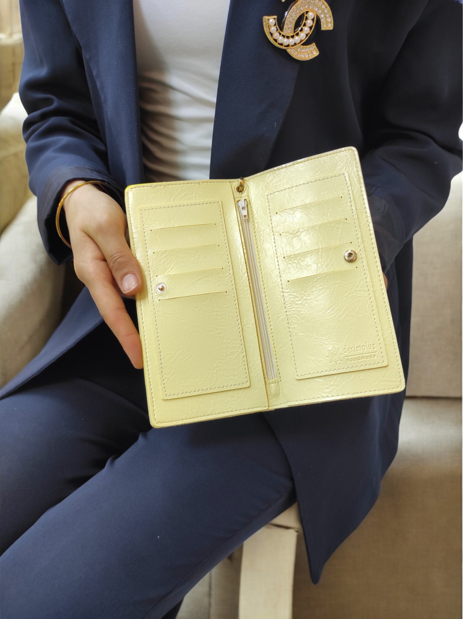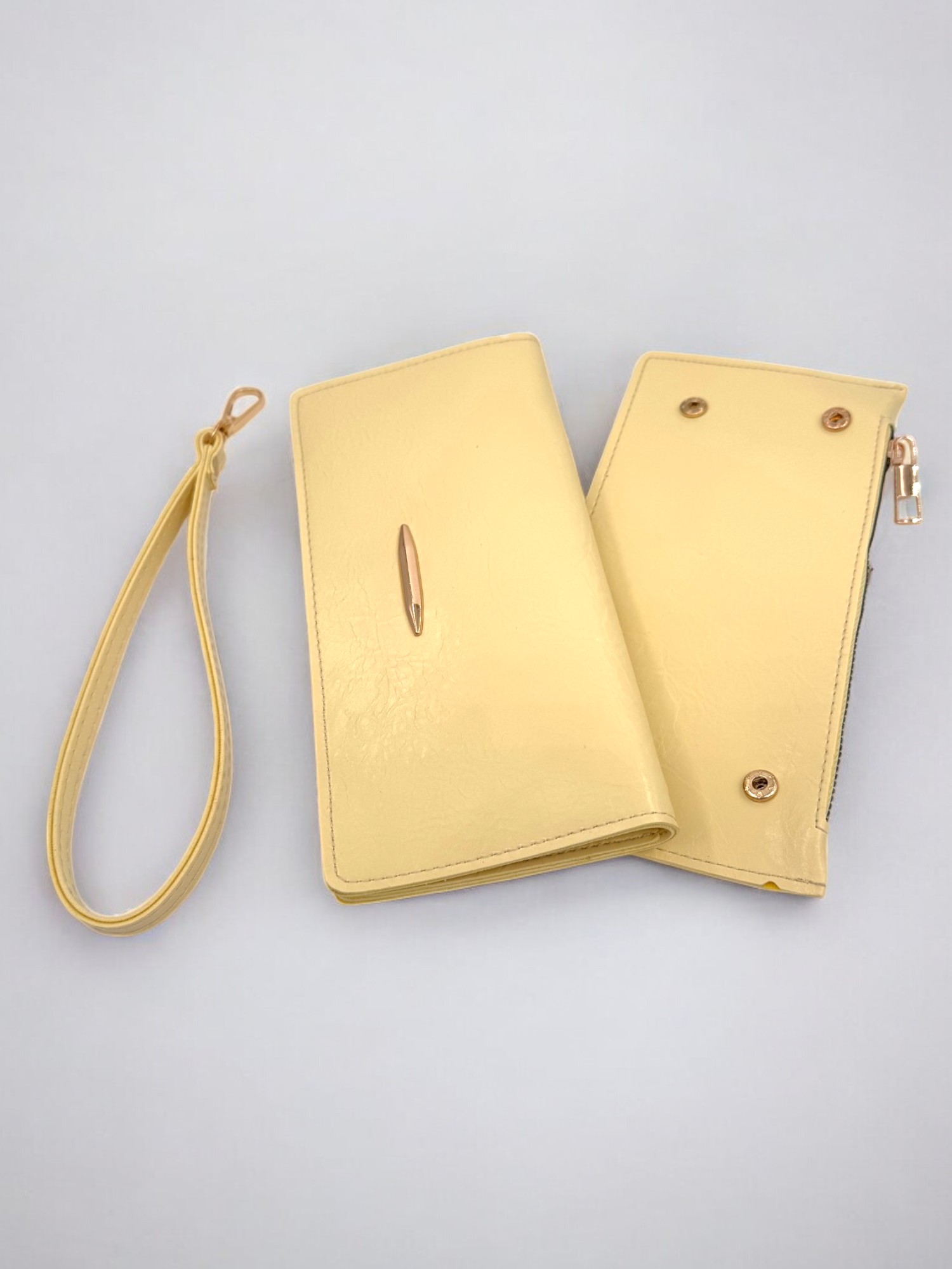 Elden Askılı Fermuar Detaylı Kadın Sarı Cüzdan El Çantası