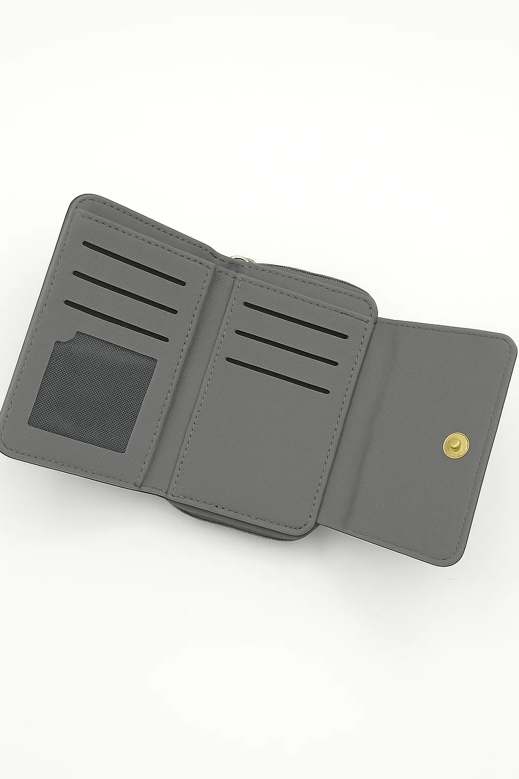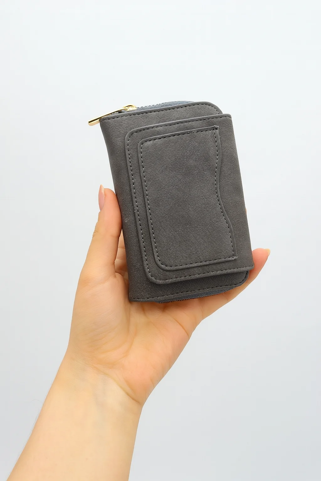 Gri Fermuarlı, Çok Bölmeli, Kartlıklı, Şık ve Kullanışlı Kadın Cüzdan