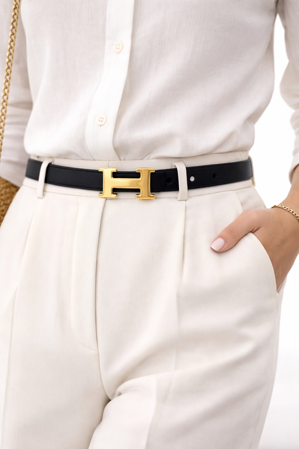 Şıklığı detaylarda arayan kadınlar için tasarlanan H tokalı kadın kemer, modern tasarımıyla her kombine kolayca uyum sağlar. Minimal metal tokası sayesinde sade ama güçlü bir stil sunar.