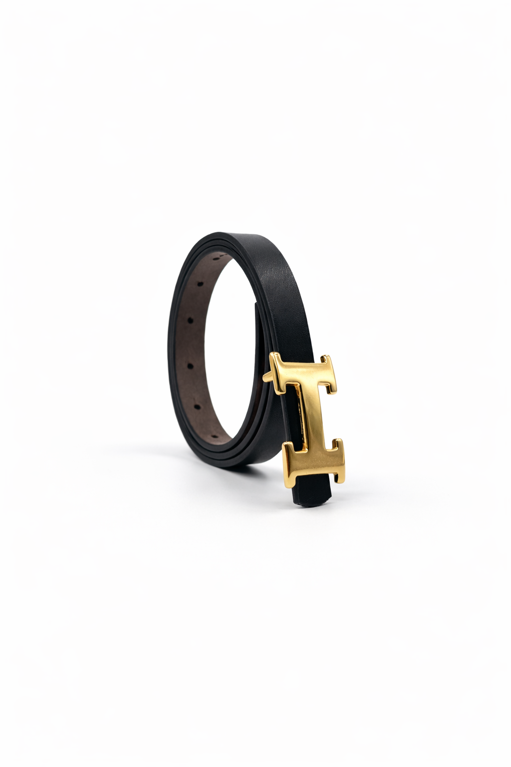 H Gold Tokalı İnce Kadın Siyah Kemer – Şık ve Minimal Günlük Kombin Tamamlayıcı