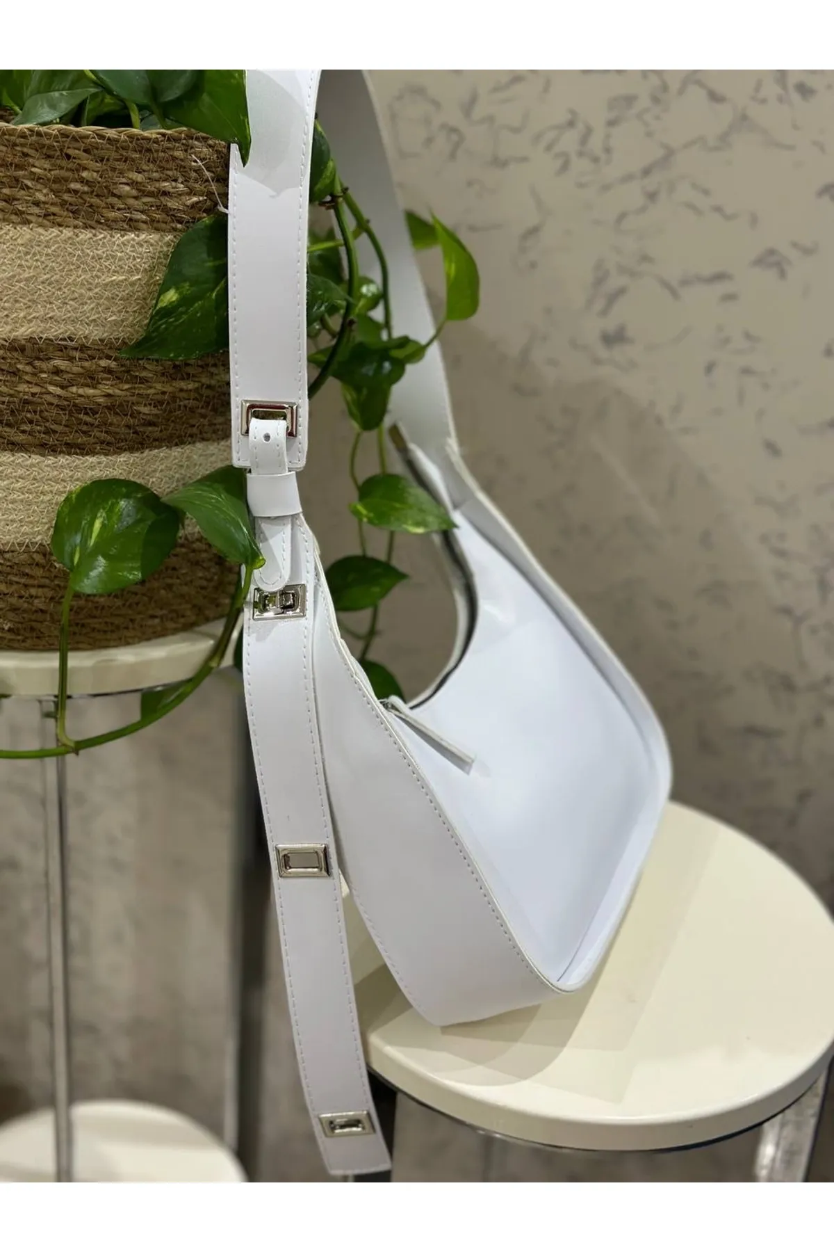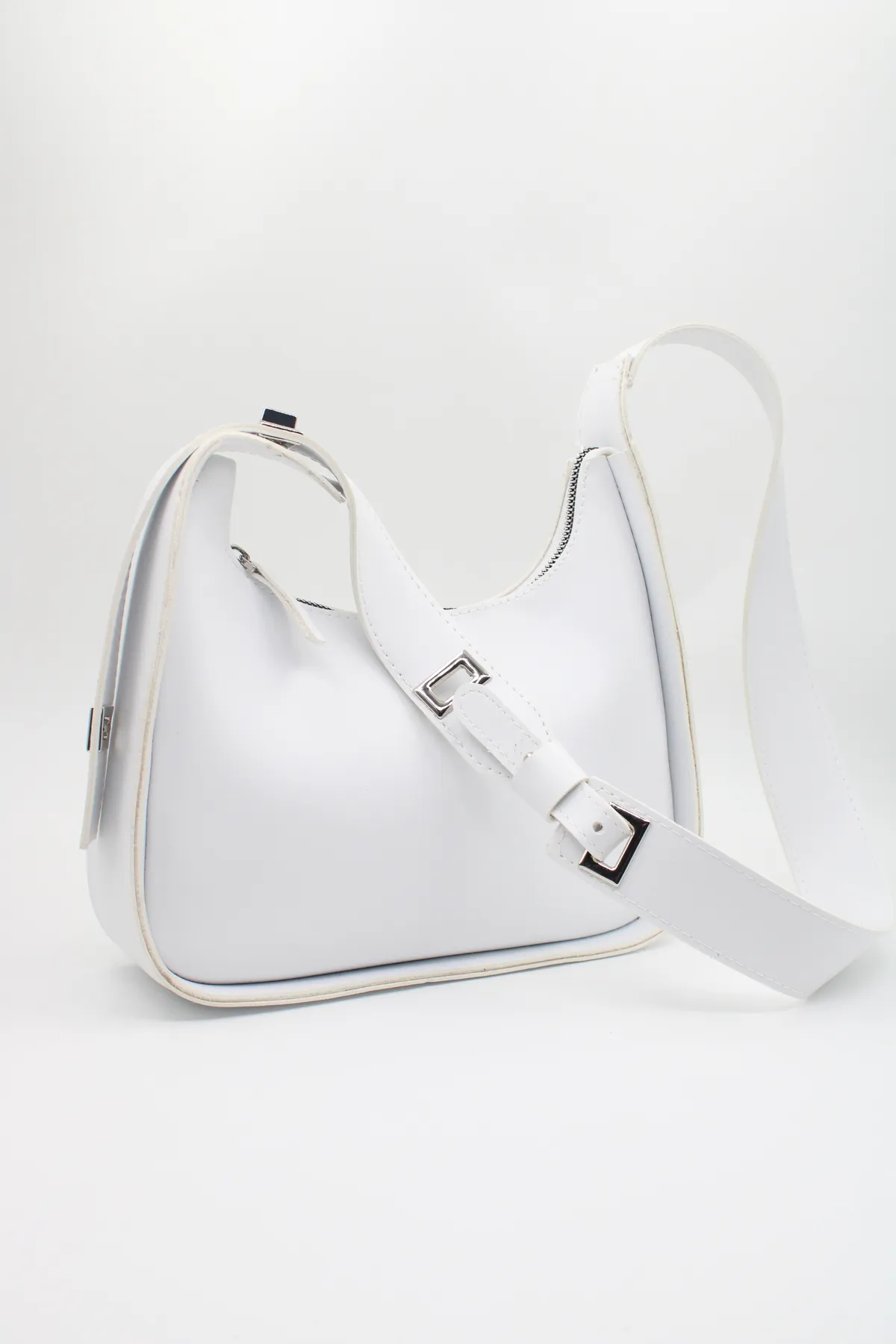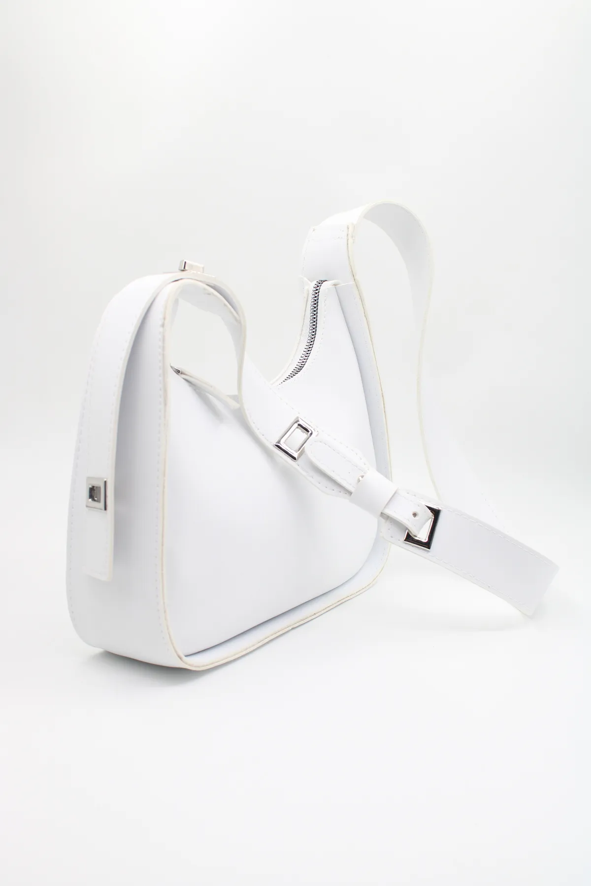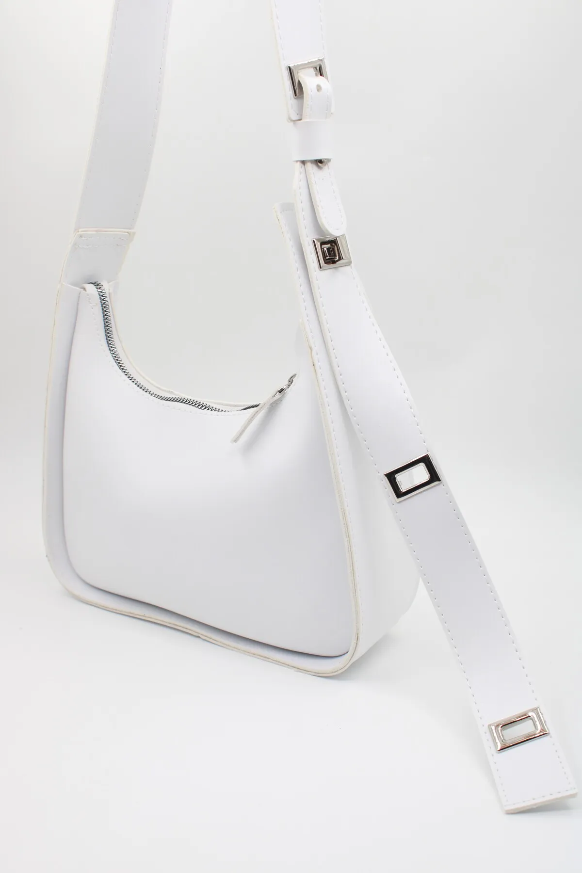 Kadın Baget Uzunluk Ayarlı 4 Kademeli Beyaz Omuz Çantası