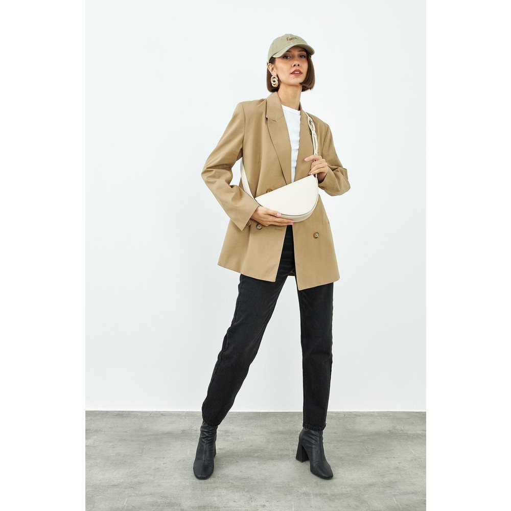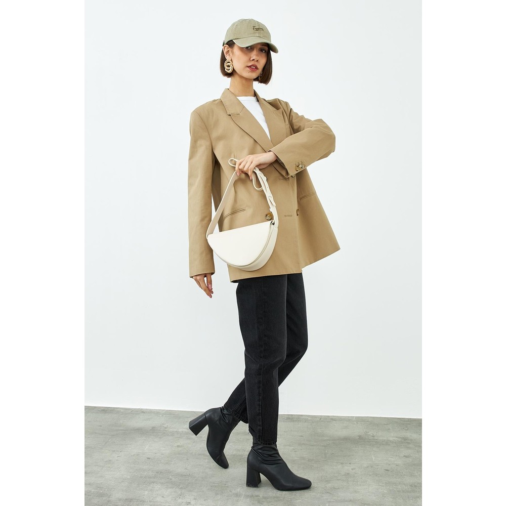 Kadın Çapraz Askılı Asimetrik Krem Çanta