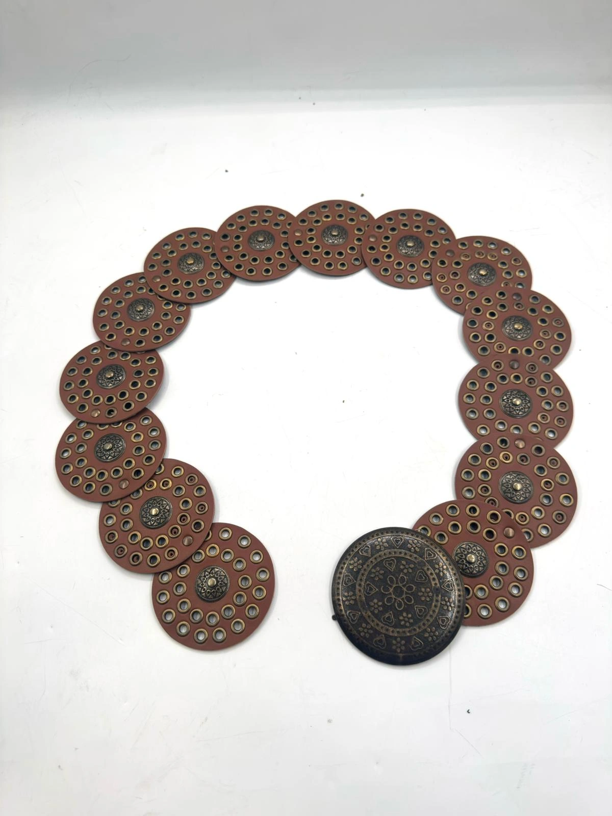 Bohem tarzın en güçlü tamamlayıcısı! Etnik işlemeli yuvarlak metal detaylarıyla tasarlanan bu özel kemer; elbise, abiye, tunik, etnik kombinler ve festival stilinde dikkat çeken güçlü bir aksesuar sunar.Vintage dokusu, el işçiliği hissi veren metal plakaları ve ayarlanabilir yapısıyla hem günlük hem özel gün kombinlerinde benzersiz bir görünüm sağlar.