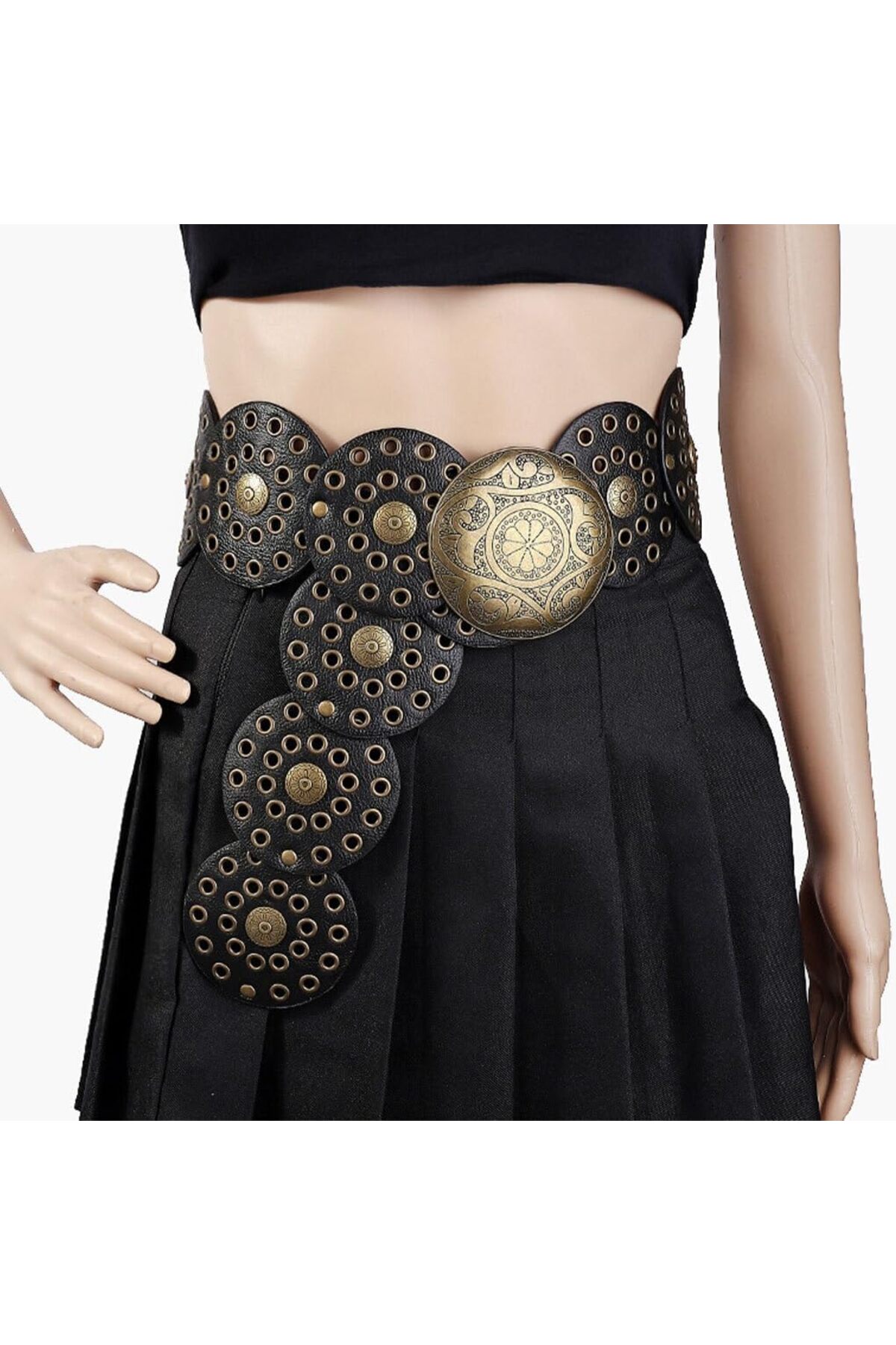Kadın Etnik Desenli Metal Tokalı Geniş Siyah Kemer – Bohem Vintage , Elbise & Abiye Uyumlu, Ayarlanabilir