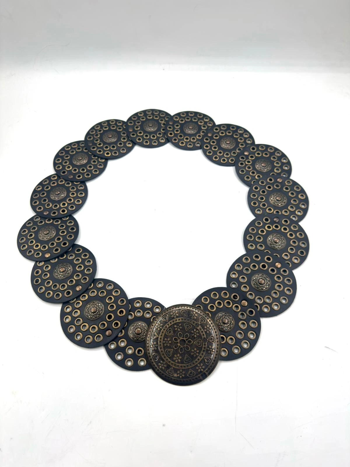 Bohem tarzın en güçlü tamamlayıcısı! Etnik işlemeli yuvarlak metal detaylarıyla tasarlanan bu özel kemer; elbise, abiye, tunik, etnik kombinler ve festival stilinde dikkat çeken güçlü bir aksesuar sunar.Vintage dokusu, el işçiliği hissi veren metal plakaları ve ayarlanabilir yapısıyla hem günlük hem özel gün kombinlerinde benzersiz bir görünüm sağlar.