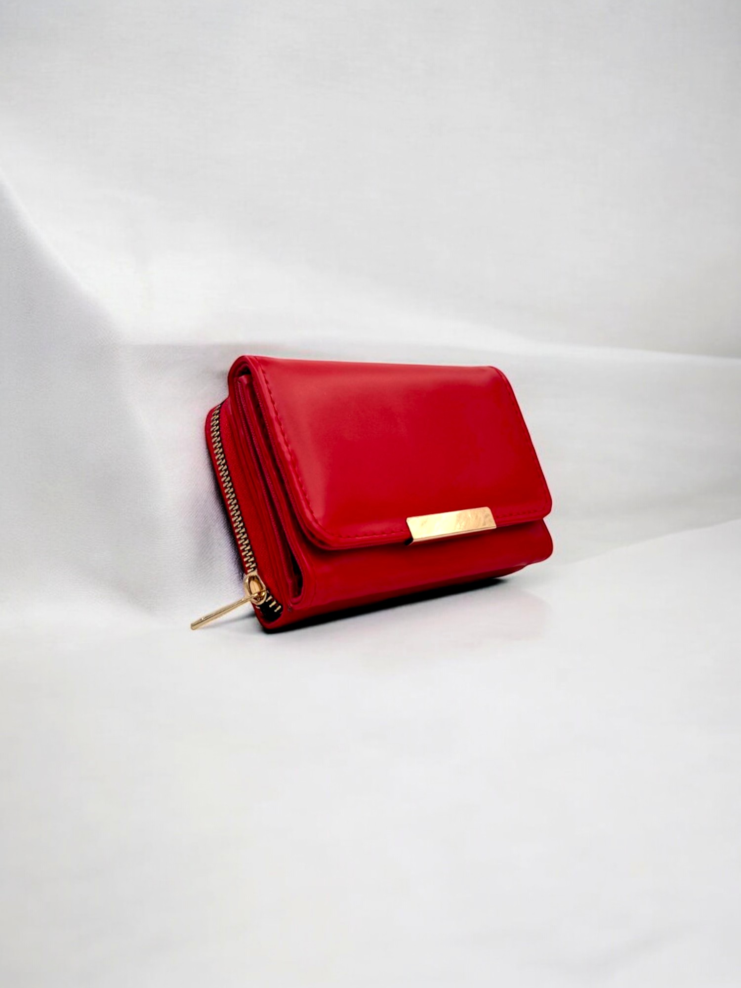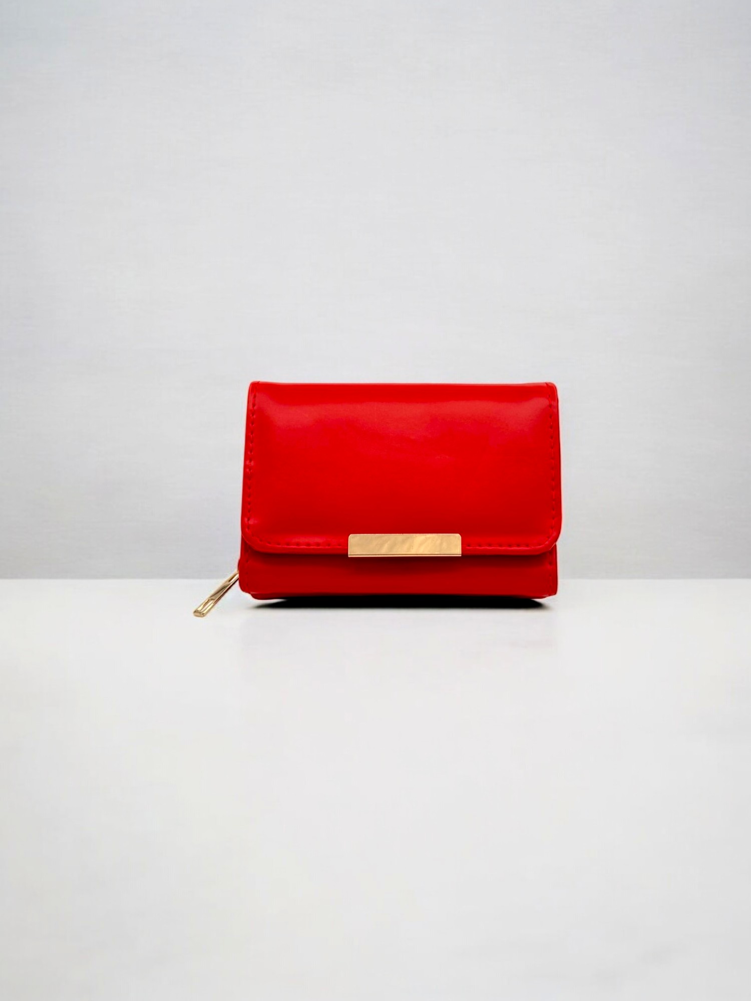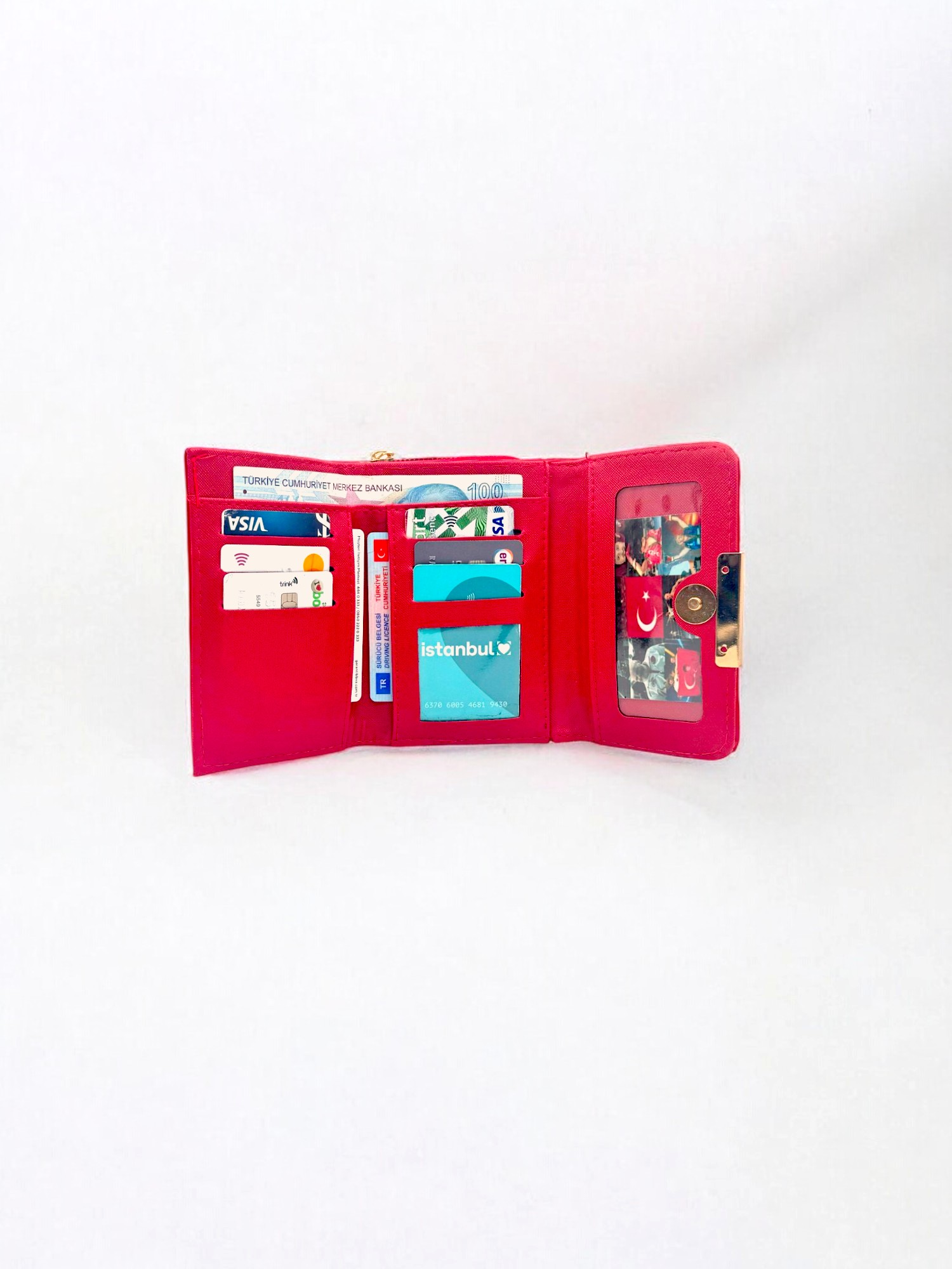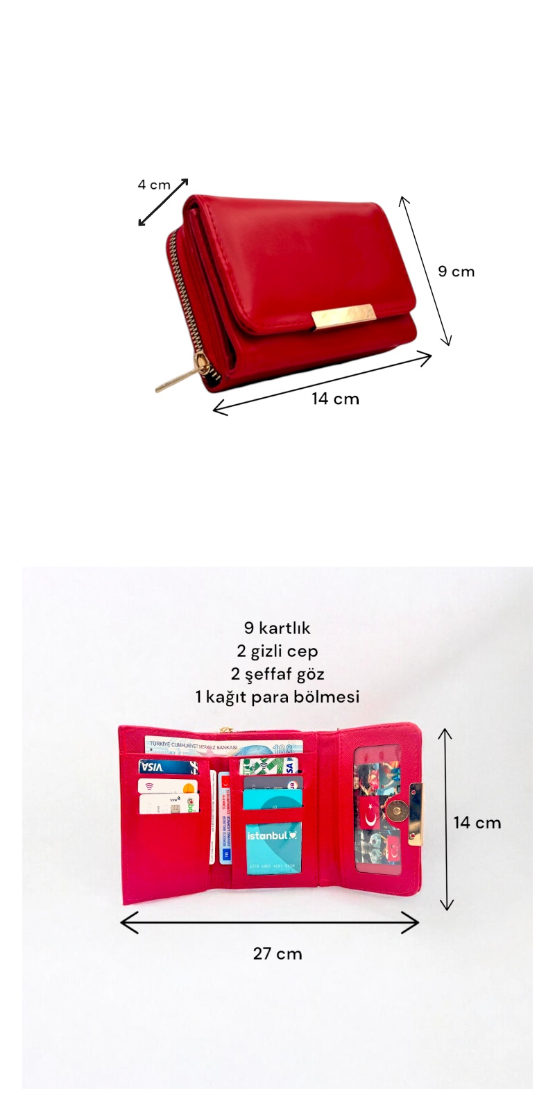 Kadın Fermuarlı Bozuk Para Bölmeli Kapaklı Kırmızı Cüzdan