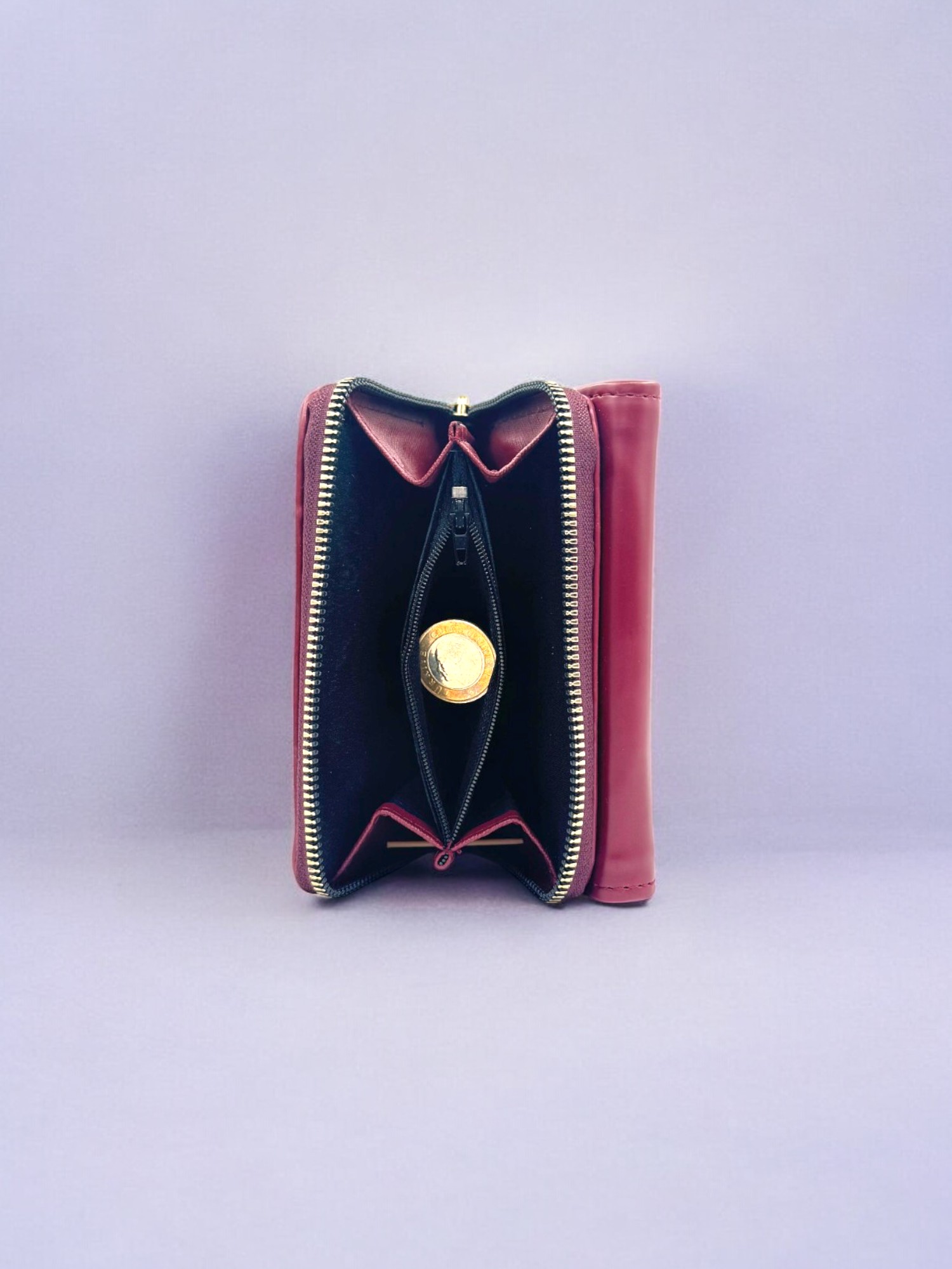 Kadın Fermuarlı Bozuk Para Bölmeli Kapaklı Bordo Cüzdan