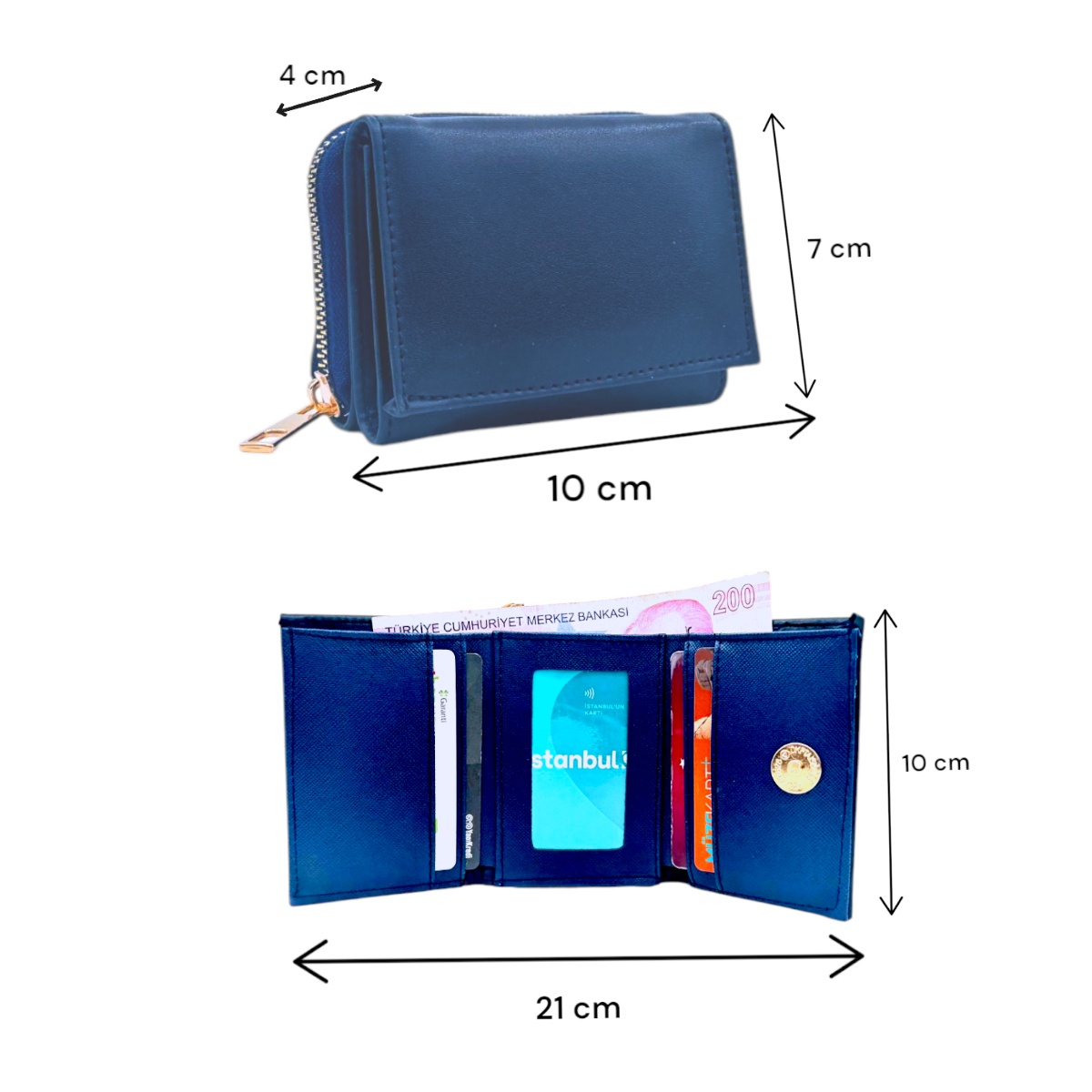 Kadın Fermuarlı Bozuk Para Bölmeli Minik Lacivert Cüzdan Kartlık