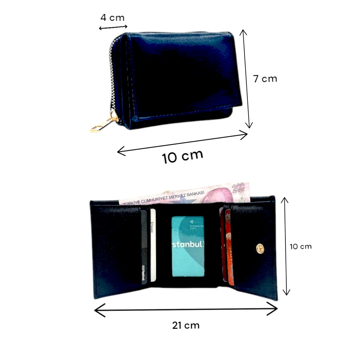 - Kapak açık boyu 21 x 10 cmdir. 5 adet kart haznesi ve 1 adet kağıt para koyabileceğiniz bölüm bulunmaktadır.