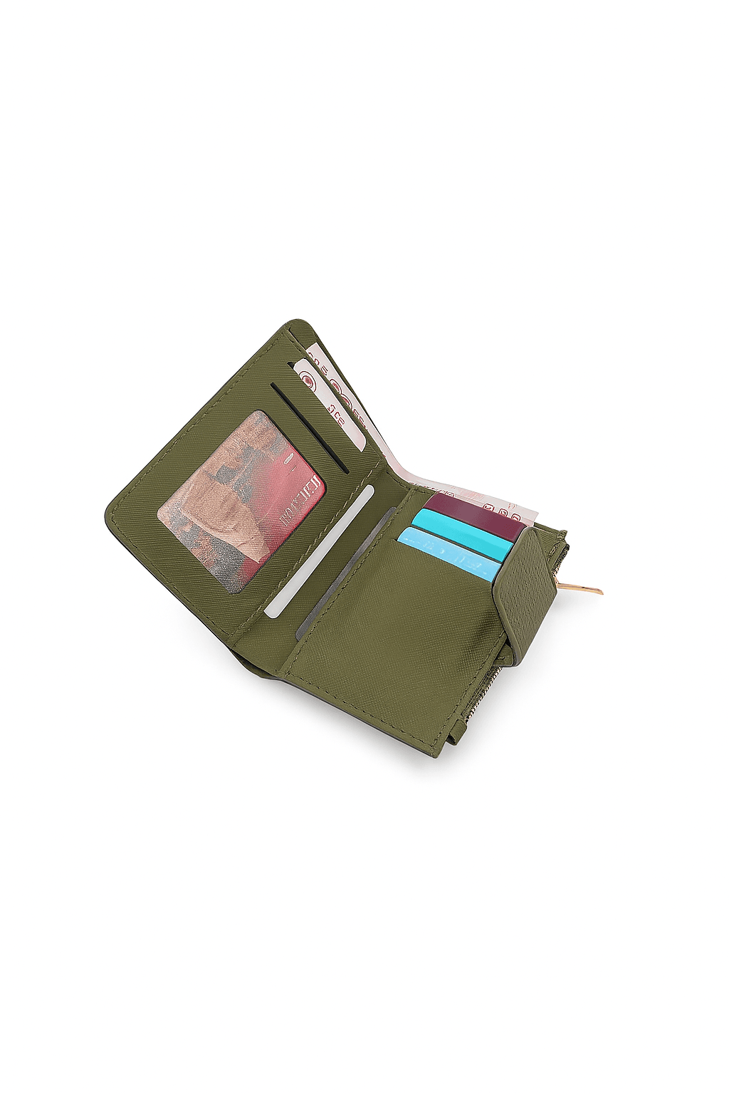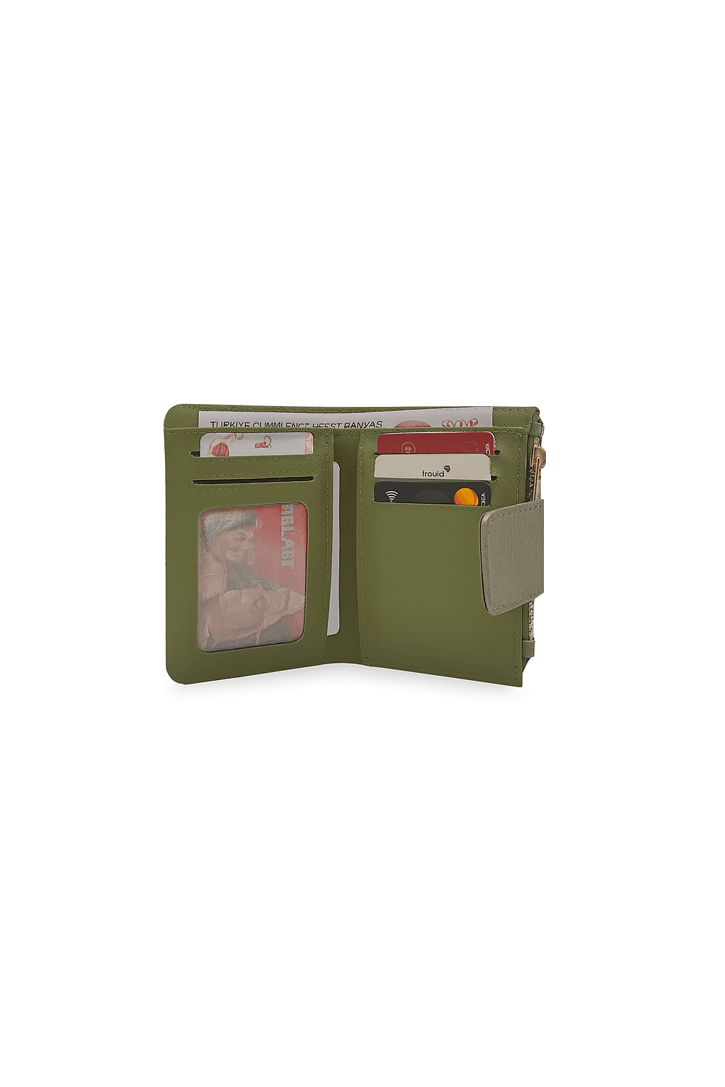 Kadın Fermuarlı Kartlıklı Cüzdan – Deri Görünümlü, Bozuk Para Gözlü