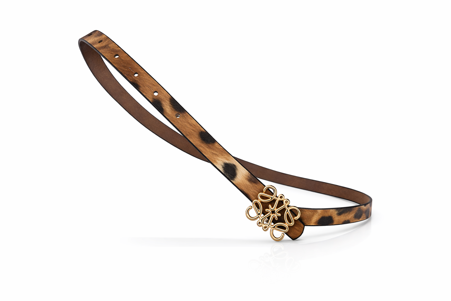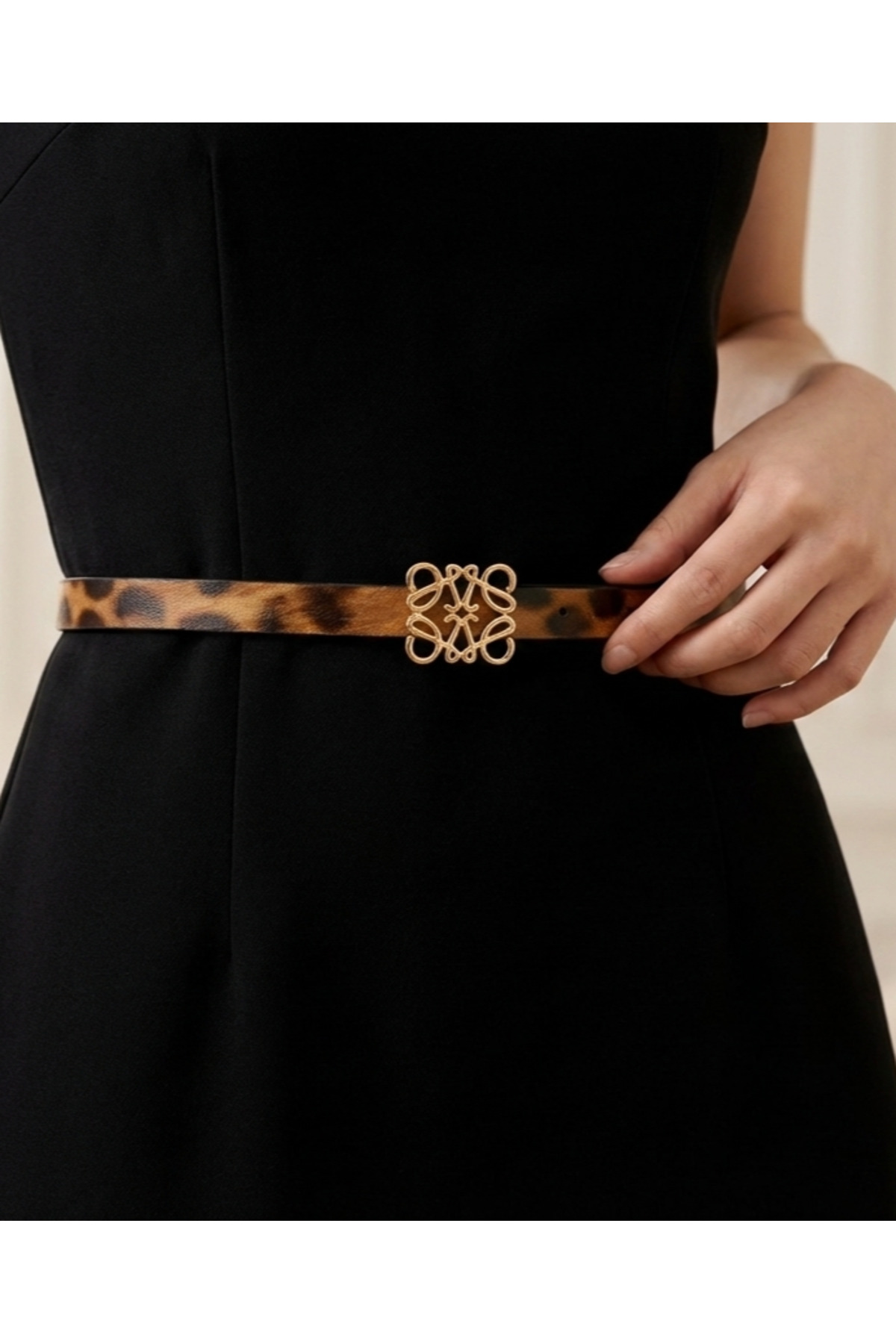 Kadın İnce Suni Deri Gold Tokalı Leopar Desenli Kemer – Zarif Günlük ve Şık Kombinler İçin – Elbise Kemeri