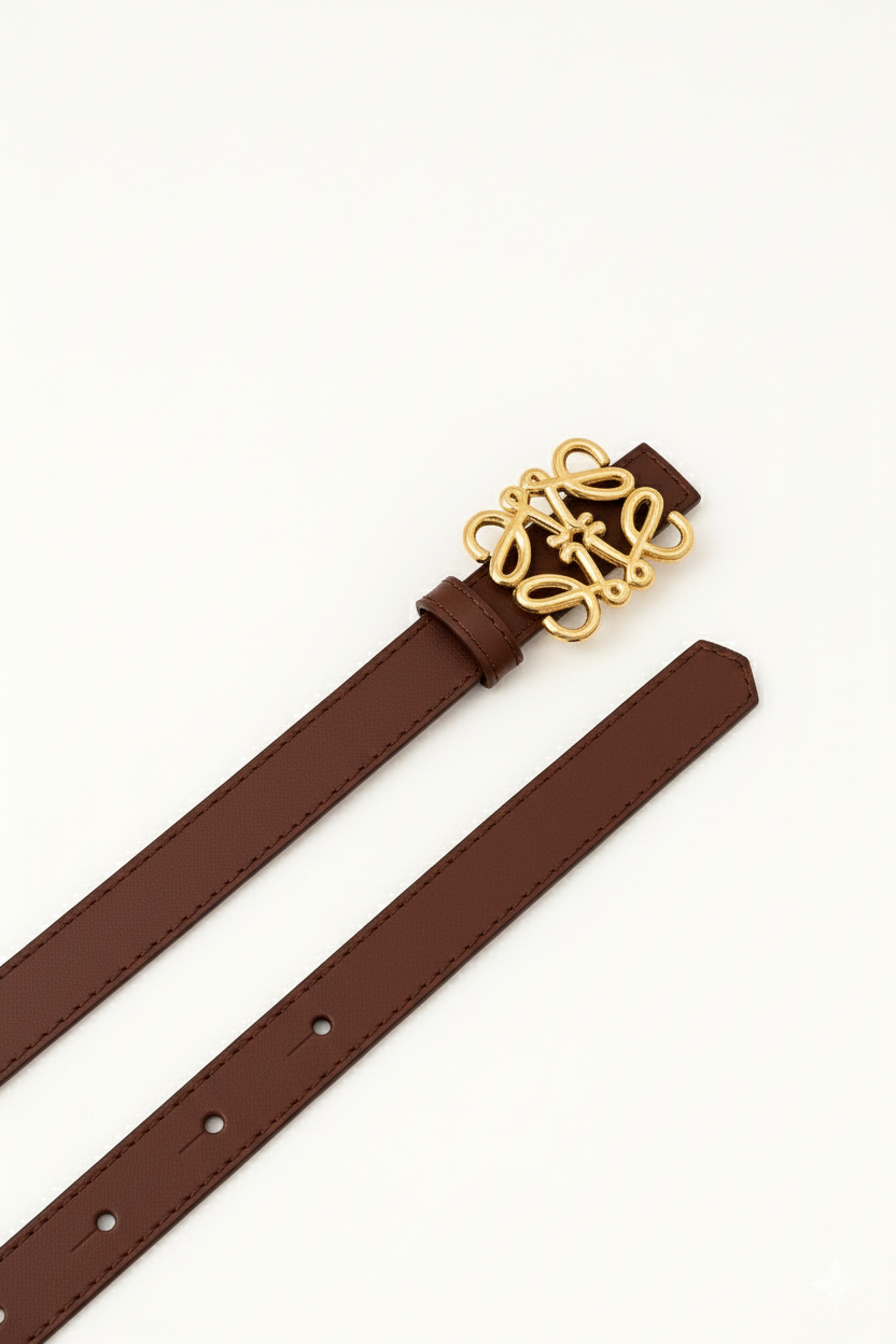 Kadın İnce Suni Deri Gold Tokalı Kahverengi Kemer – Zarif Günlük ve Şık Kombinler İçin – Elbise Kemeri