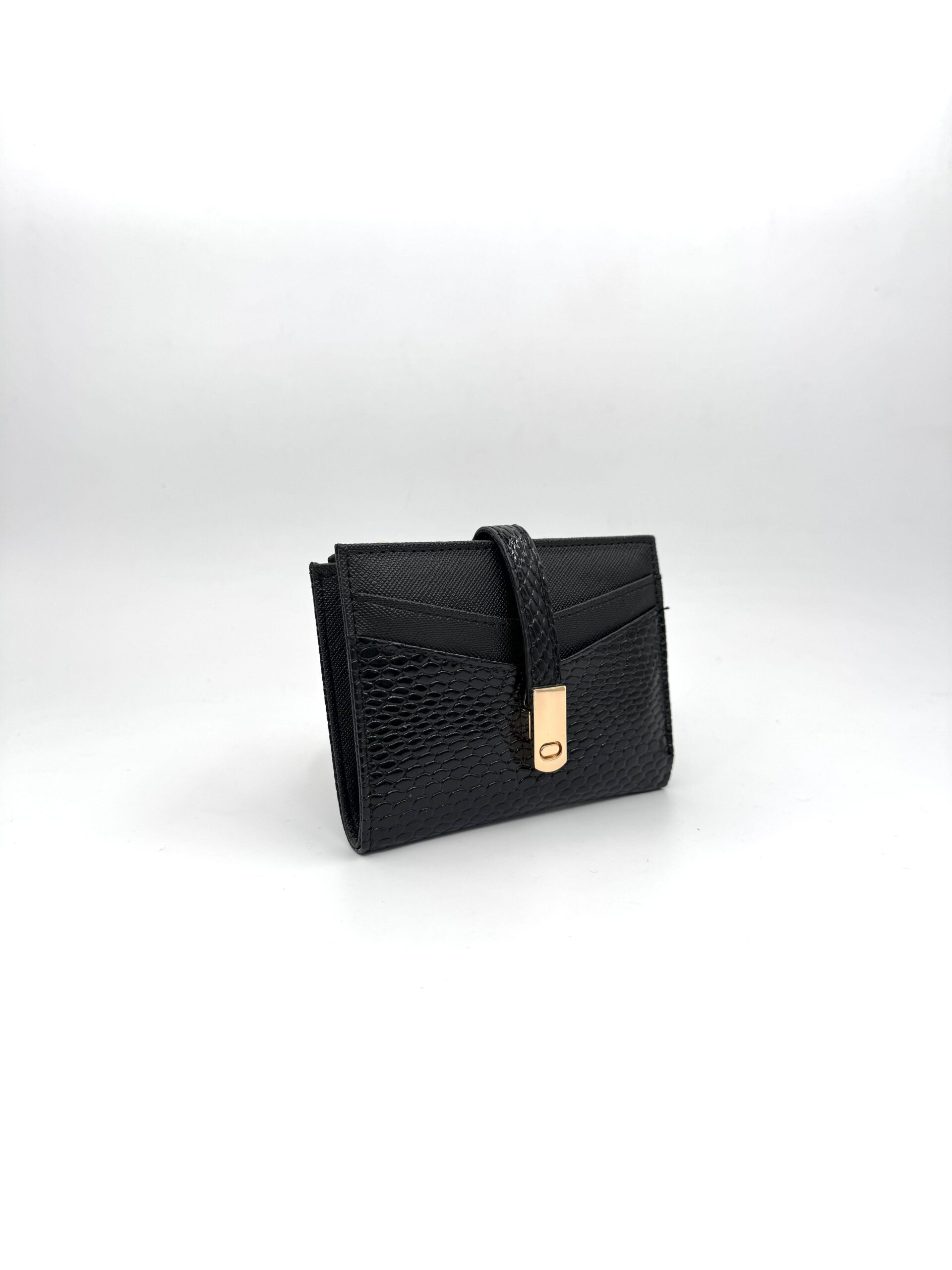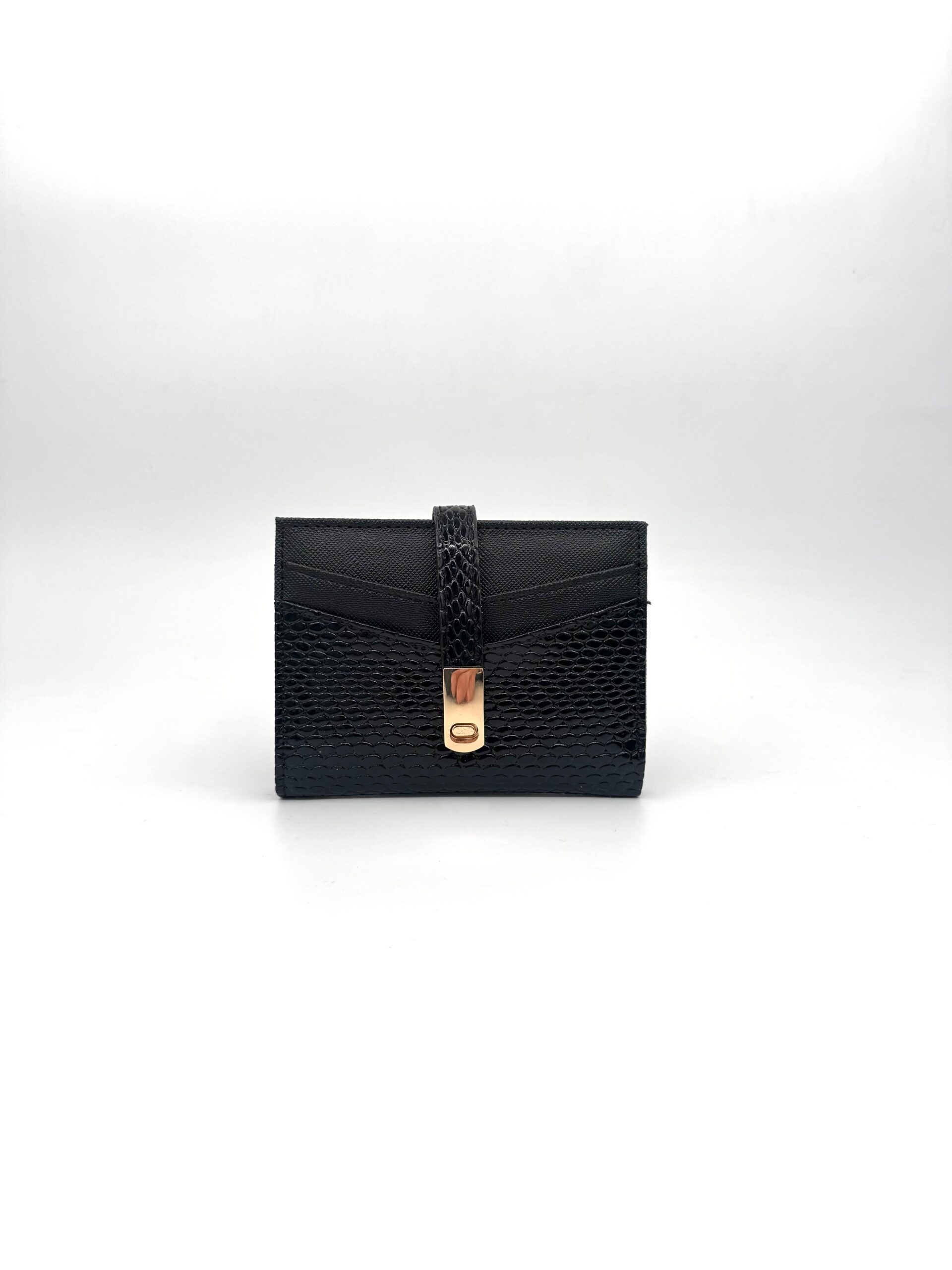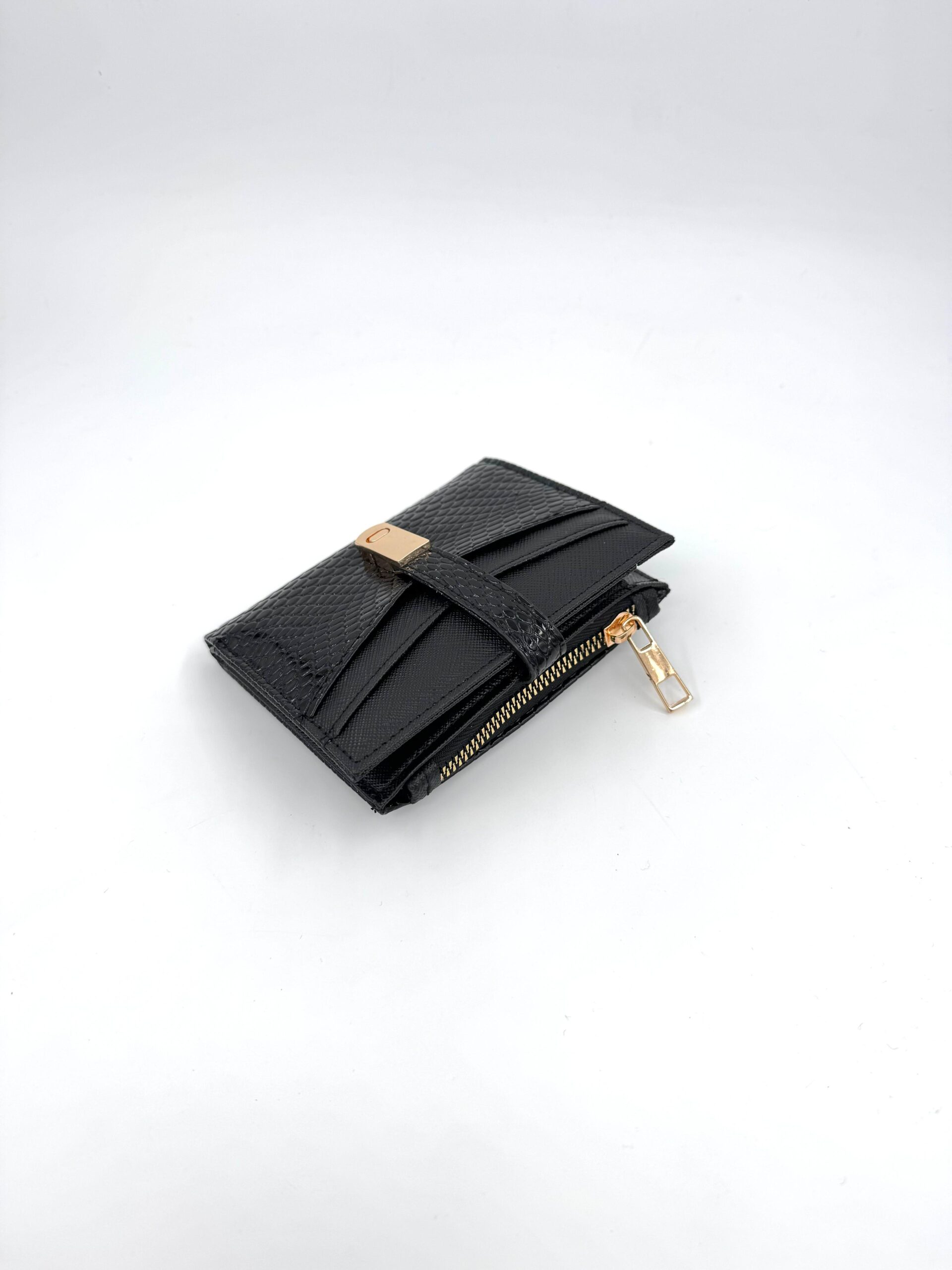 Kadın Siyah Cüzdan – Fermuarlı, Çok Bölmeli, Yılan Desenli Deri Görünümlü, Kartlık ve Para Bölmeli Model