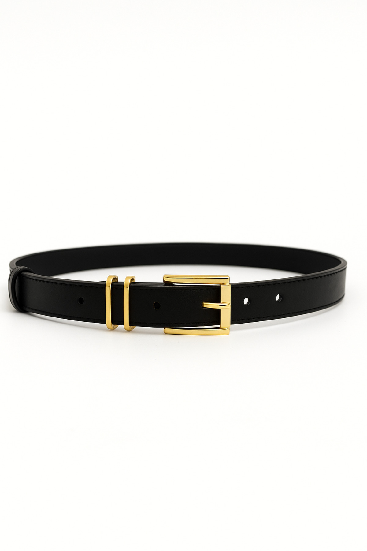 Kadın Siyah Gold Tokalı Klasik Suni Deri Kemer – Şık Günlük ve Ofis Kombinleri İçin