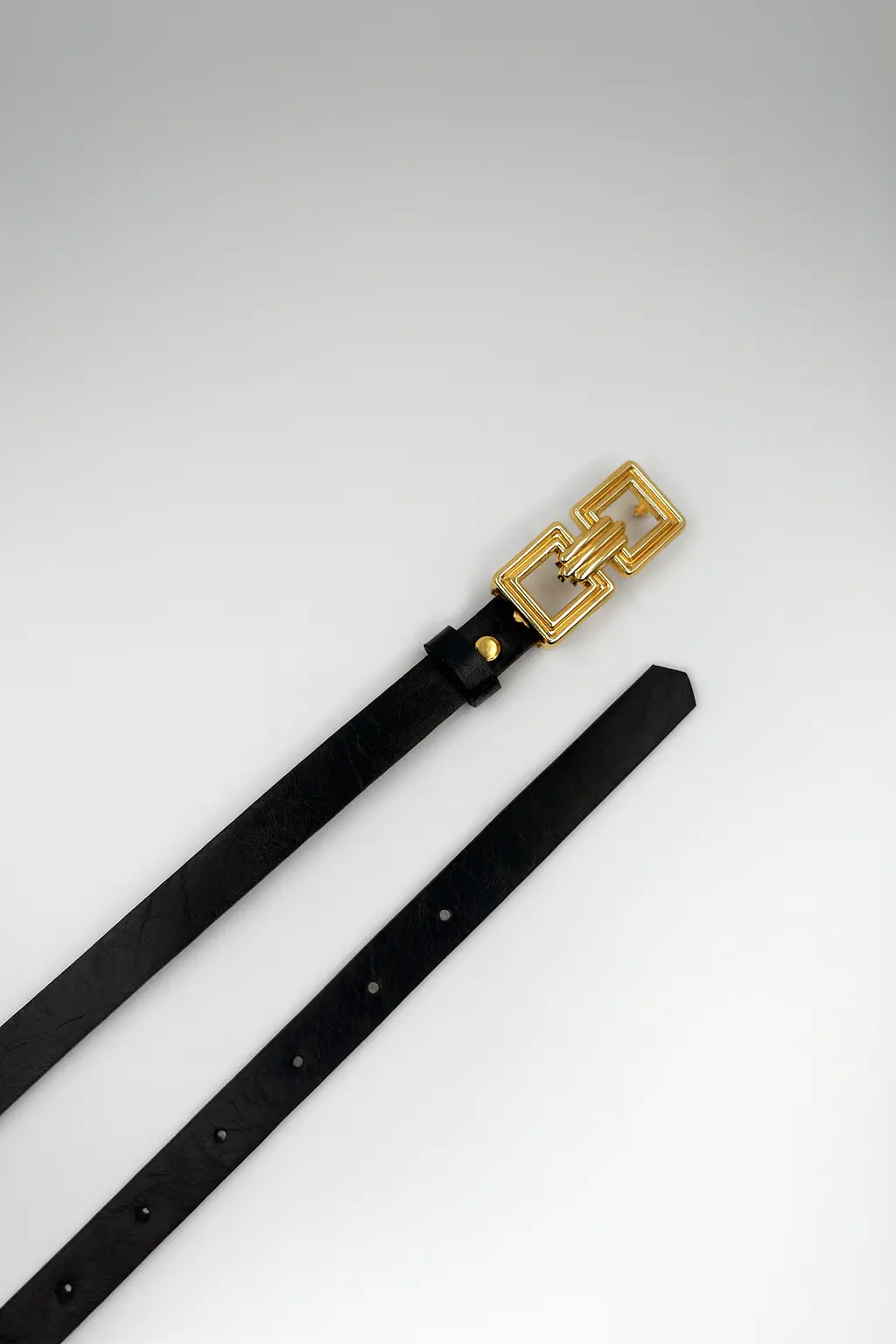 - Modern çizgileriyle dikkat çeken bu siyah ince deri kemer, geometrik gümüş tokasıyla hem klasik hem de günlük kombinlerin vazgeçilmezi olur.