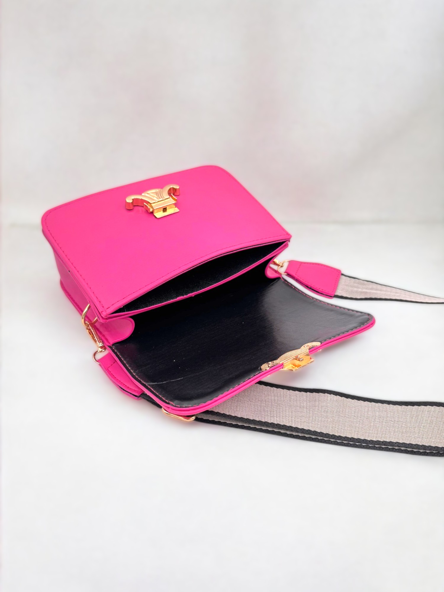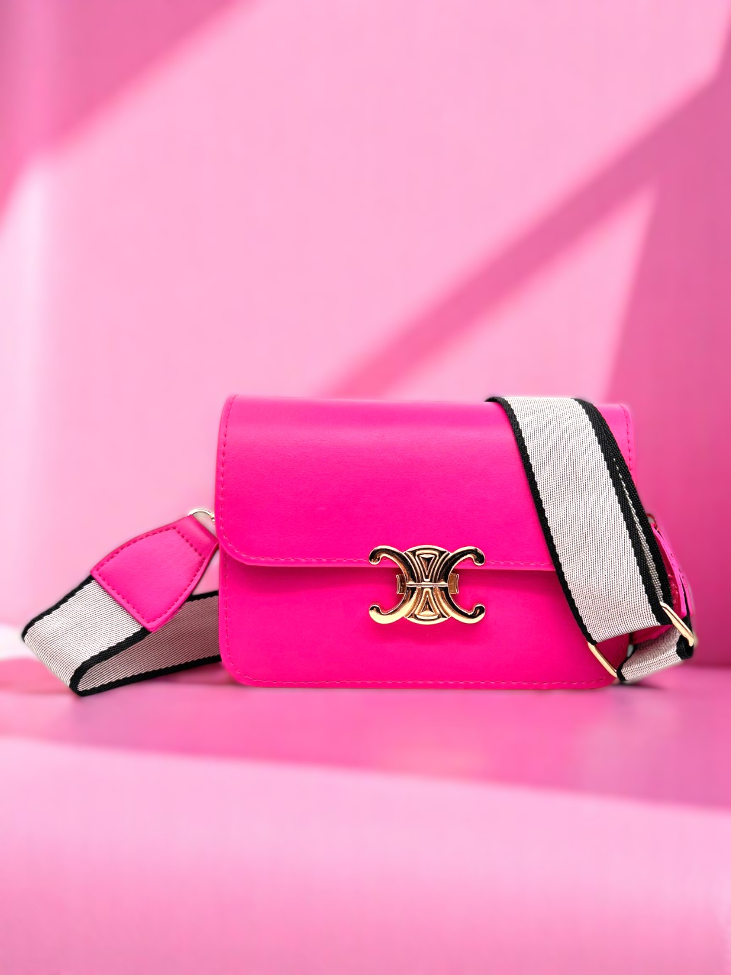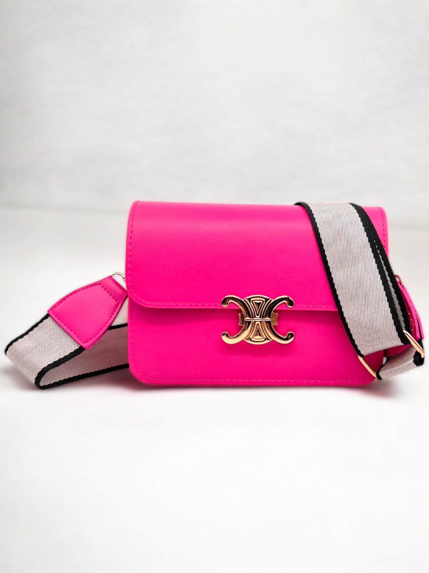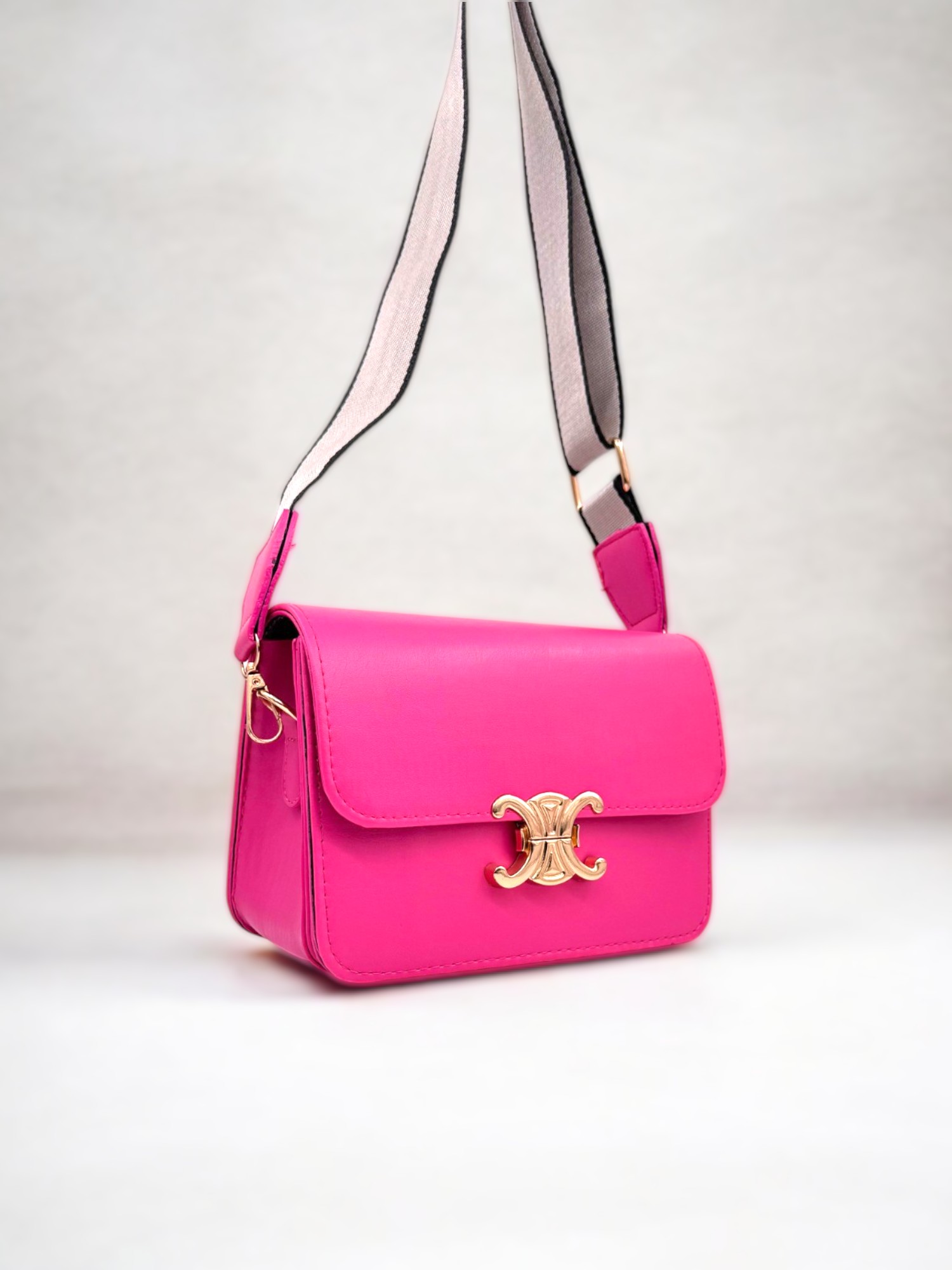 Kadın Tokalı Omuz Ve Çapraz Askılı Fuşya Çanta
