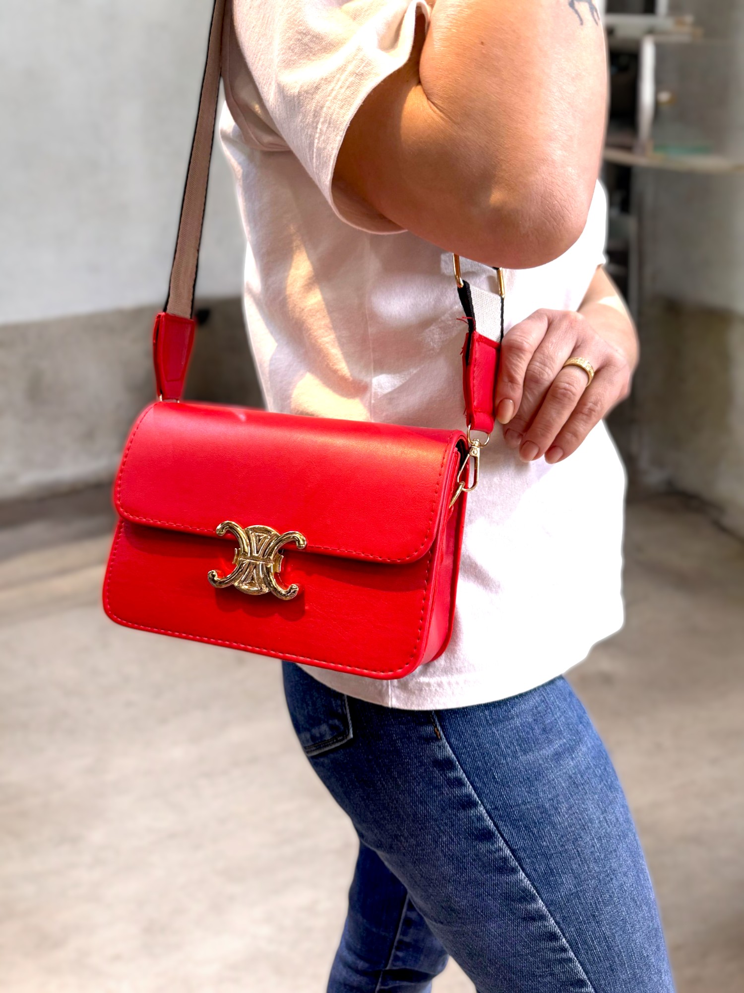 Kadın Tokalı Omuz Ve Çapraz Askılı Kırmızı Çanta