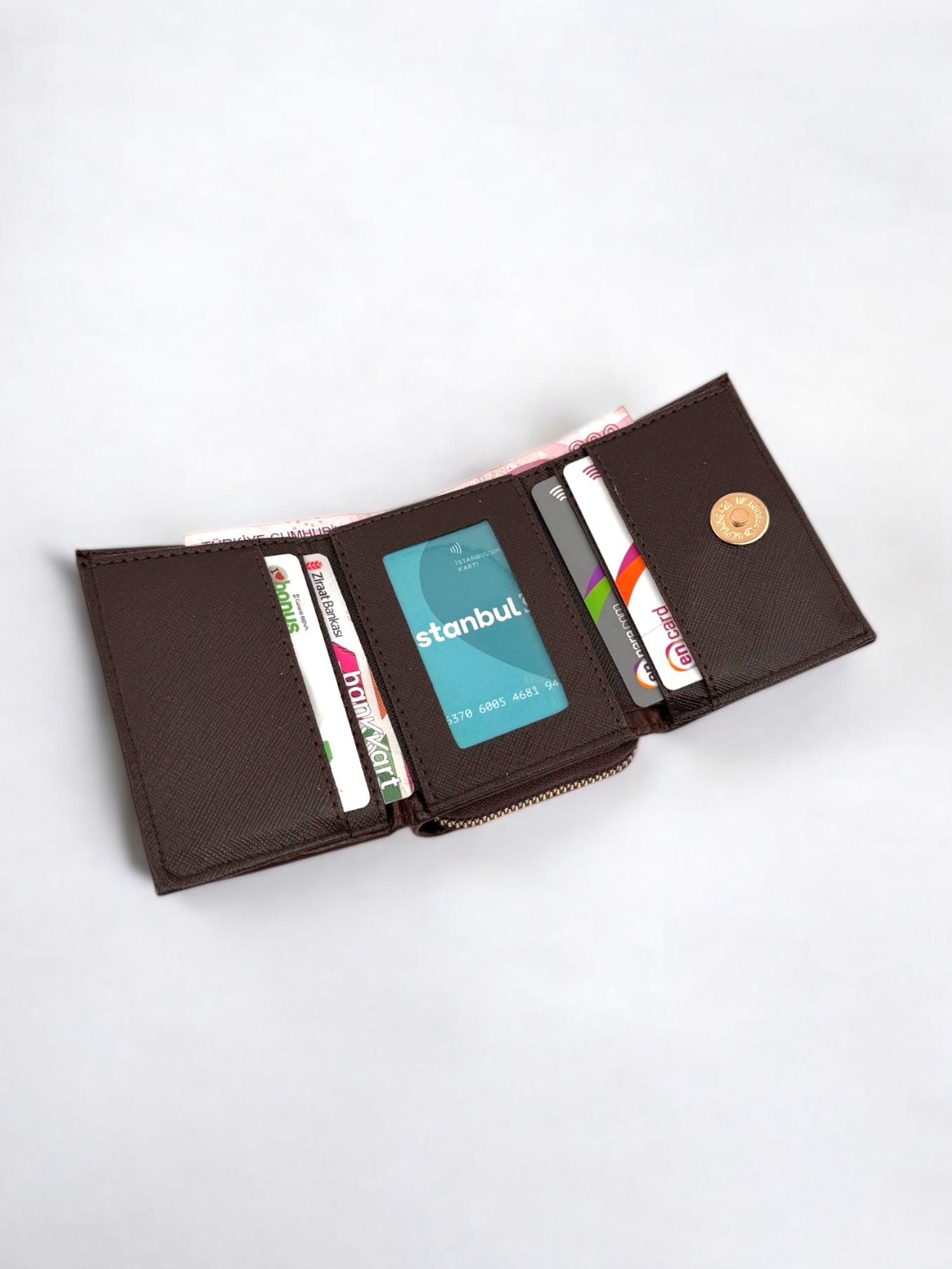 Kahverengi Fermuarlı Mıknatıslı Mini Kadın Cüzdan
