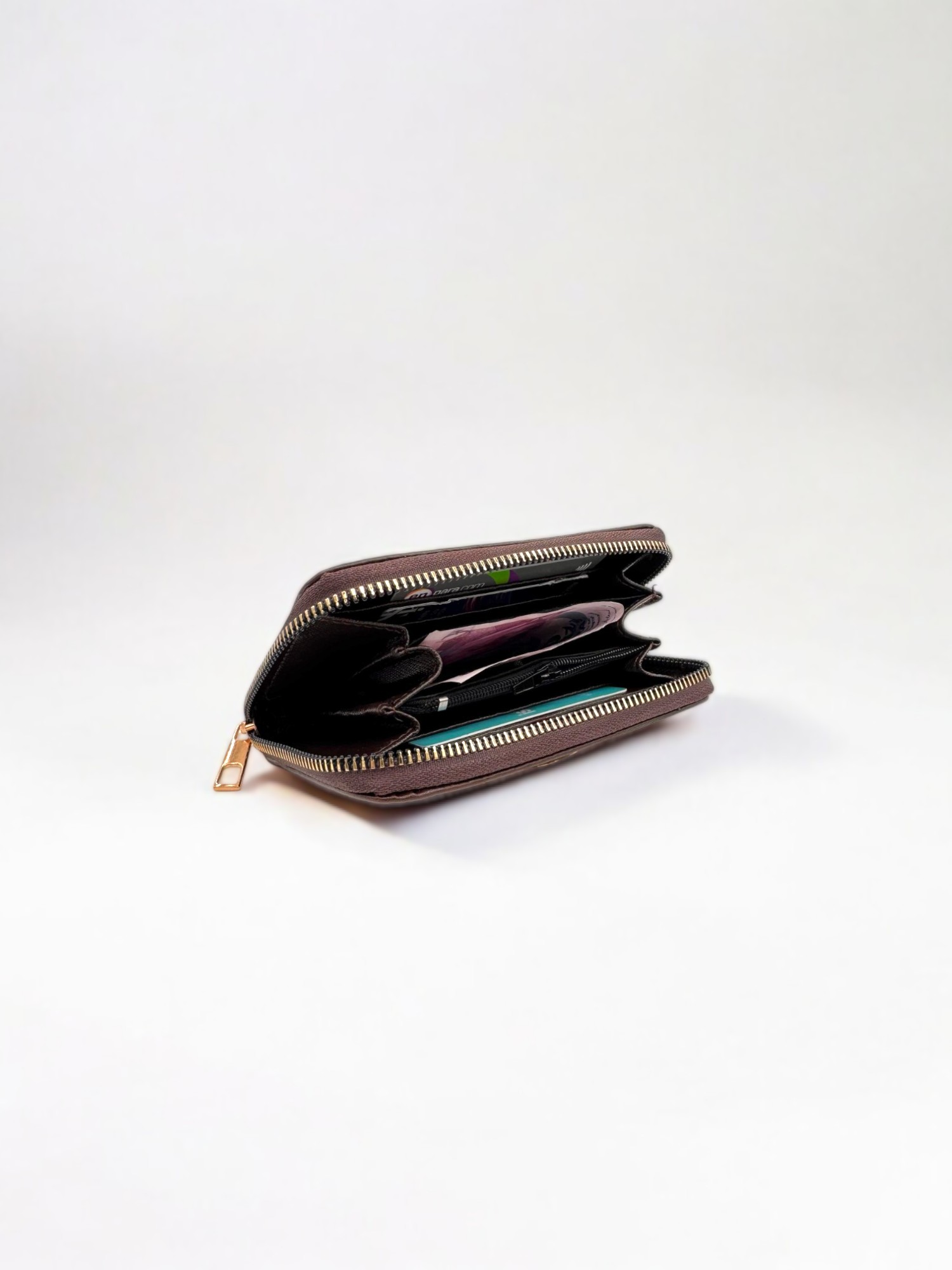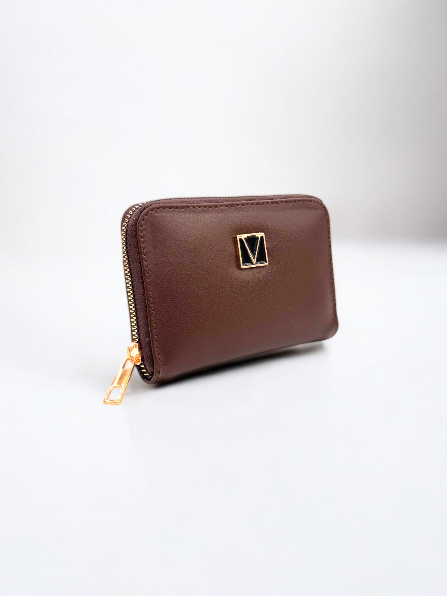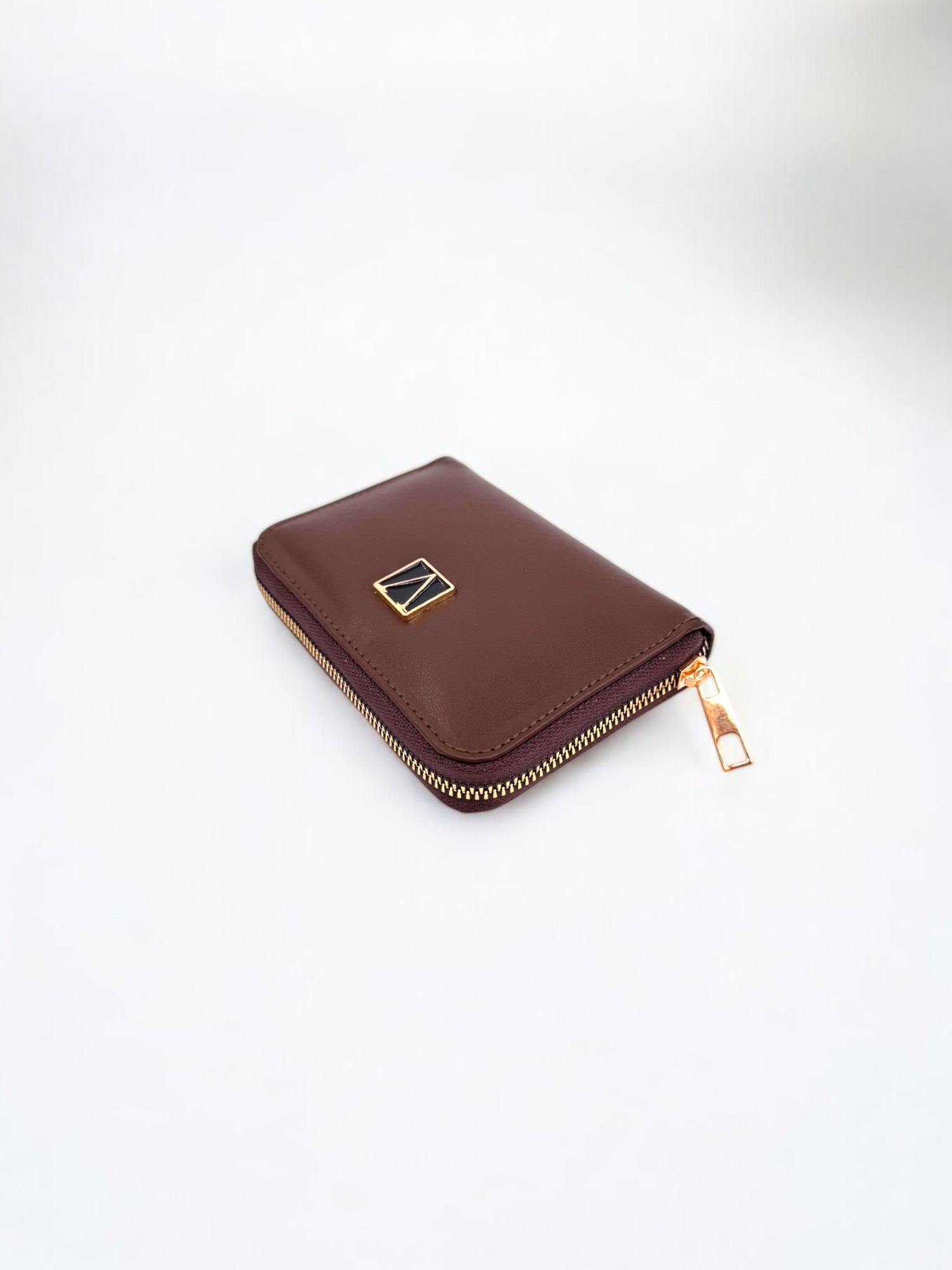 Kahverengi Fermuarlı Şık Kadın Cüzdan Kartlık