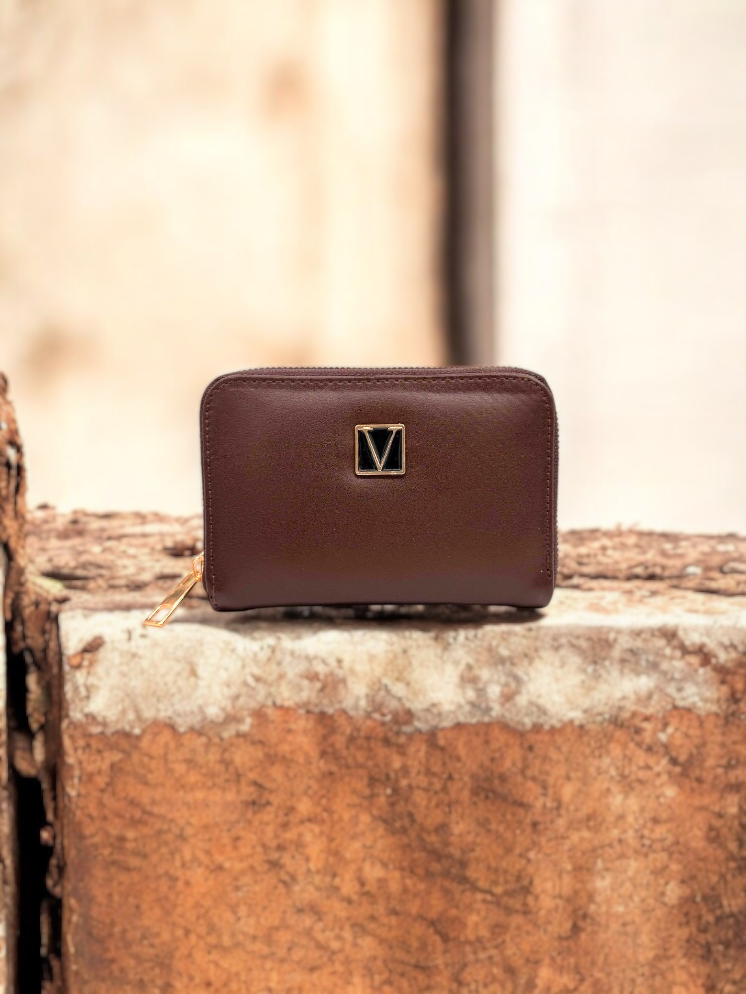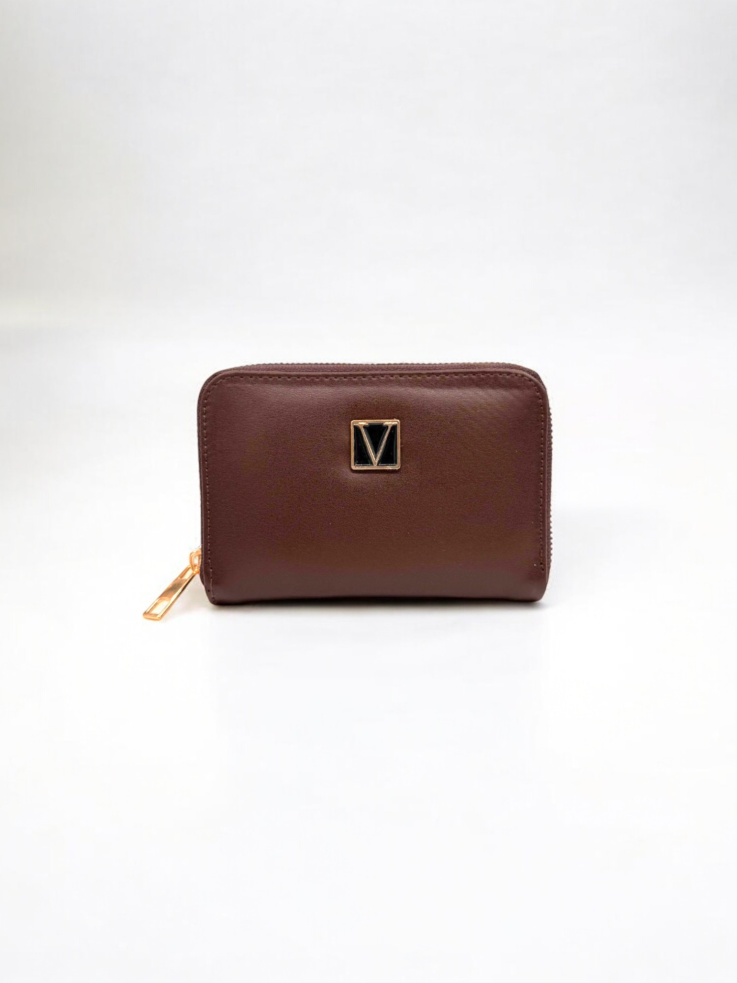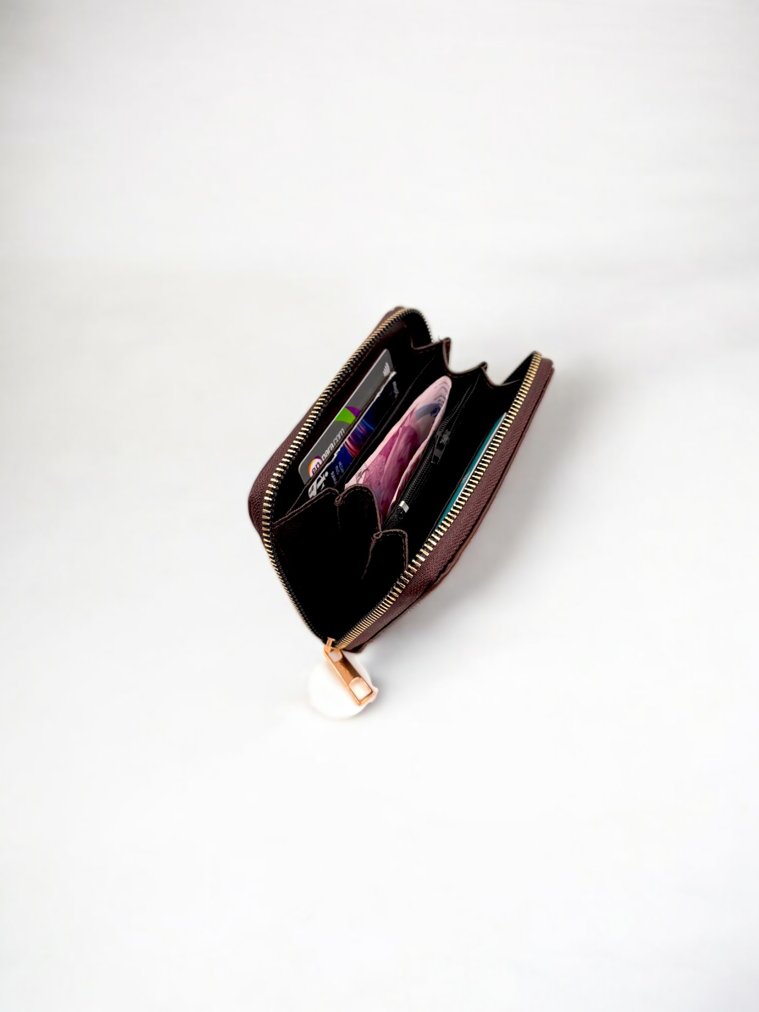 Kahverengi Fermuarlı Şık Kadın Cüzdan Kartlık