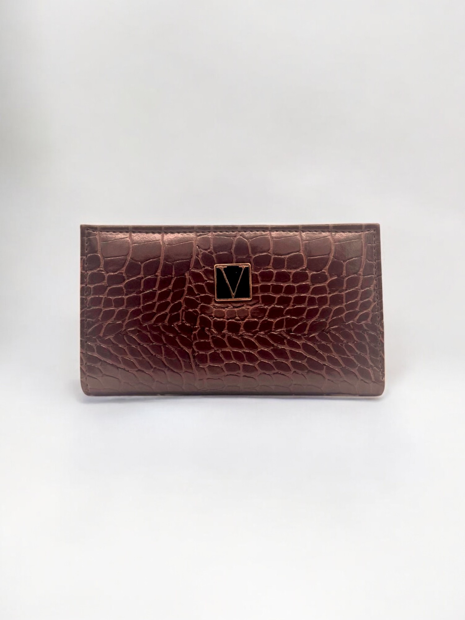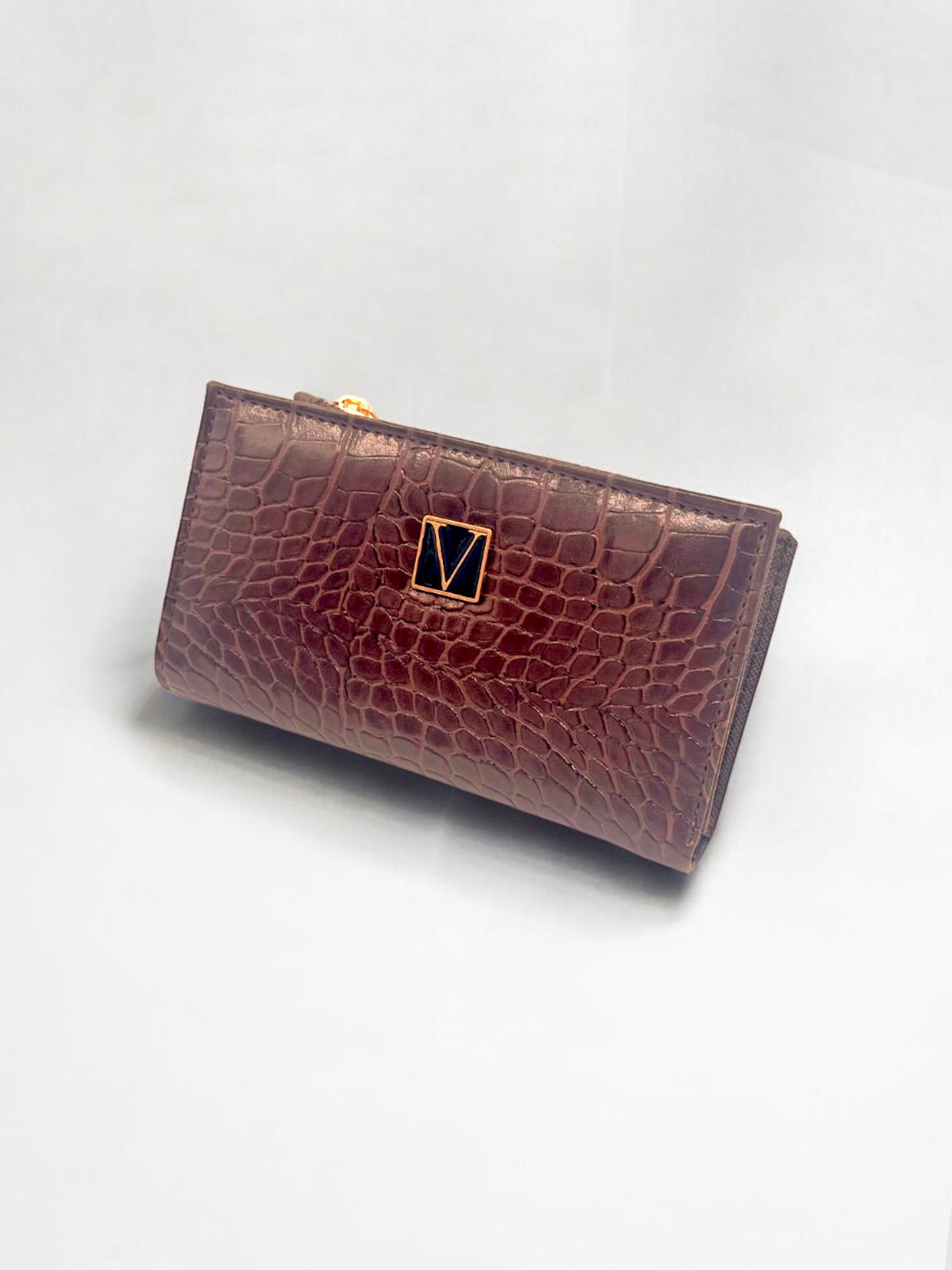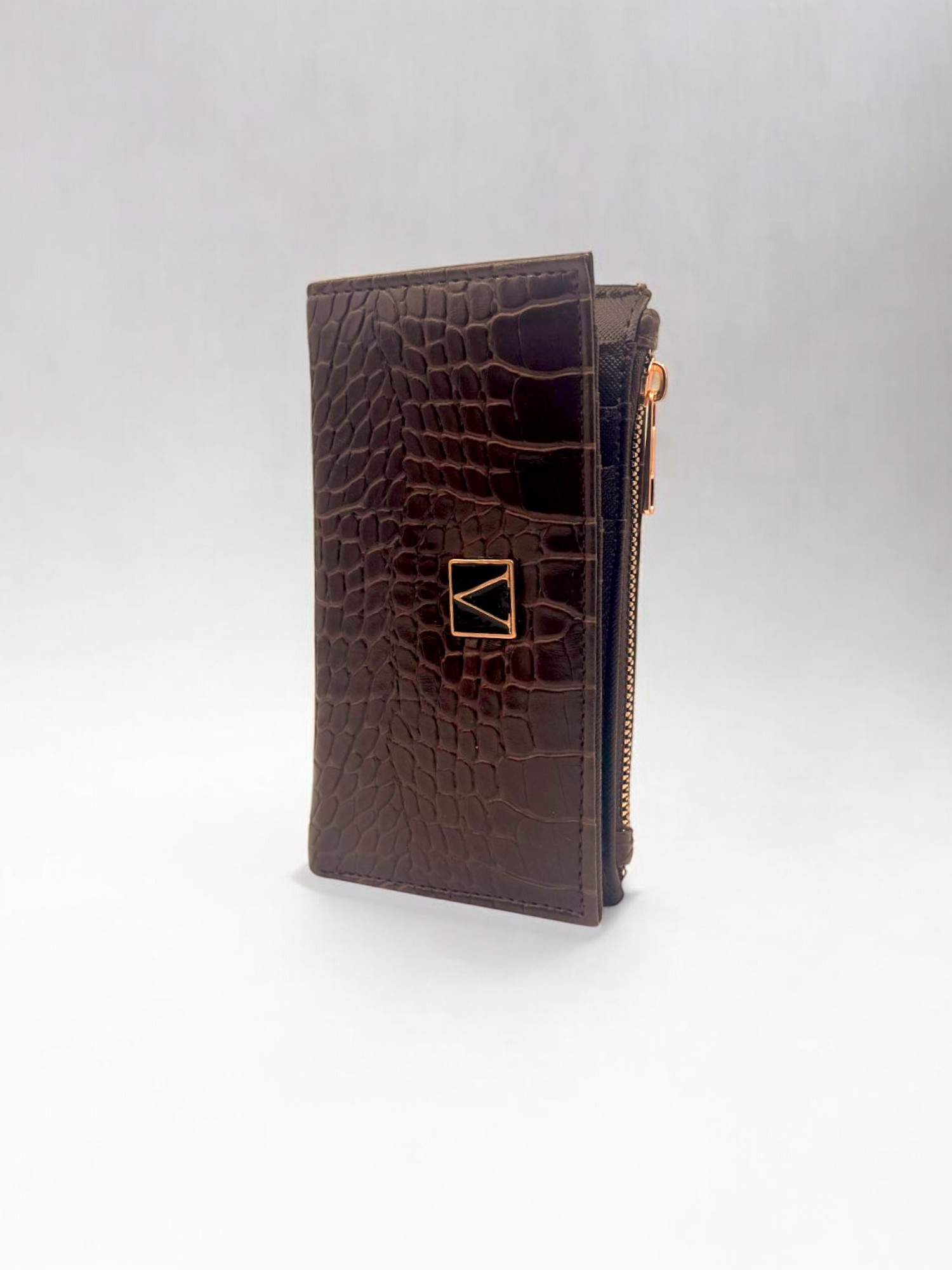 Kahverengi Timsah Desenli Fermuarlı Kadın Cüzdan