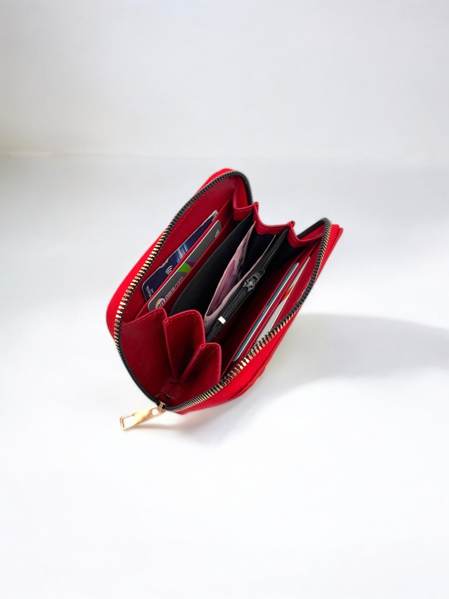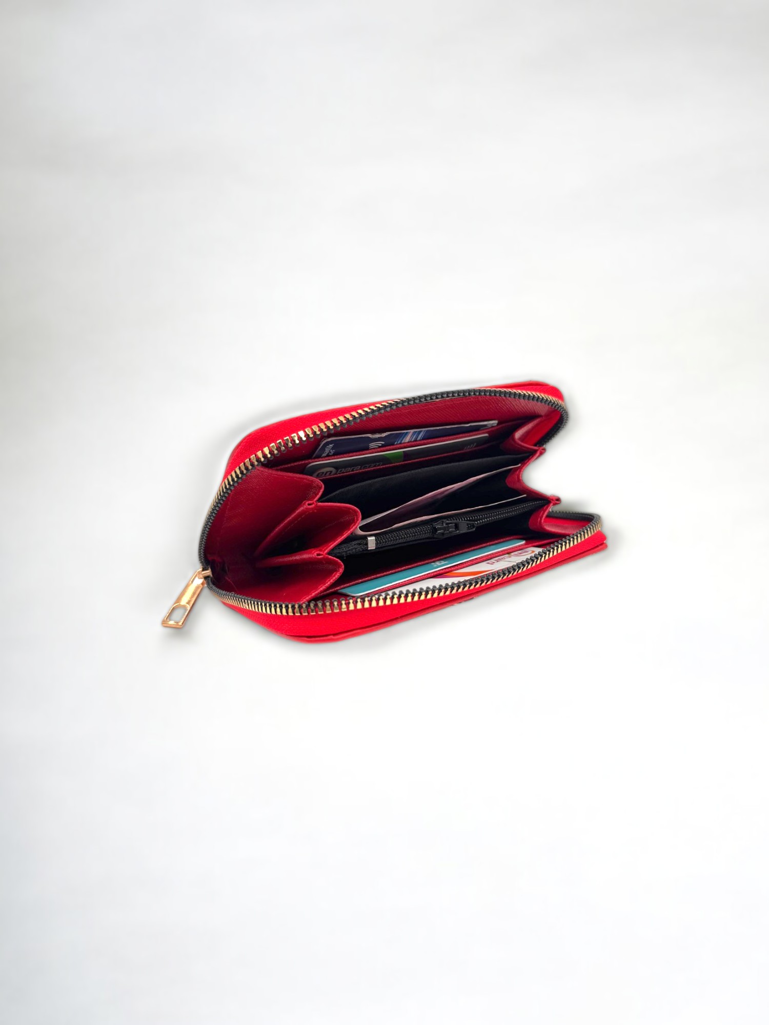 Kırmızı Fermuarlı Şık Kadın Cüzdan Kartlık