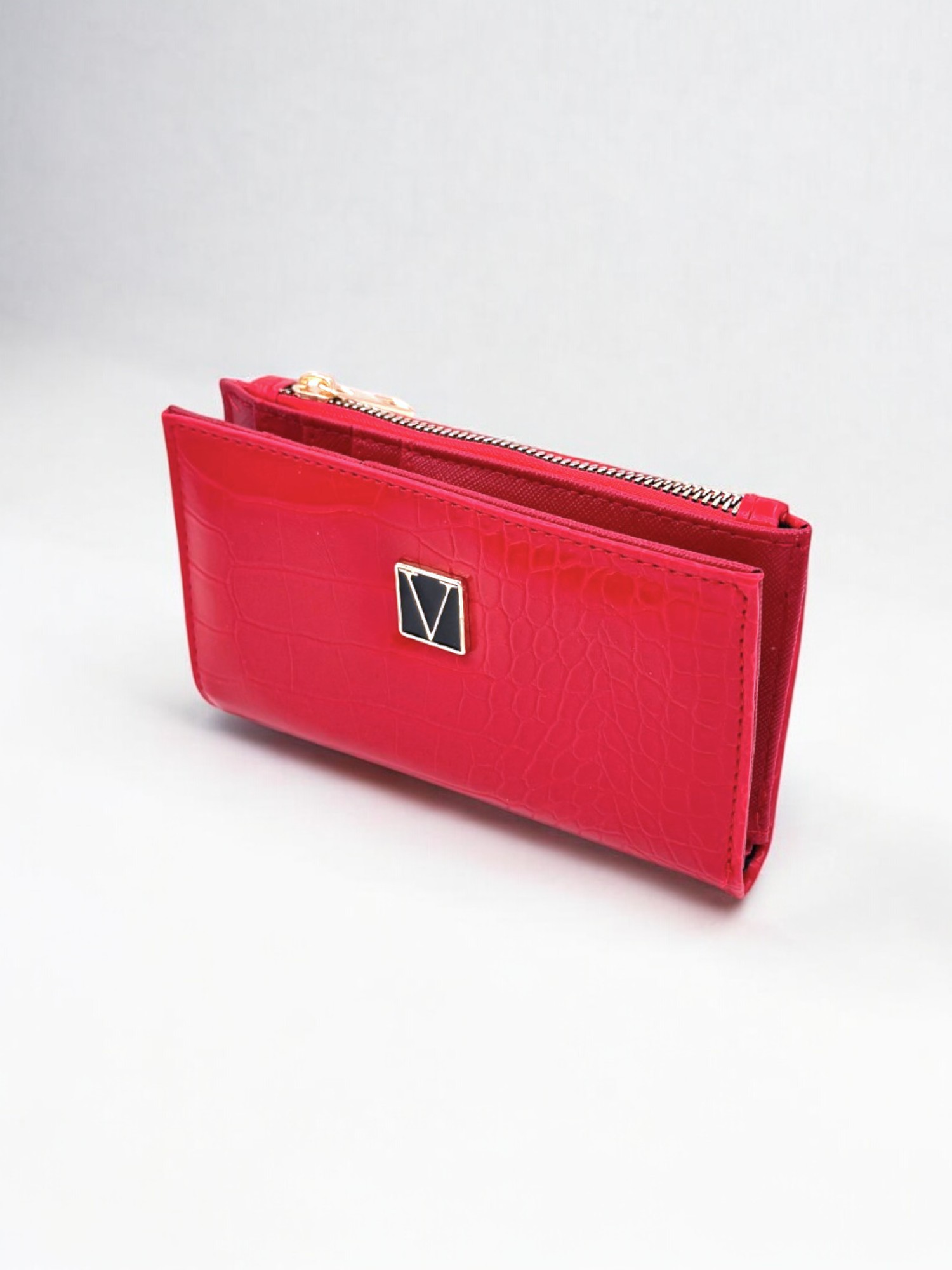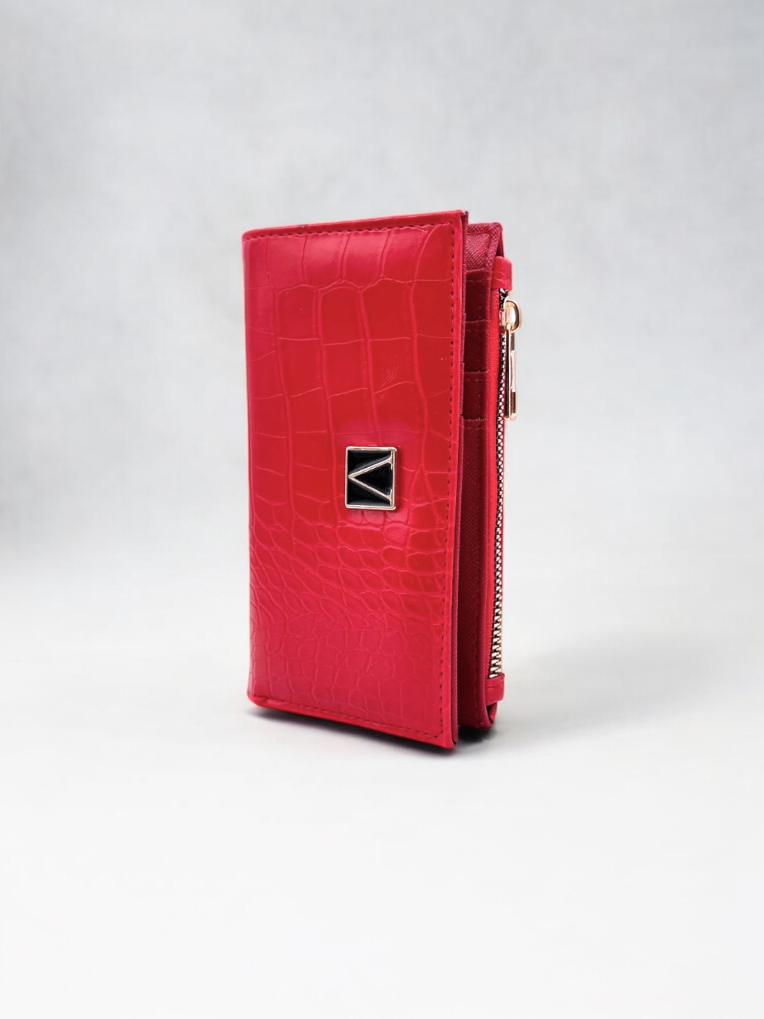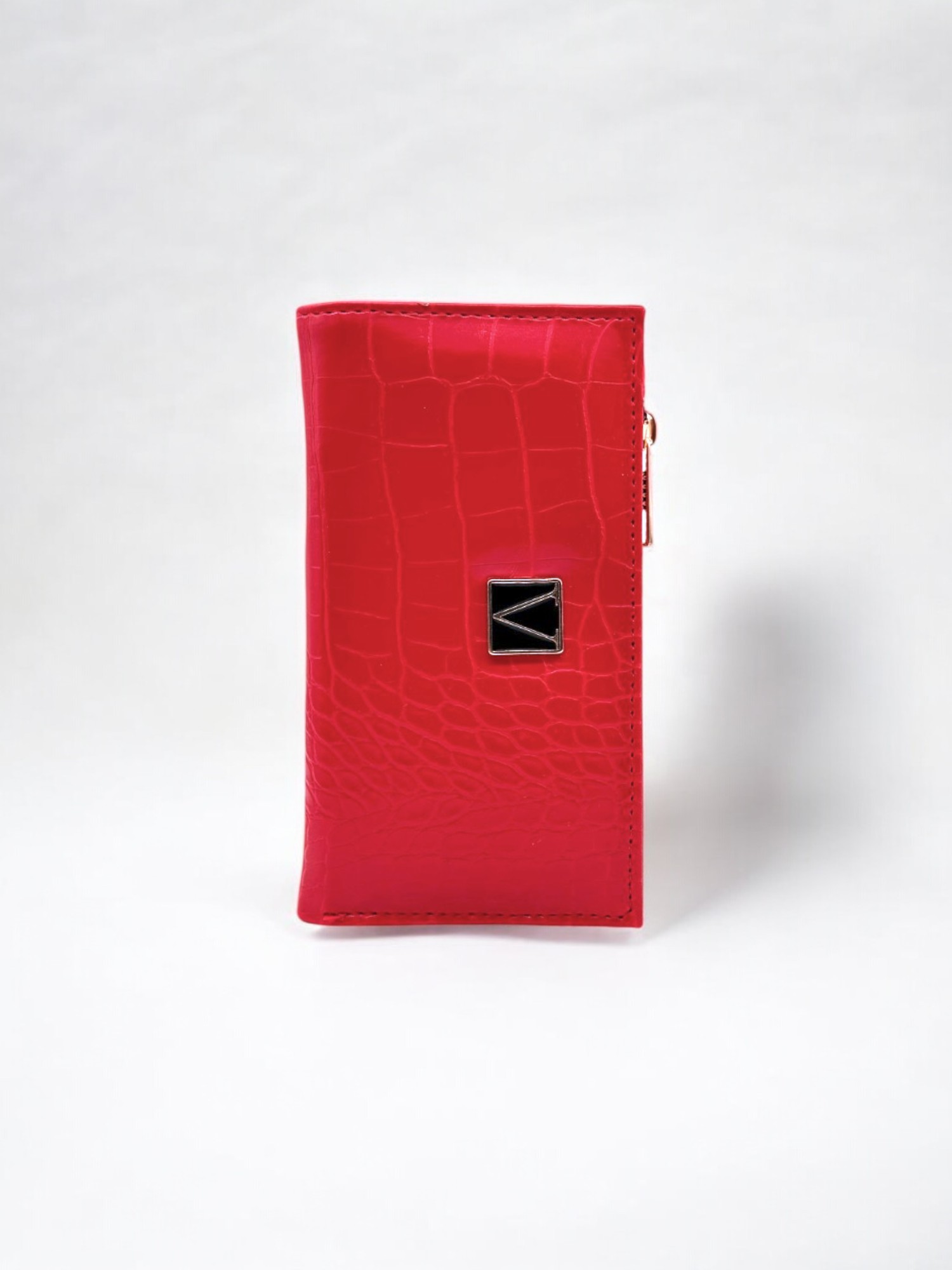 Kırmızı Timsah Desenli Fermuarlı Kadın Cüzdan