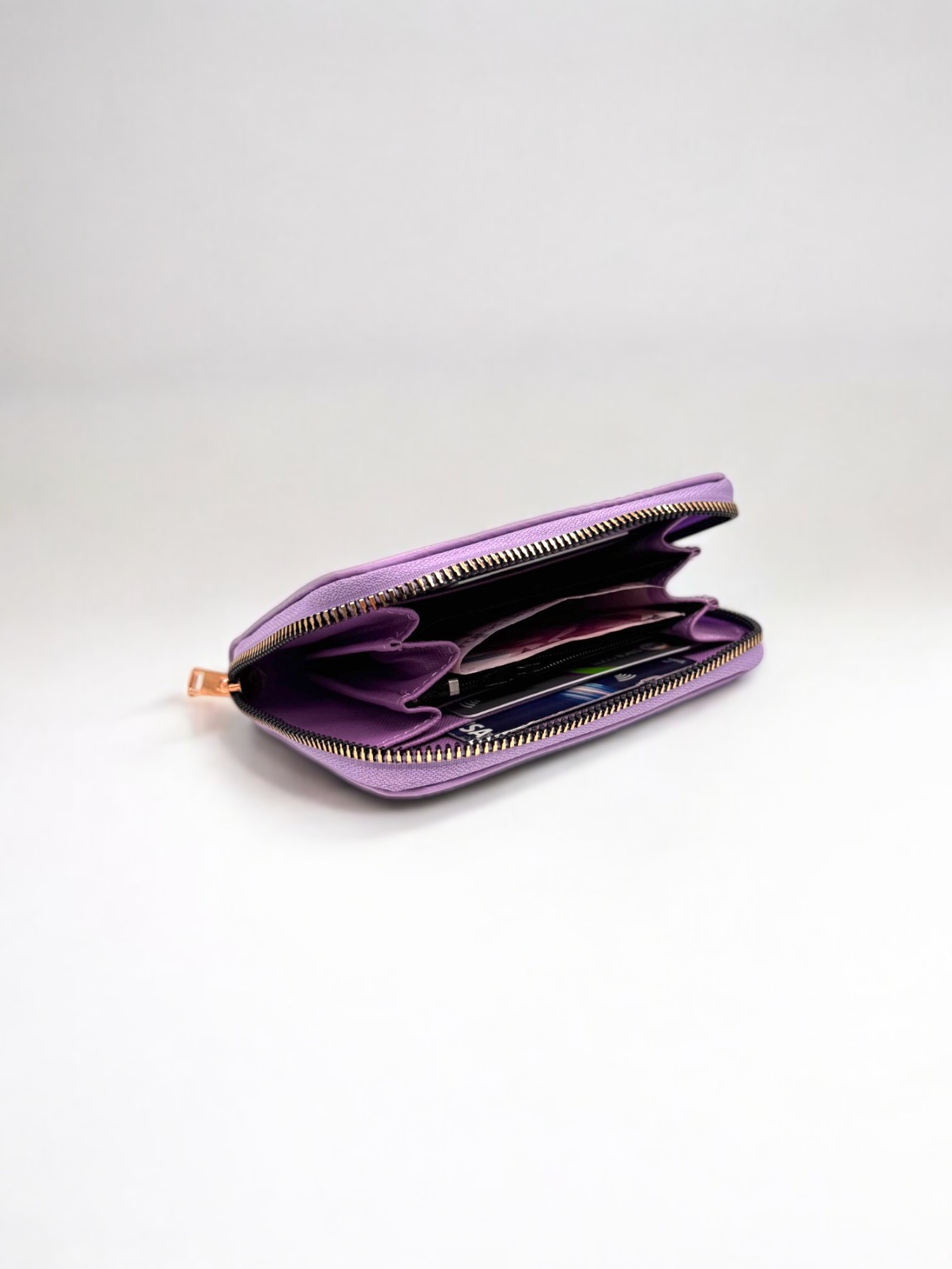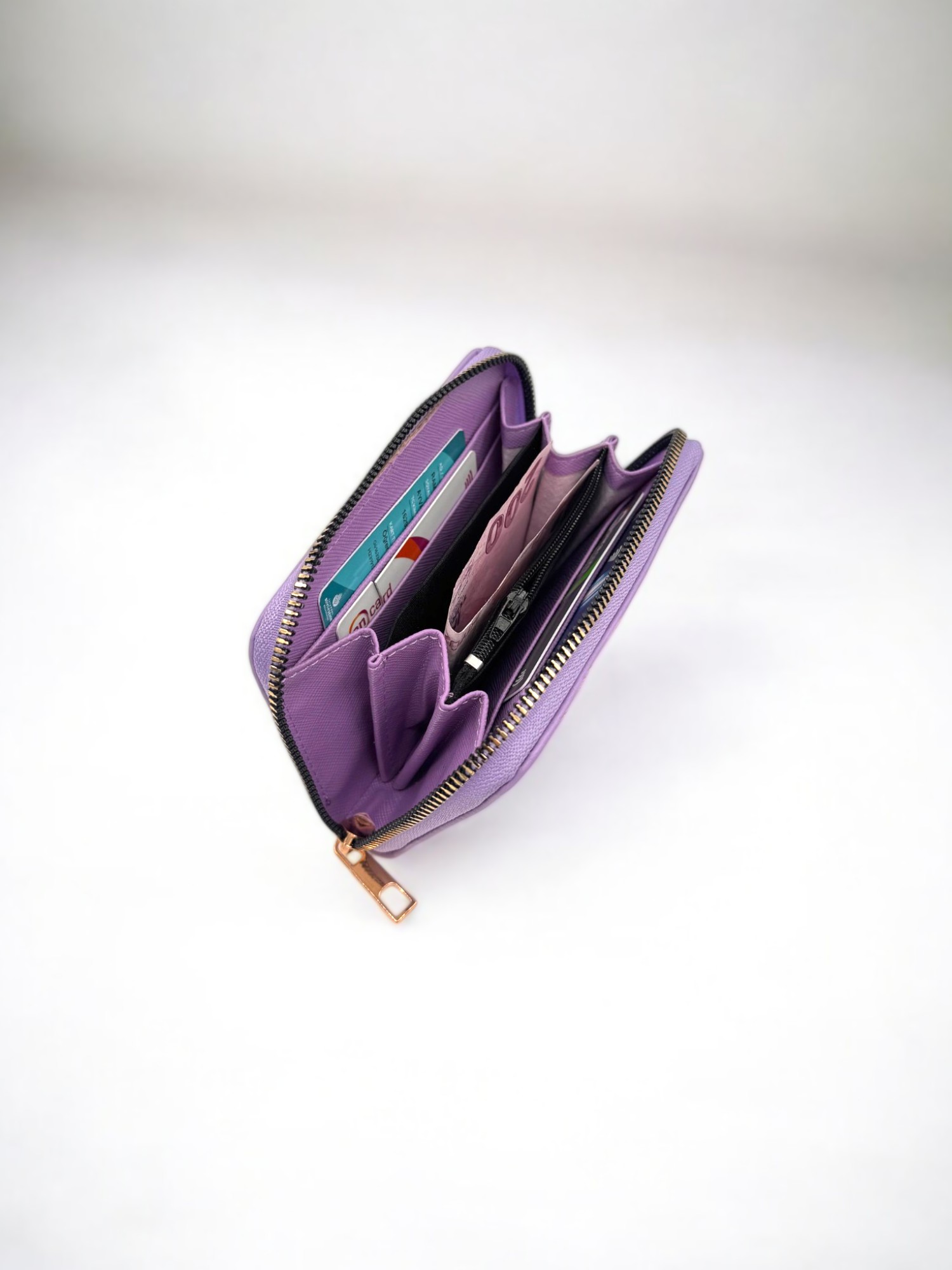 Lila Fermuarlı Şık Kadın Cüzdan Kartlık