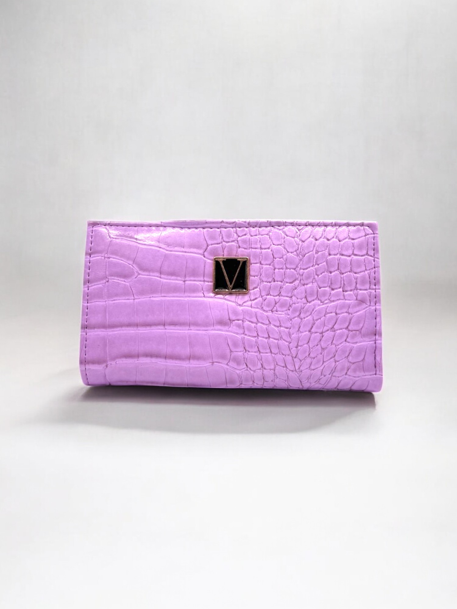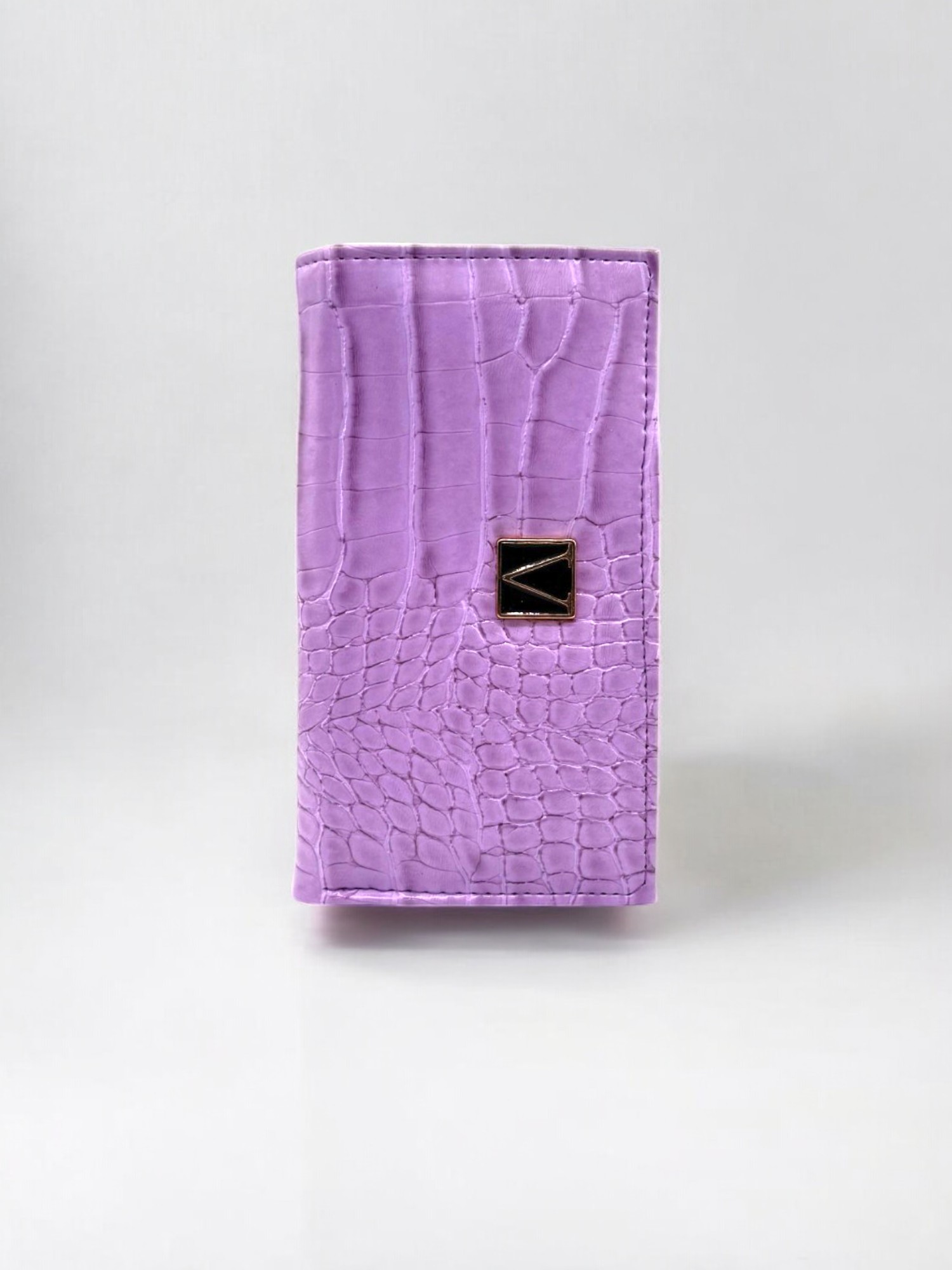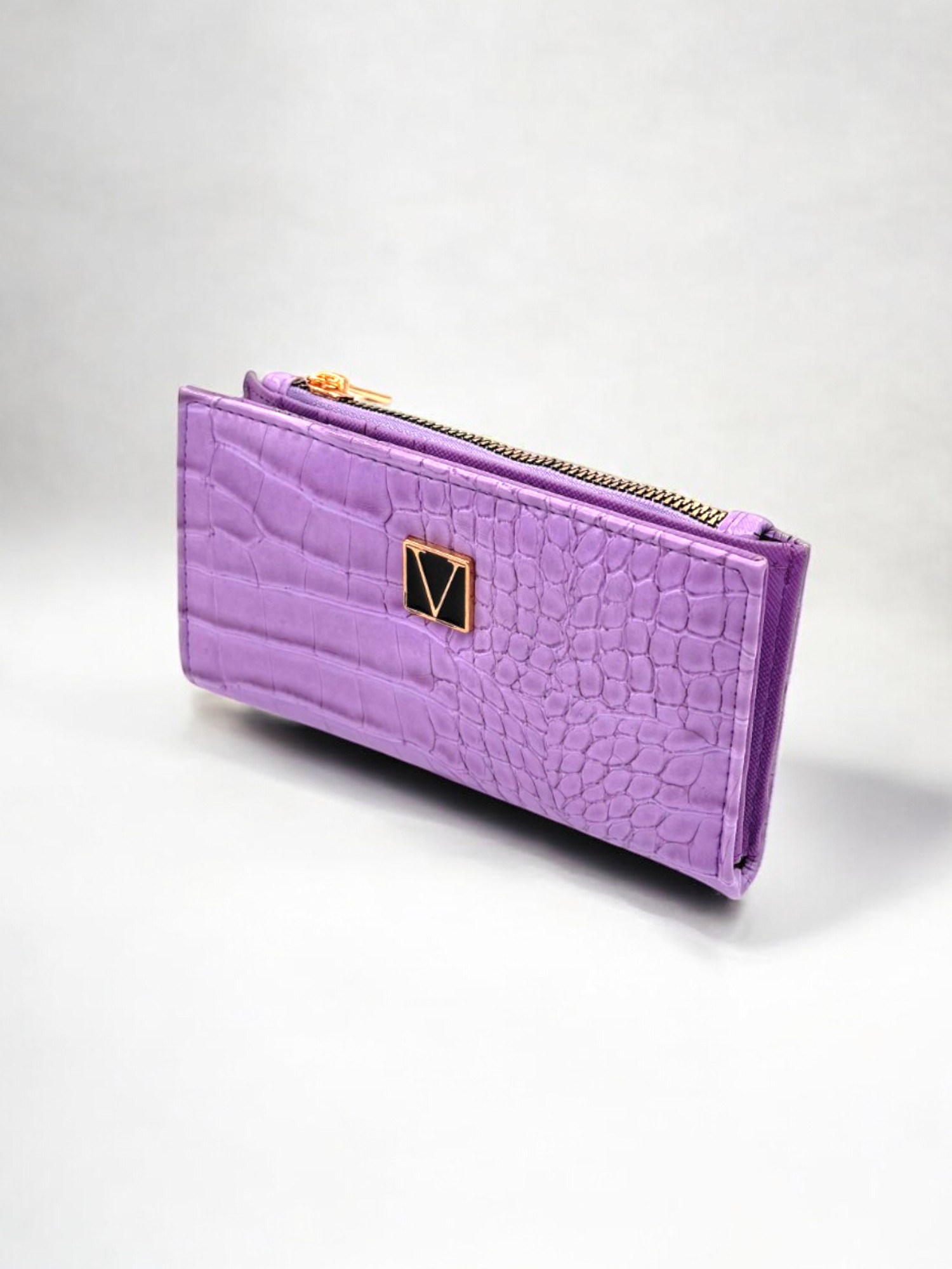 Lila Timsah Desenli Fermuarlı Kadın Cüzdan