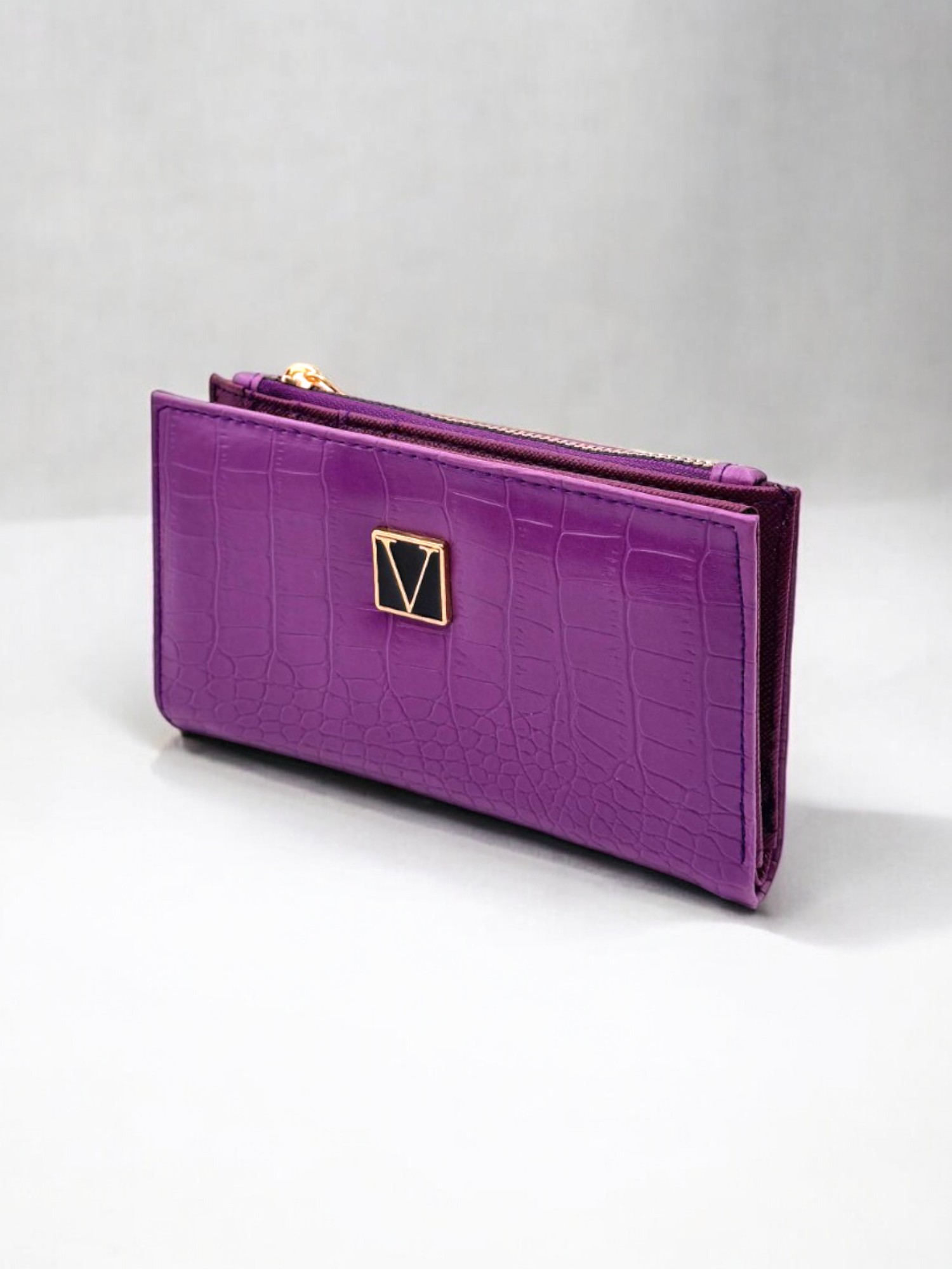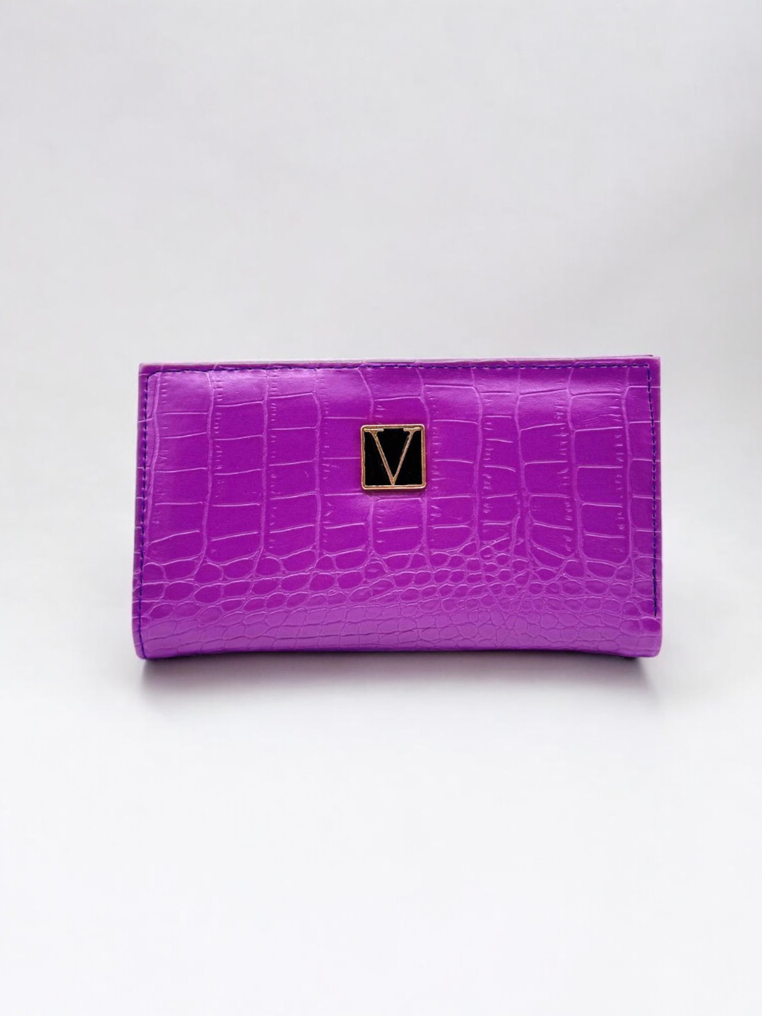 Mor Timsah Desenli Fermuarlı Kadın Cüzdan