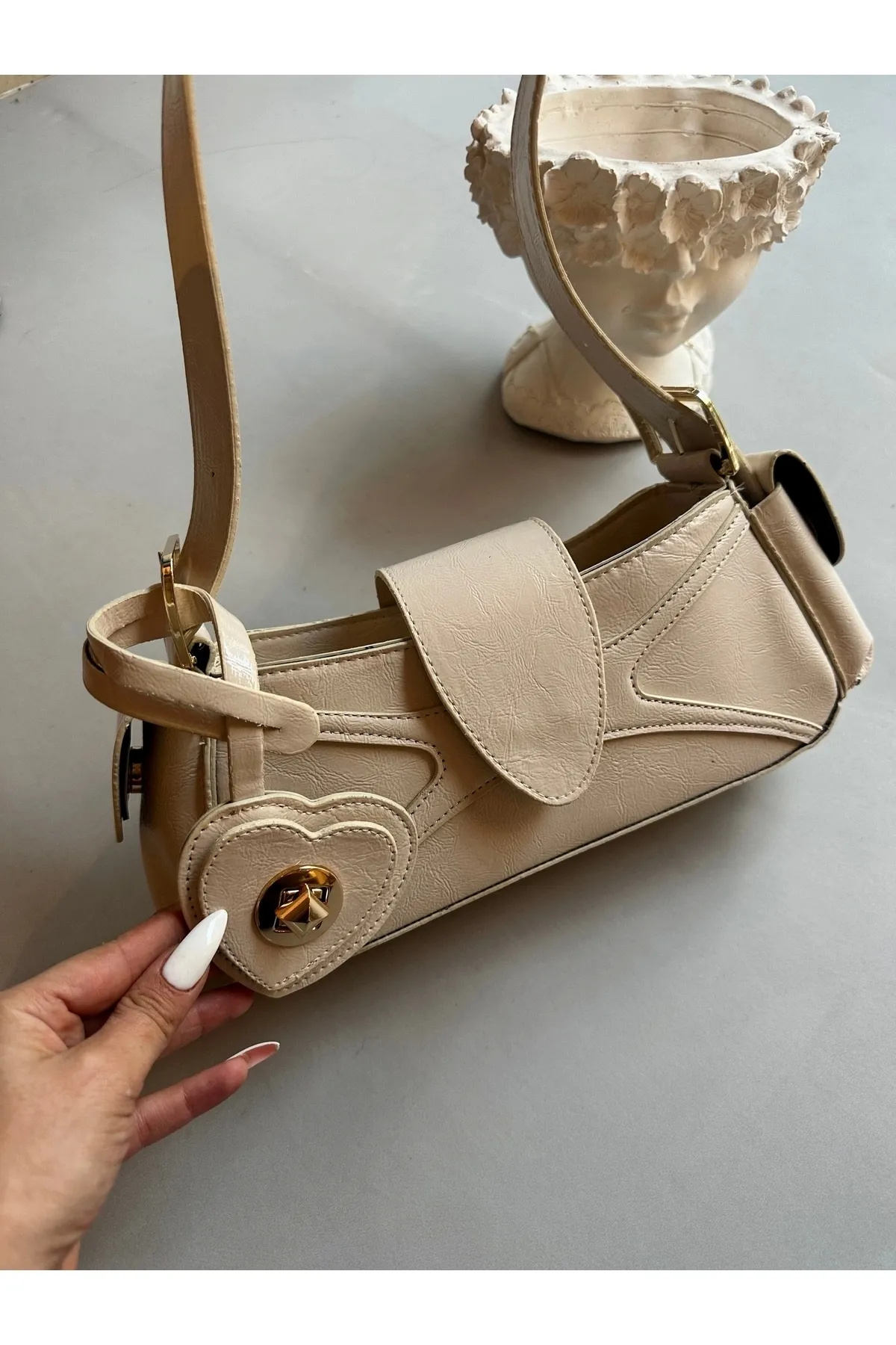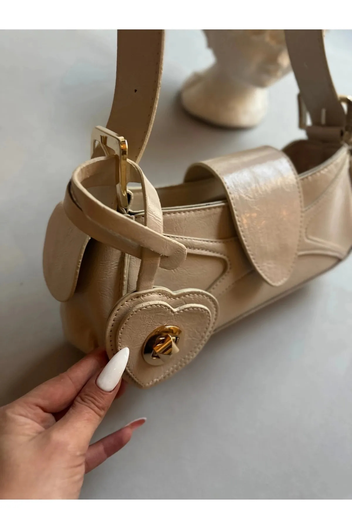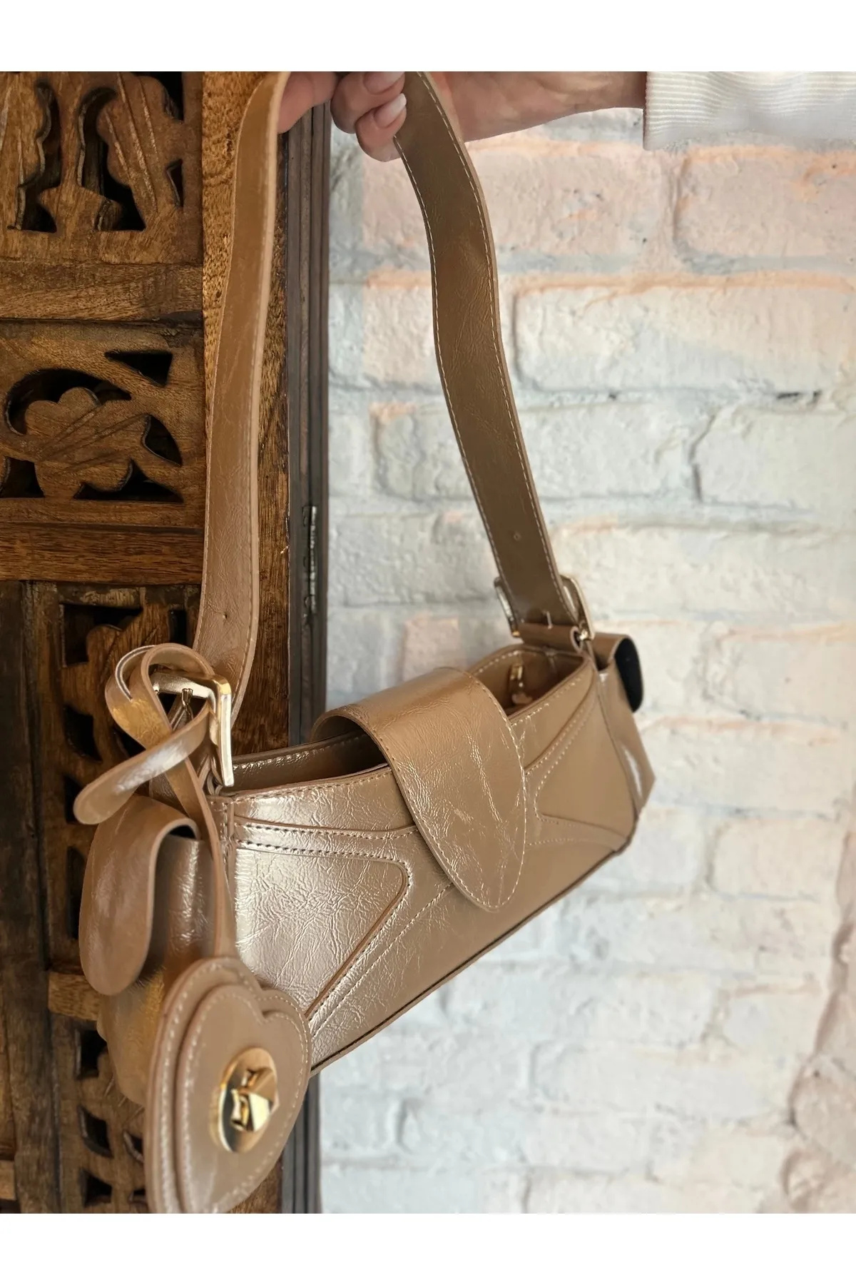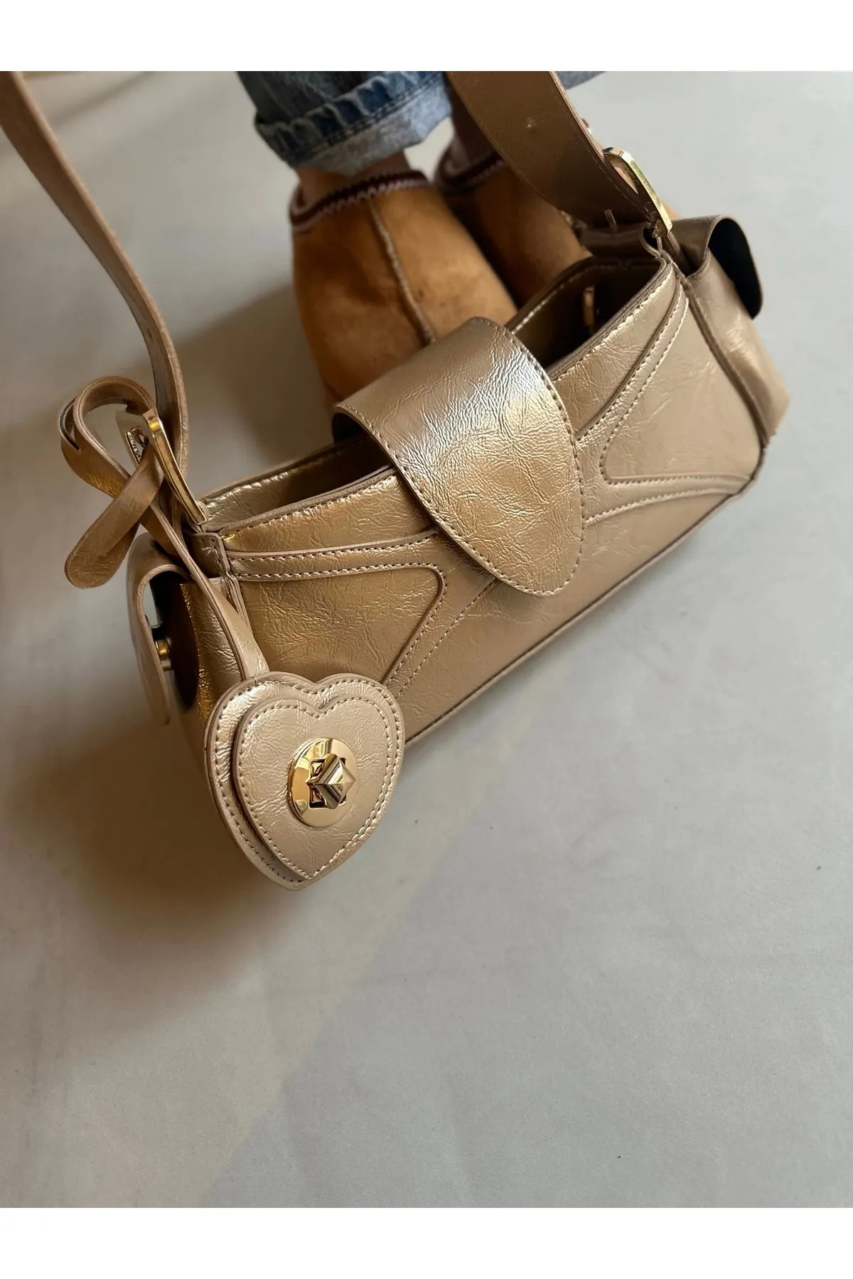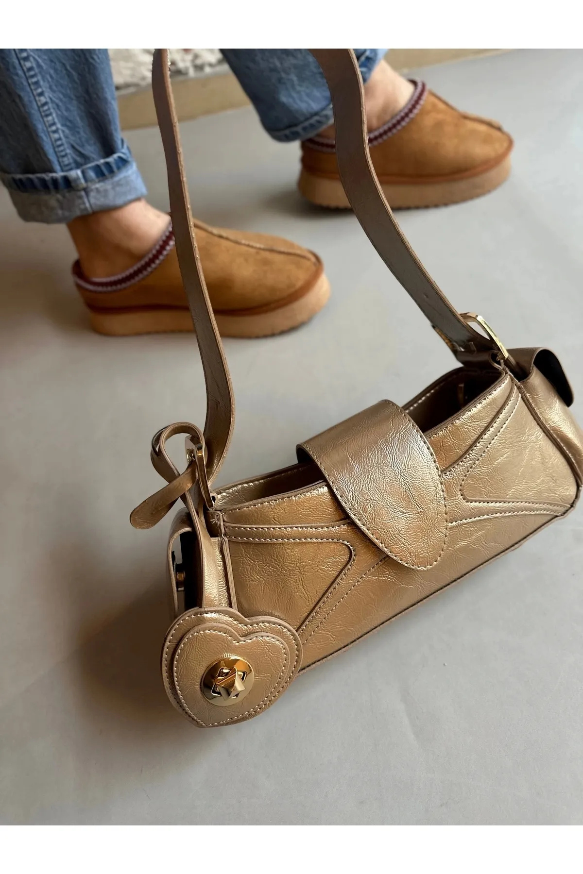 Sarkıt Kalp Detaylı Gold Kadın Kol Çanta