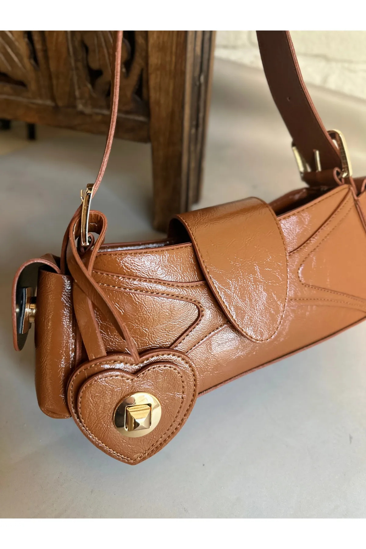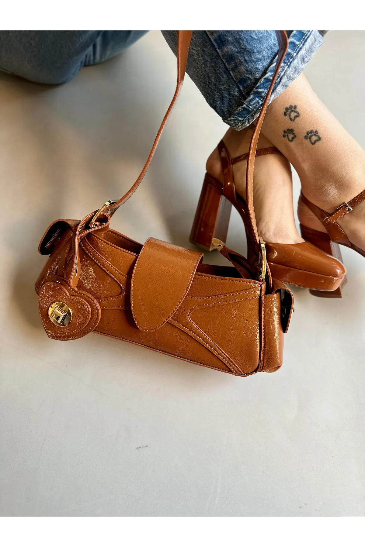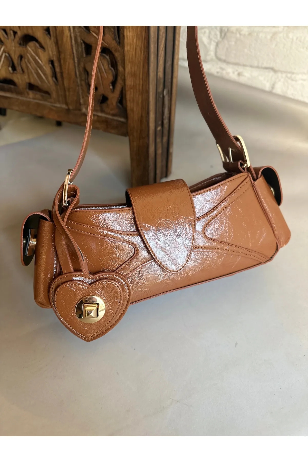Sarkıt Kalp Detaylı Taba Kadın Kol Çanta