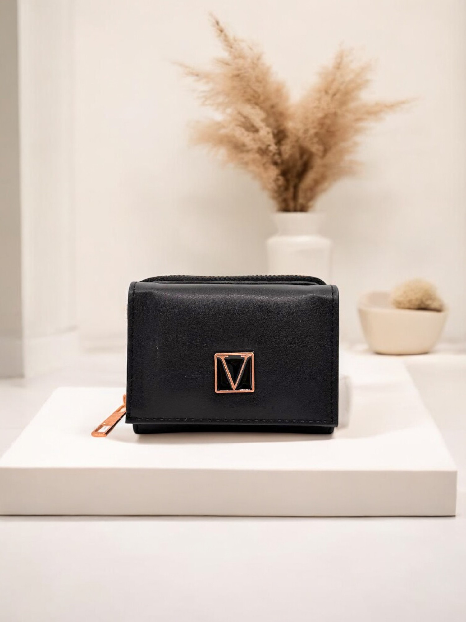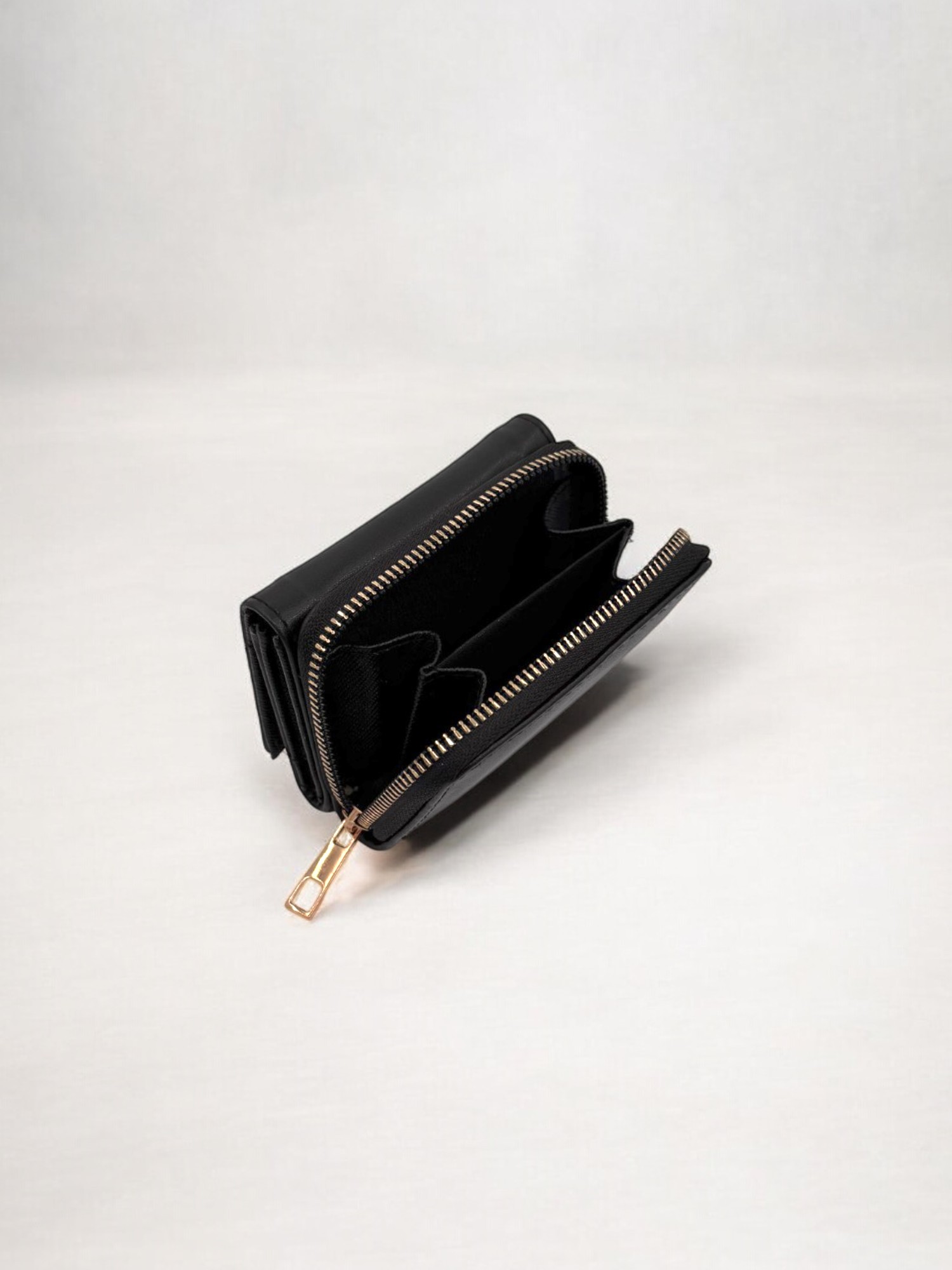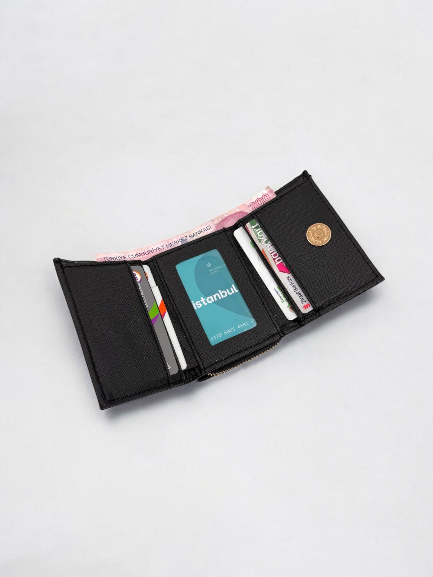 Siyah Fermuarlı Mıknatıslı Mini Kadın Cüzdan