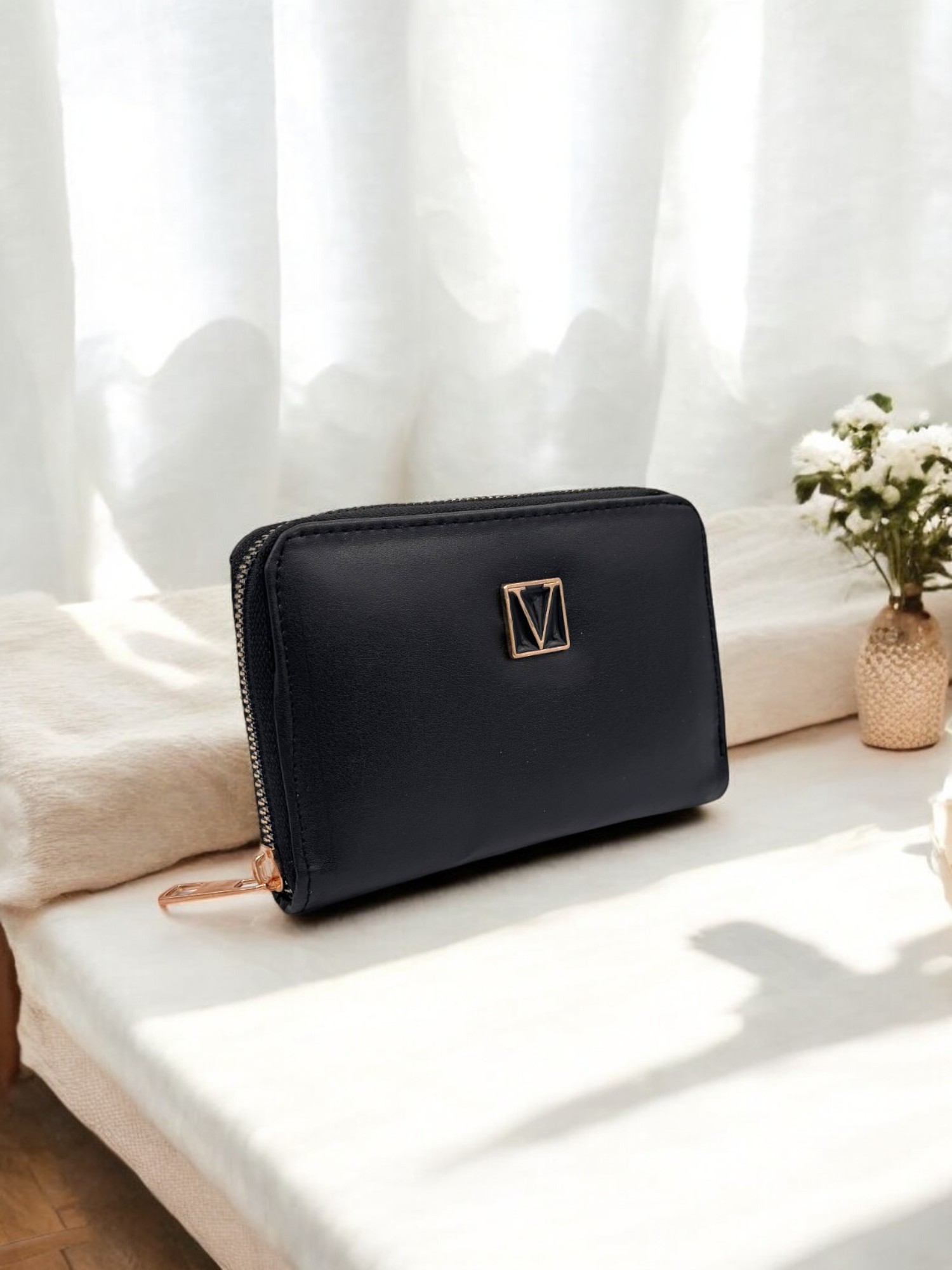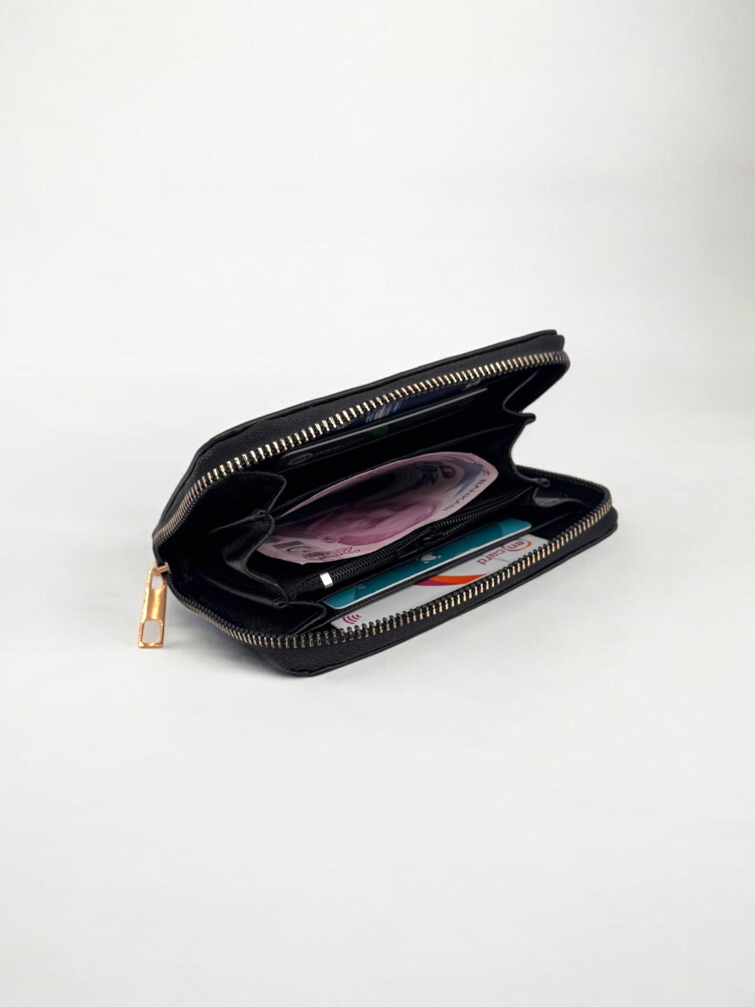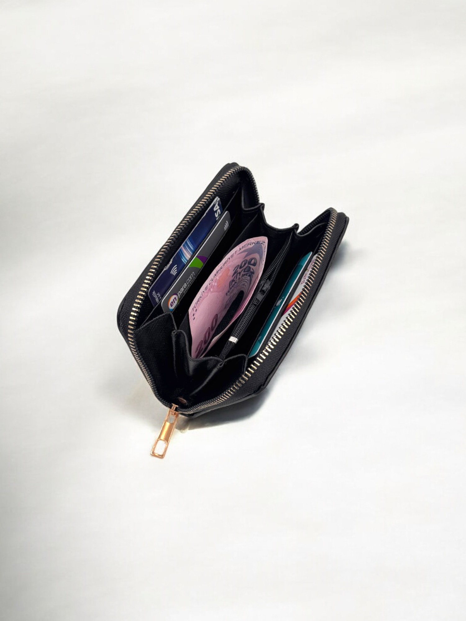 Siyah Fermuarlı Şık Kadın Cüzdan Kartlık