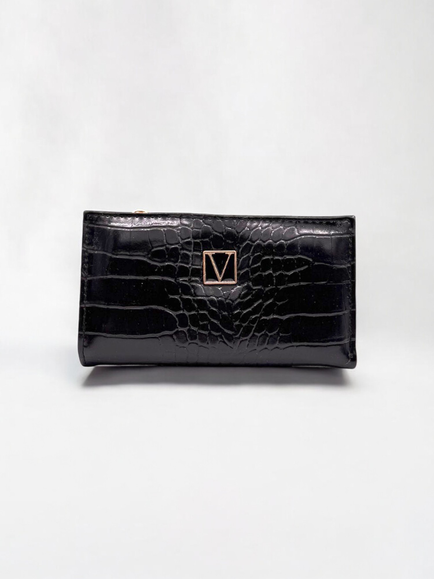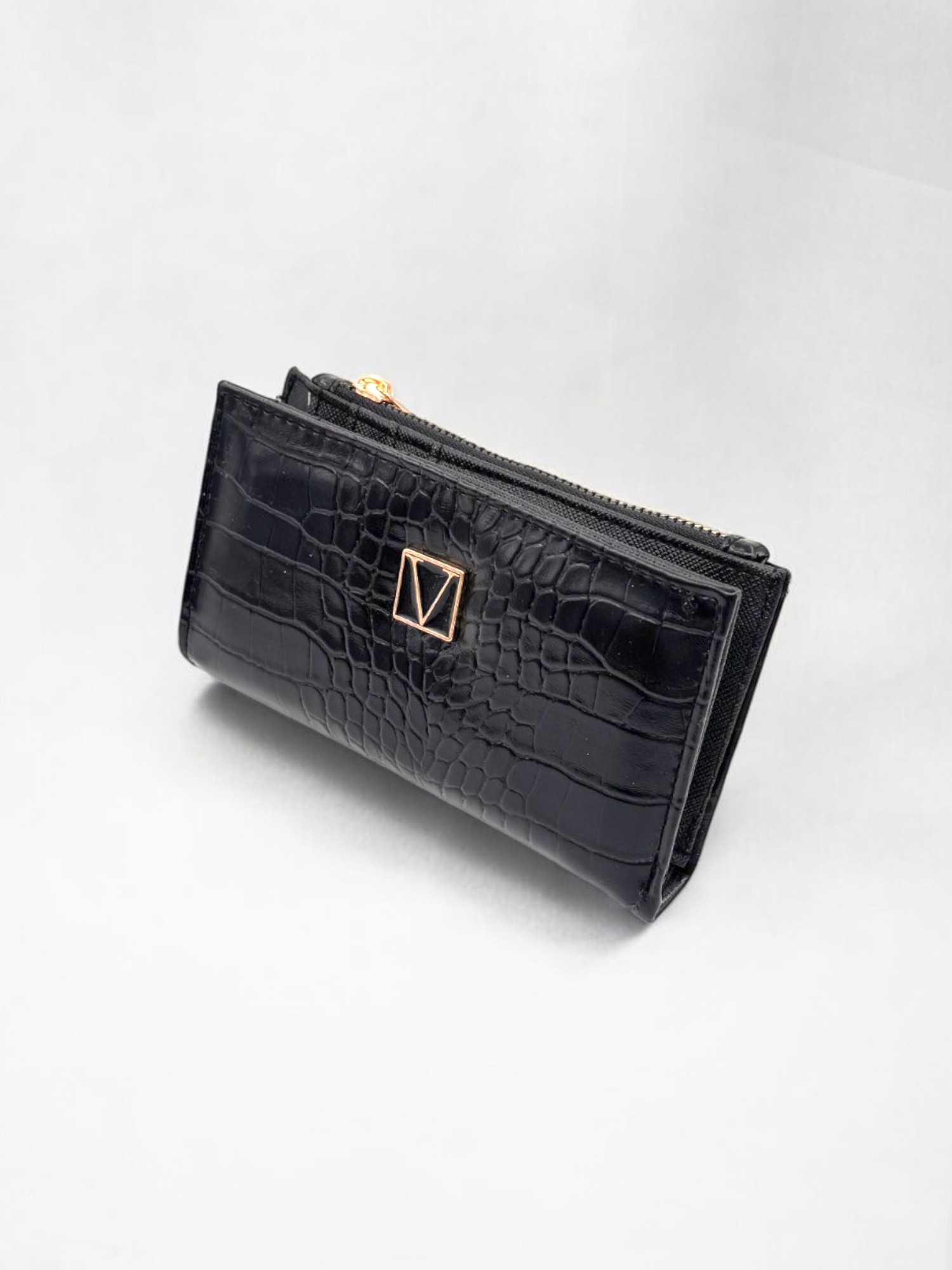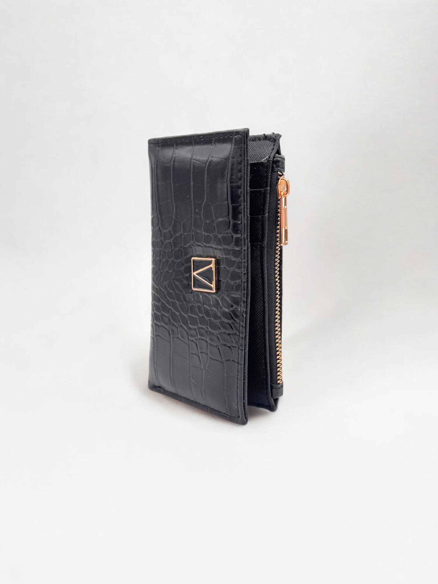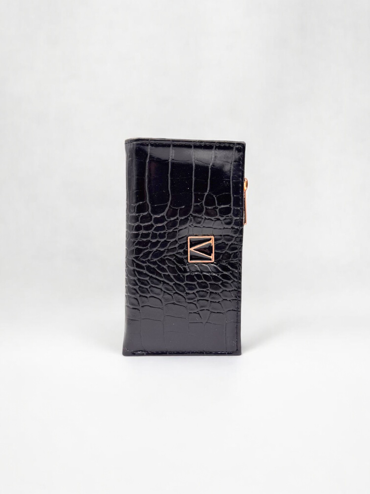 Siyah Timsah Desenli Fermuarlı Kadın Cüzdan