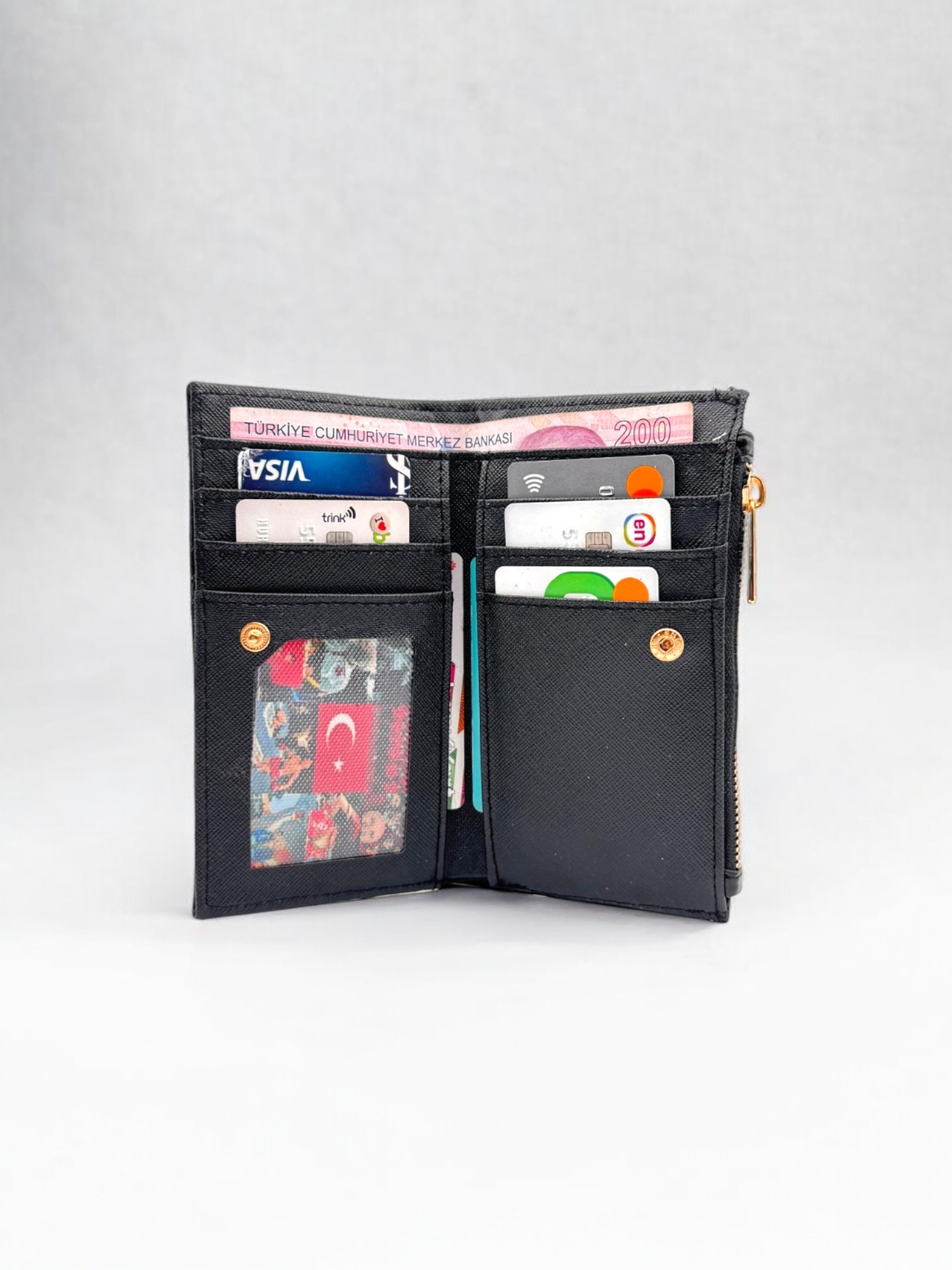 - 6 adet kredi kartı bölmesi ve 1 adet şeffaf kart bölmesi mevcuttur.