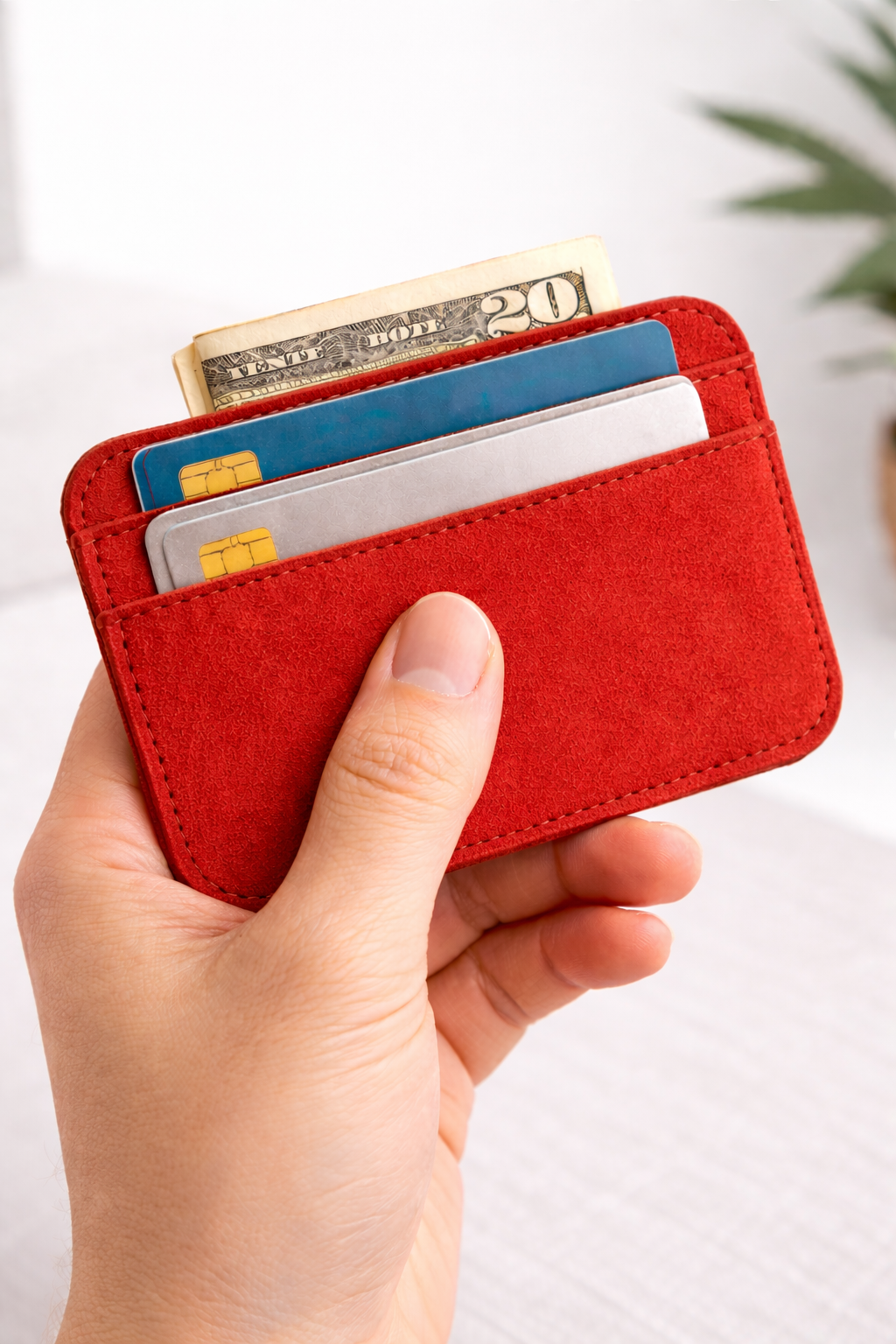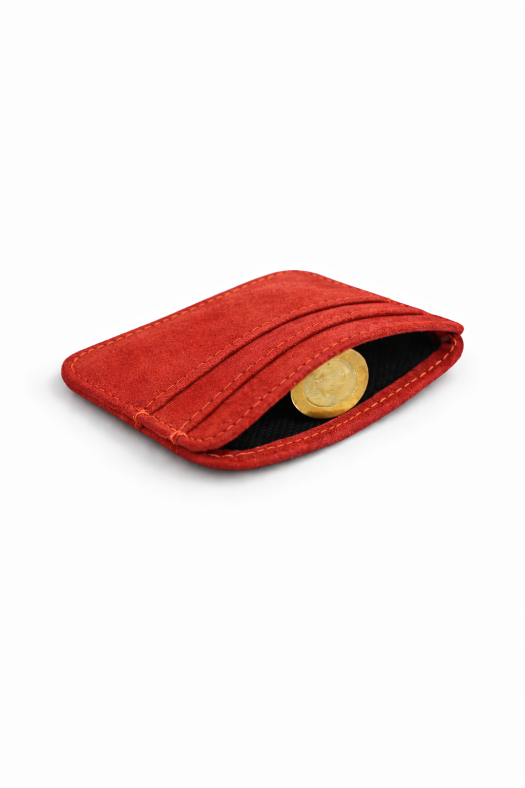 Kırmızı Süet Kartlık – İnce Yapı – Minimal Günlük Kullanım Cüzdan Kartlık