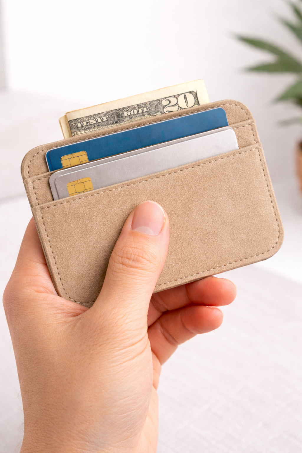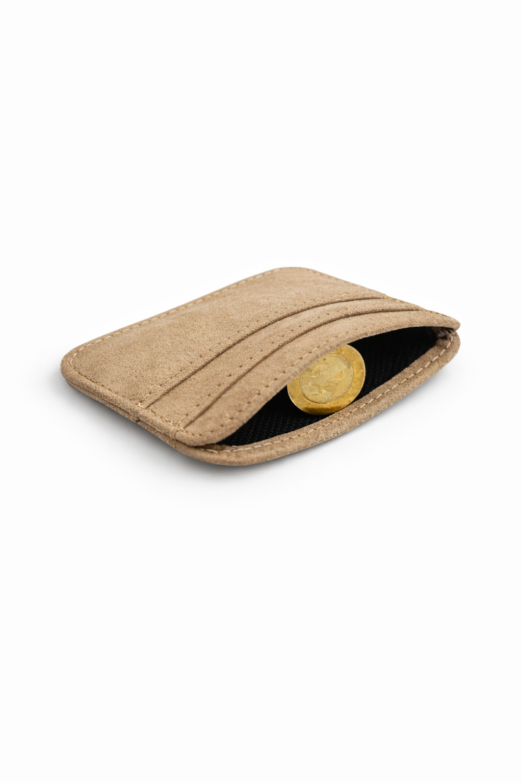 Bej Süet Kartlık – İnce Yapı – Minimal Günlük Kullanım Cüzdan Kartlık