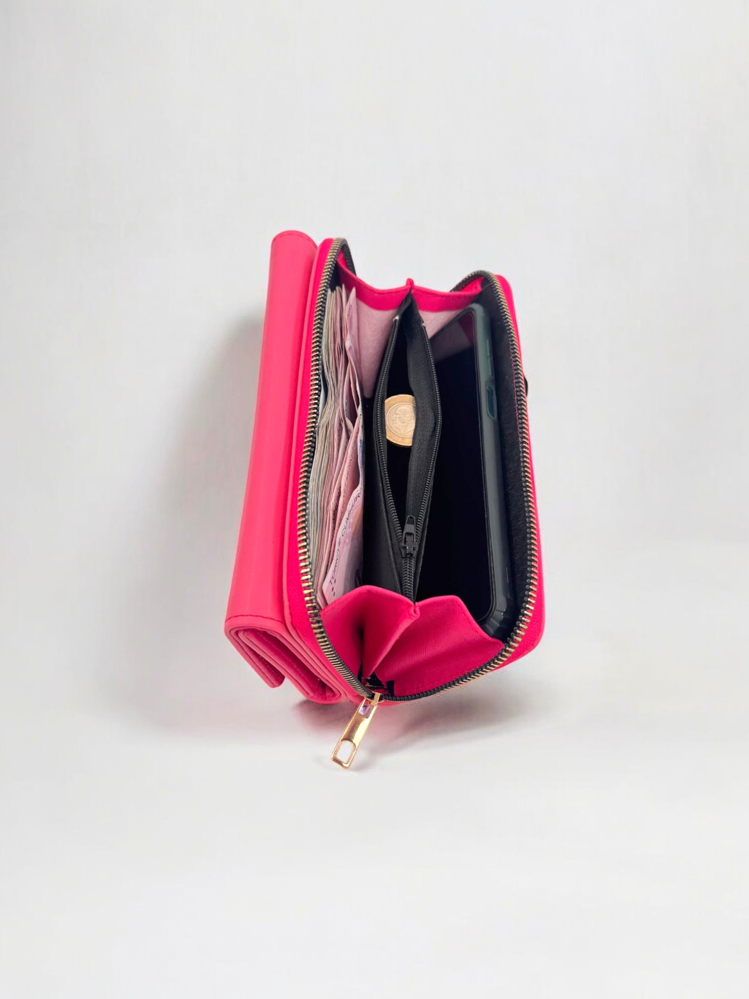 Telefon Sığabilen Fermuarlı Büyük Boy Şık Kadın Cüzdan