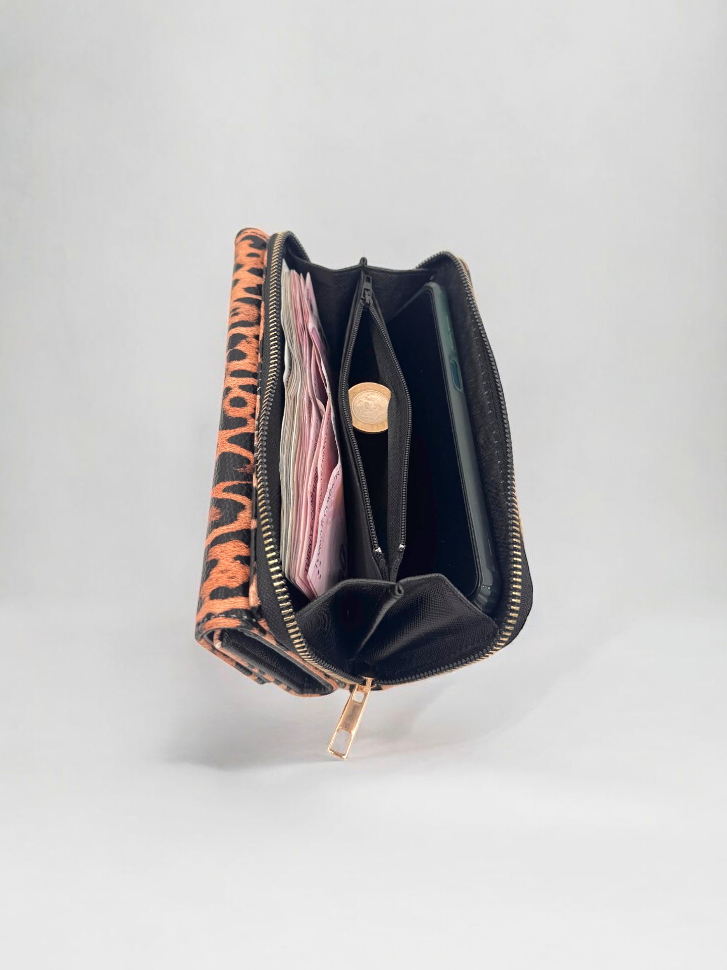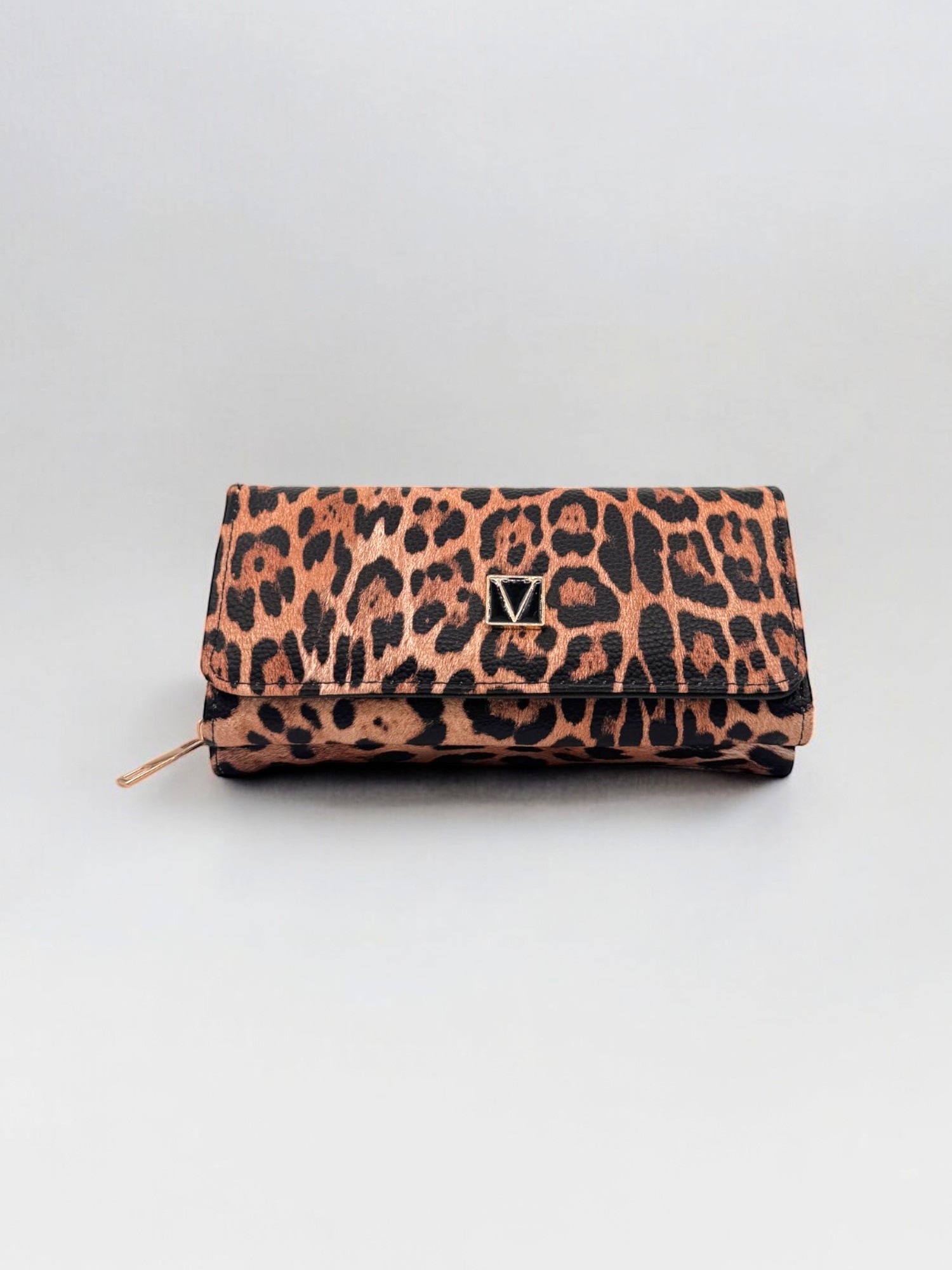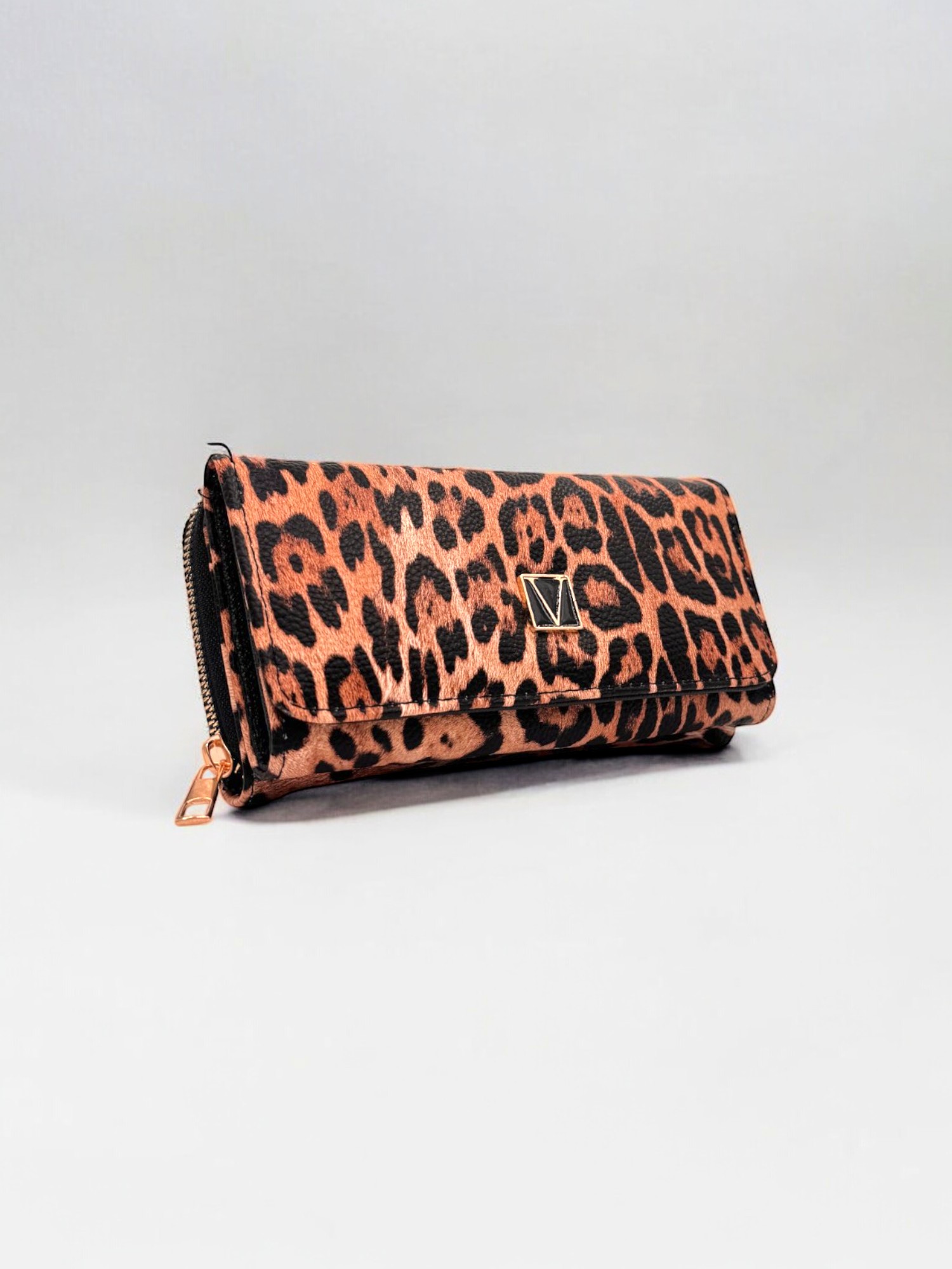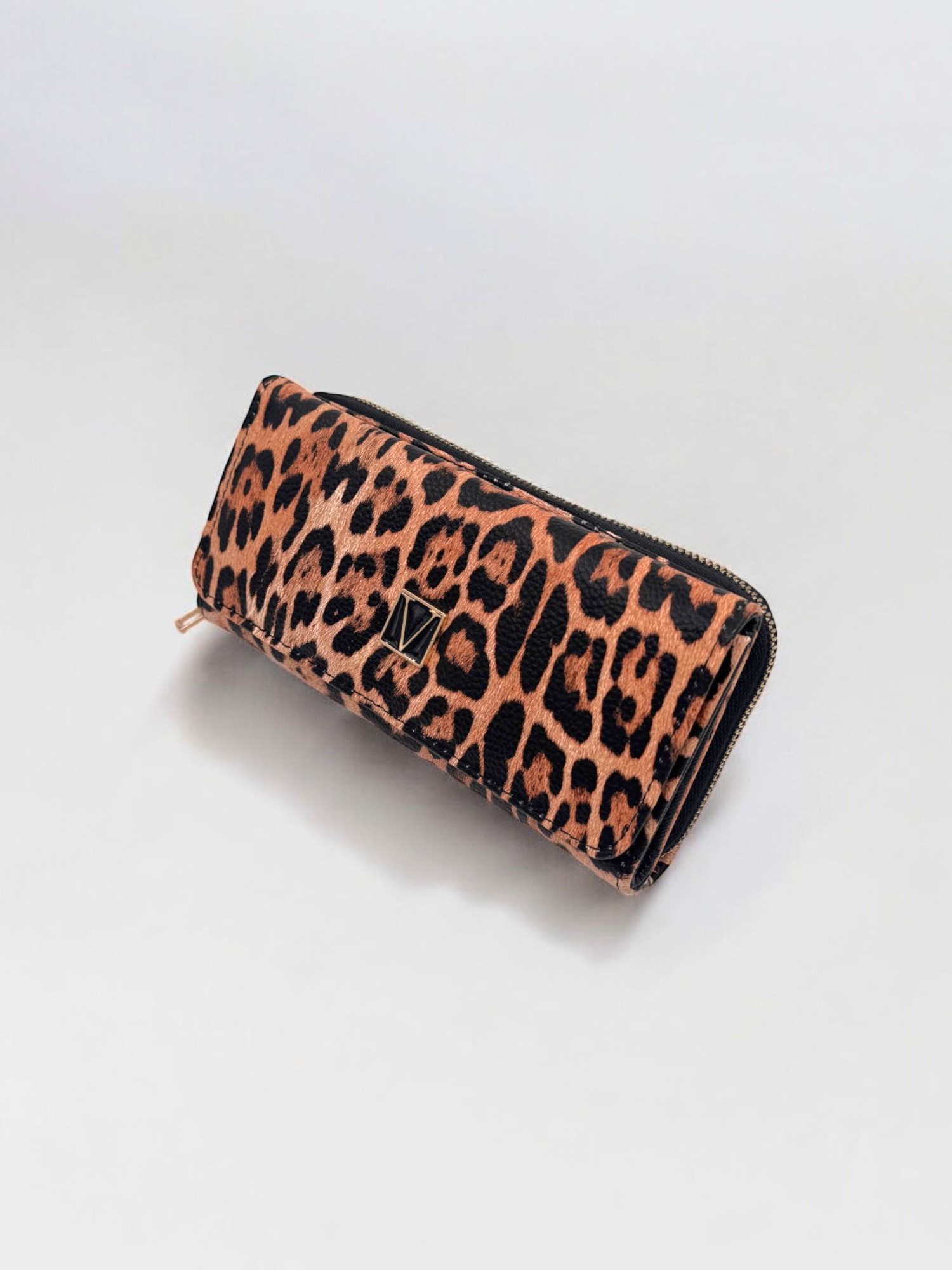 Telefon Sığabilen Fermuarlı Büyük Boy Şık Leopar Desenli Kadın Cüzdan