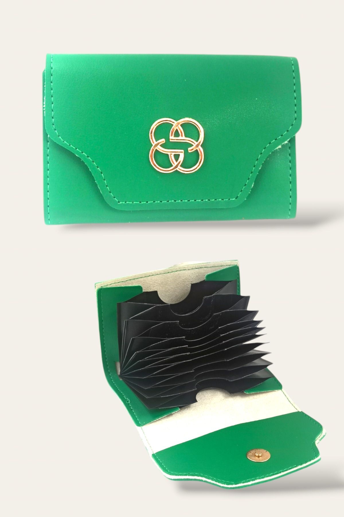 Yeşil Kadın Akordiyonlu Kartlık Cüzdan