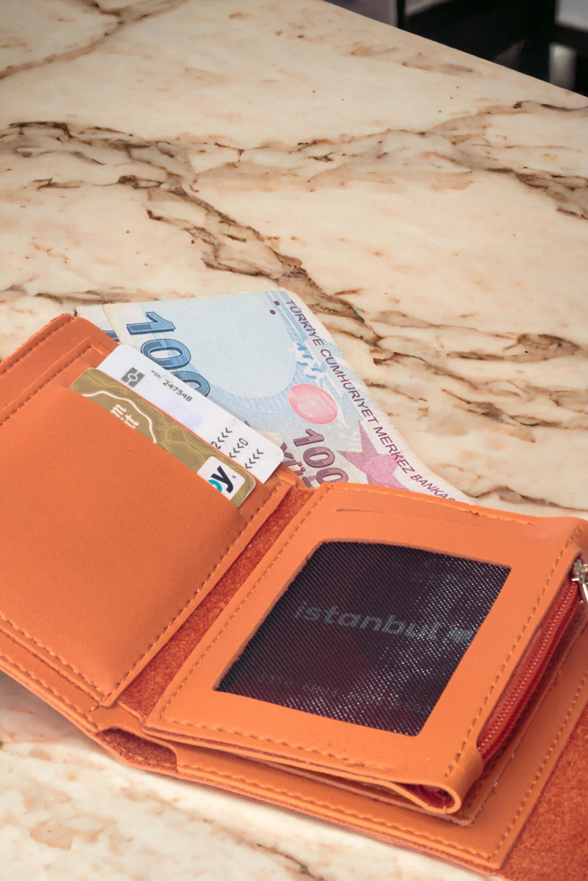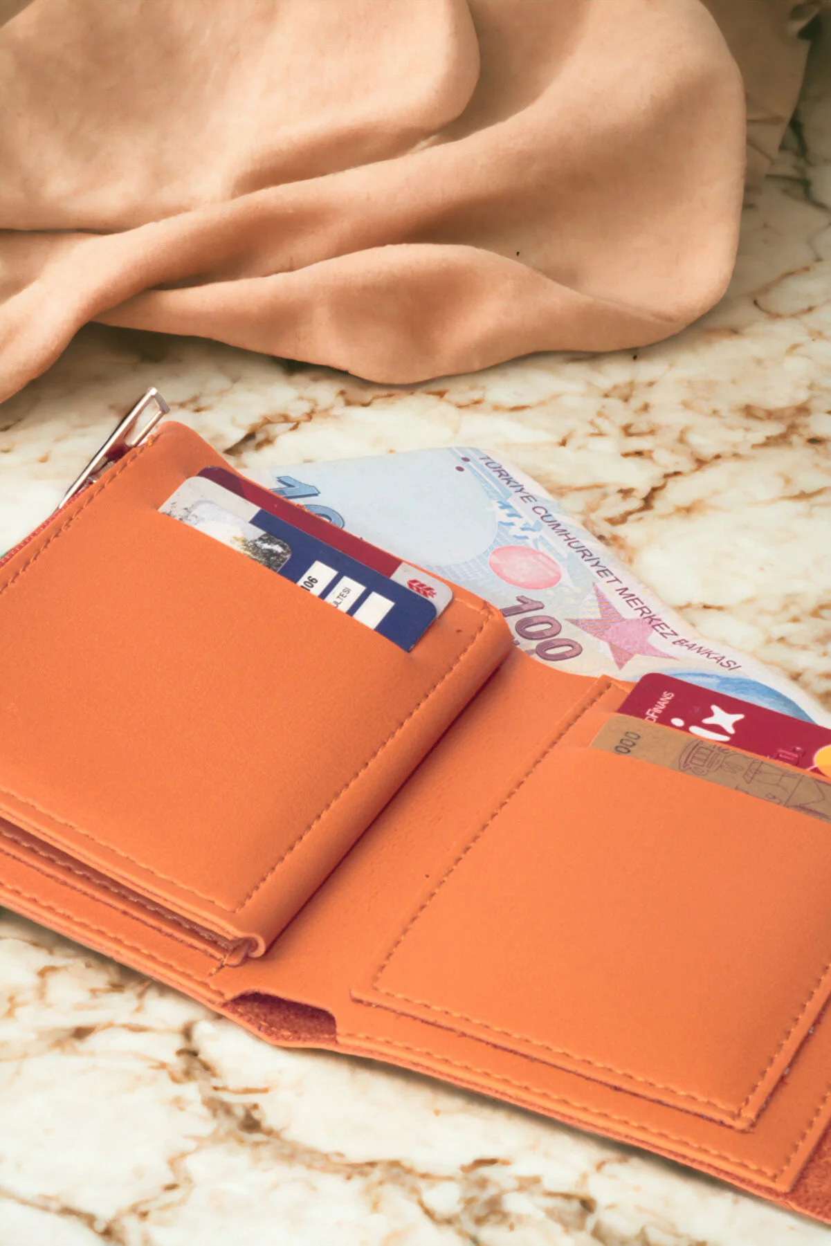 Yumuşak Derili Mini Zarf Model Turuncu Kadın Cüzdan
